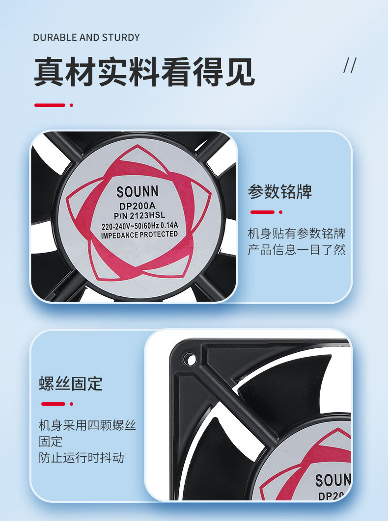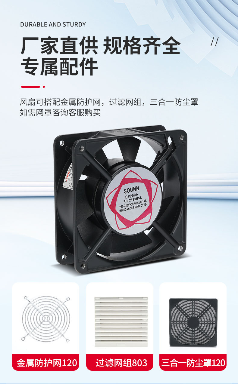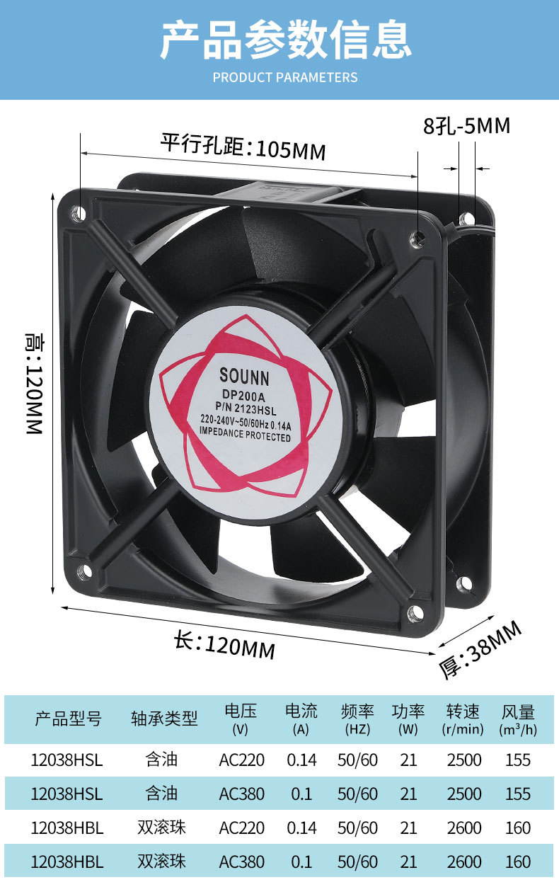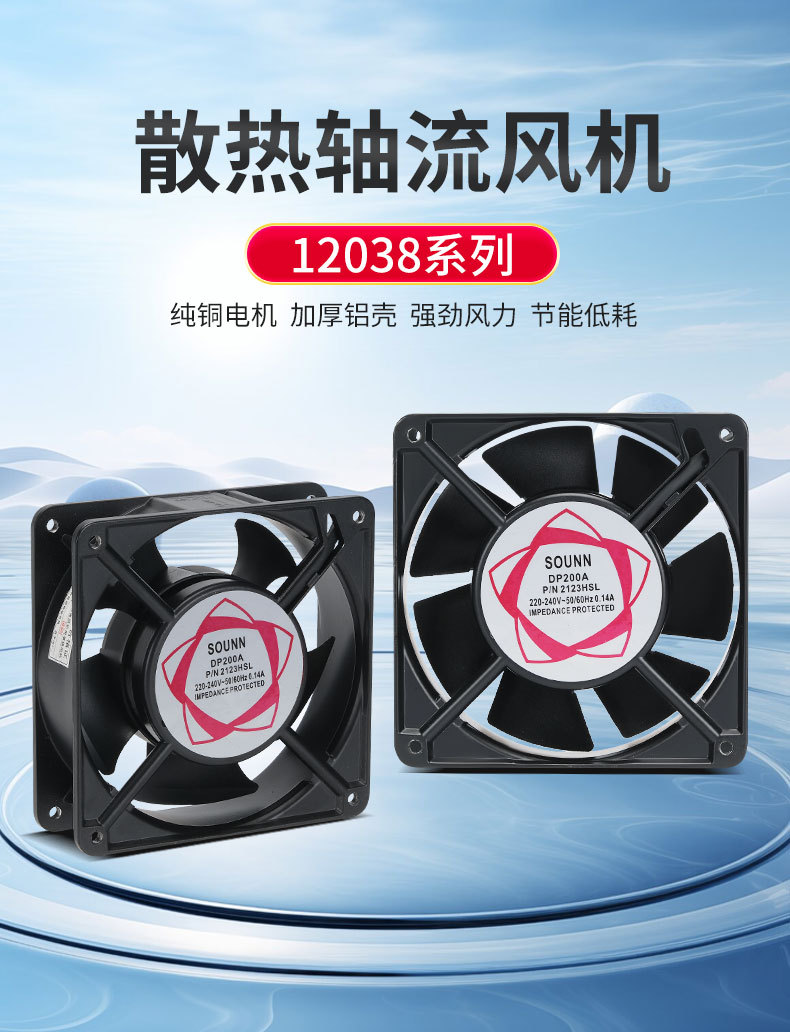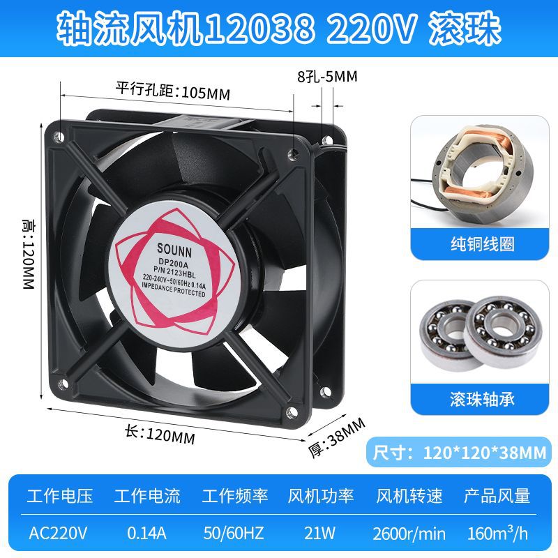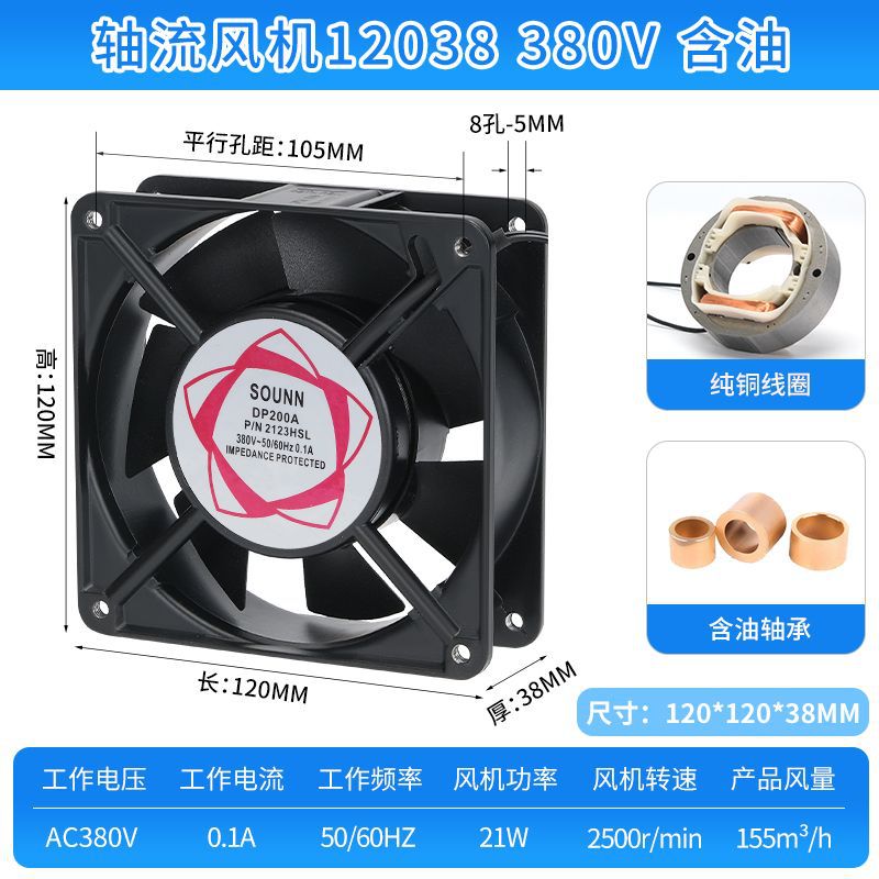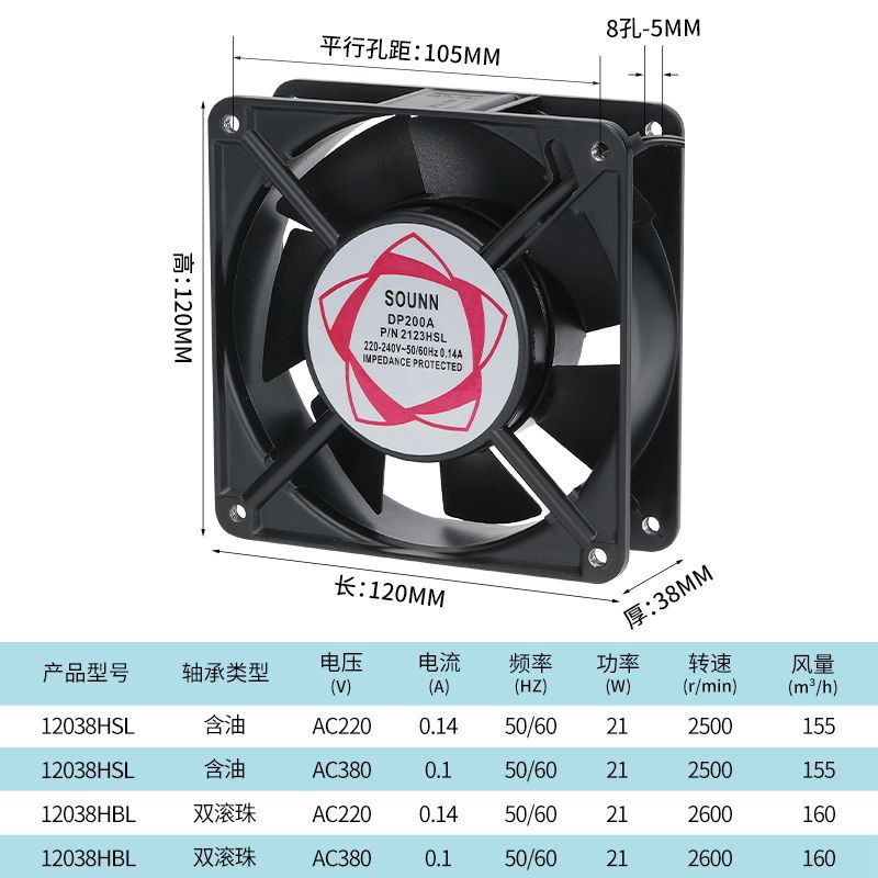Промышленный осевой вентилятор DP200A 12038 220В/380В, квадратный, 12 см, с медной обмоткой