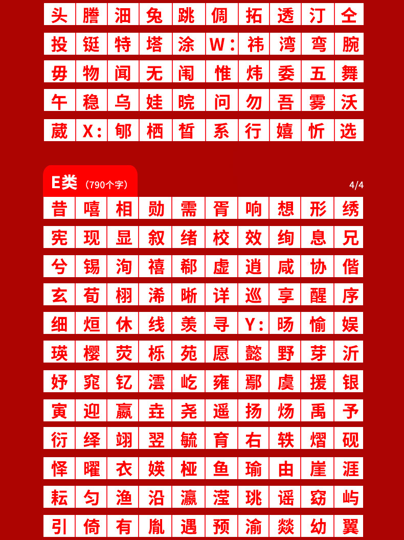 3.全套字:ABCDE类各10颗.共19000颗