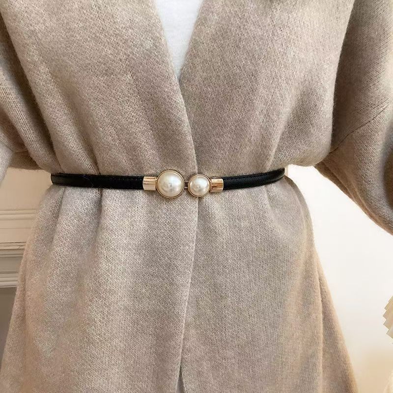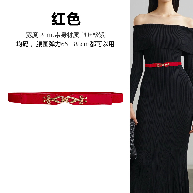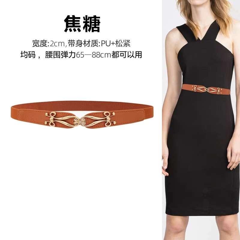 Осенние и зимние дамы эластичный тонкий пояс на талии с комбинезонным юбкой свитер пальто дикие украшения ins ремни