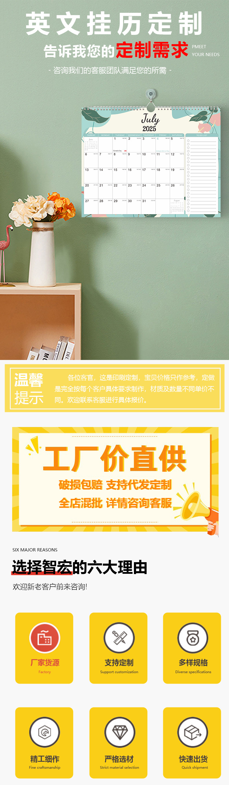 Бесплатный образец 2026: Печать и производство календарей на английском языке, оптовая продажа календарей в больших количествах и индивидуальный дизайн.