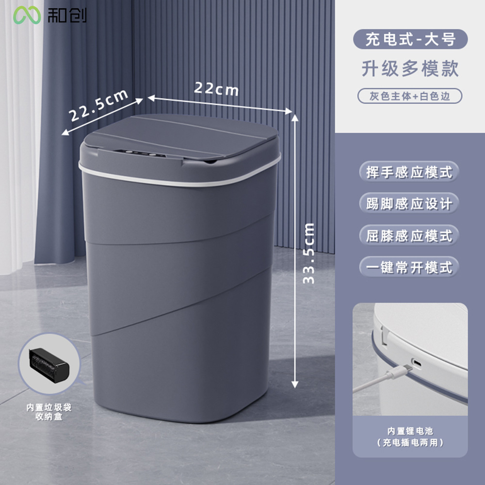 Новый умный мусорный бак для 25 лет со встроенным синим светящимся кольцом под давлением, откидной крышкой, 18 л, вращающимся узором, умным датчиком, мусорный бак