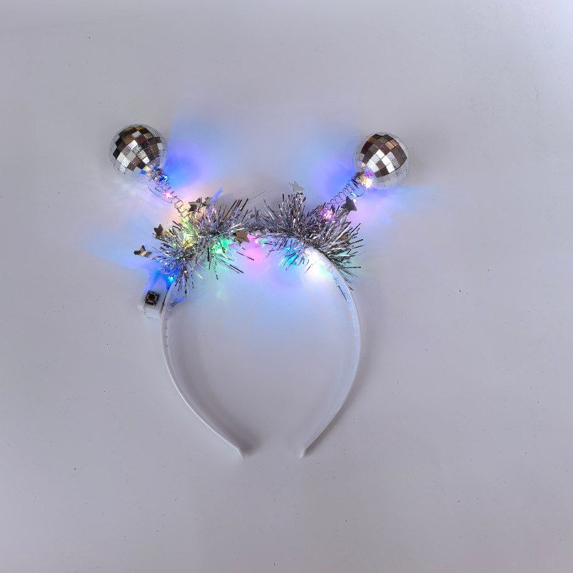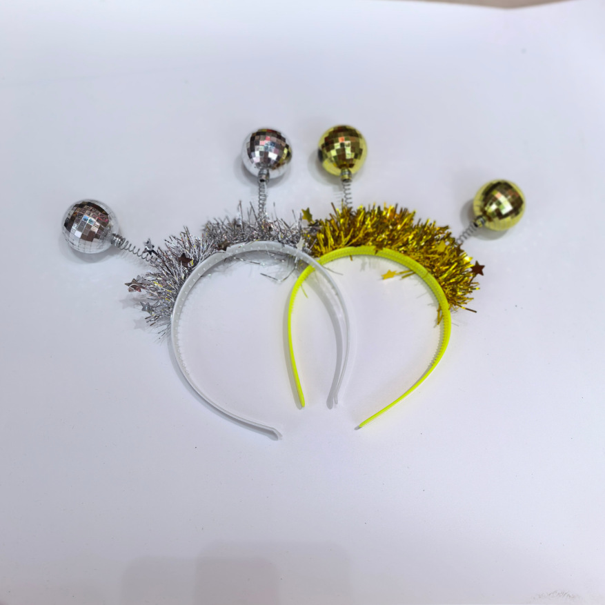 Трансграничная оцинкованная решетчатая повязка на голову с серебряными шариками, шелковая повязка с шариками в виде рождественских огней, аксессуар для создания атмосферы на рождественской вечеринке, костюмный аксессуар.
