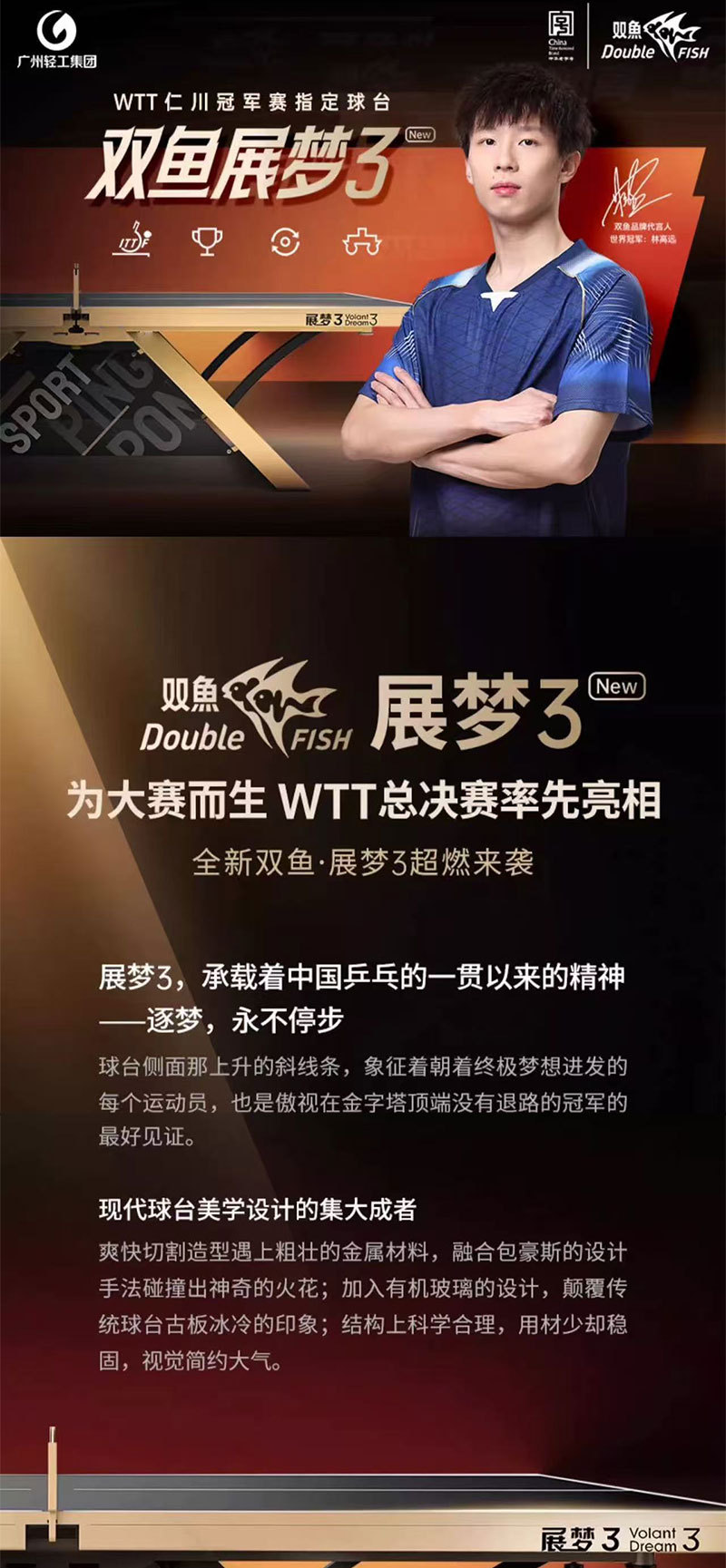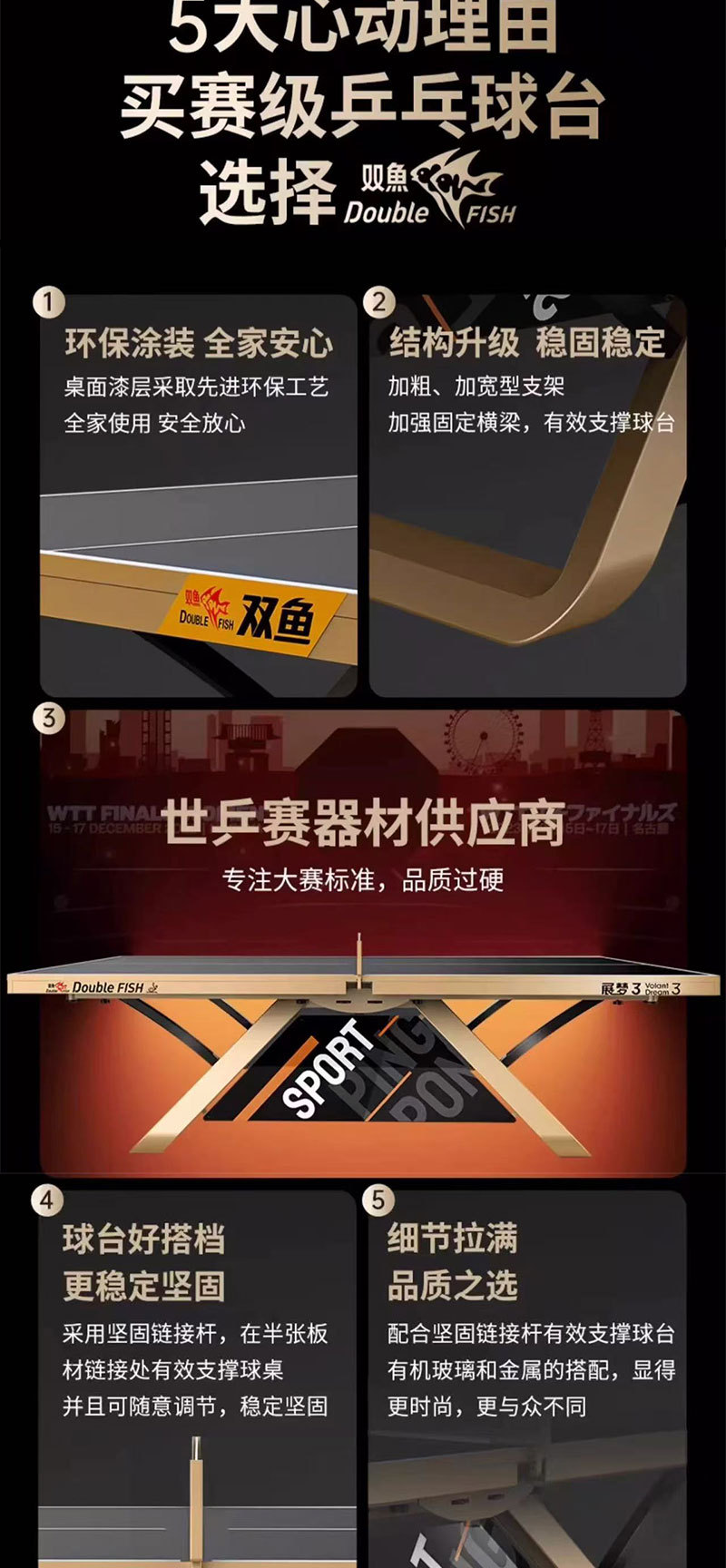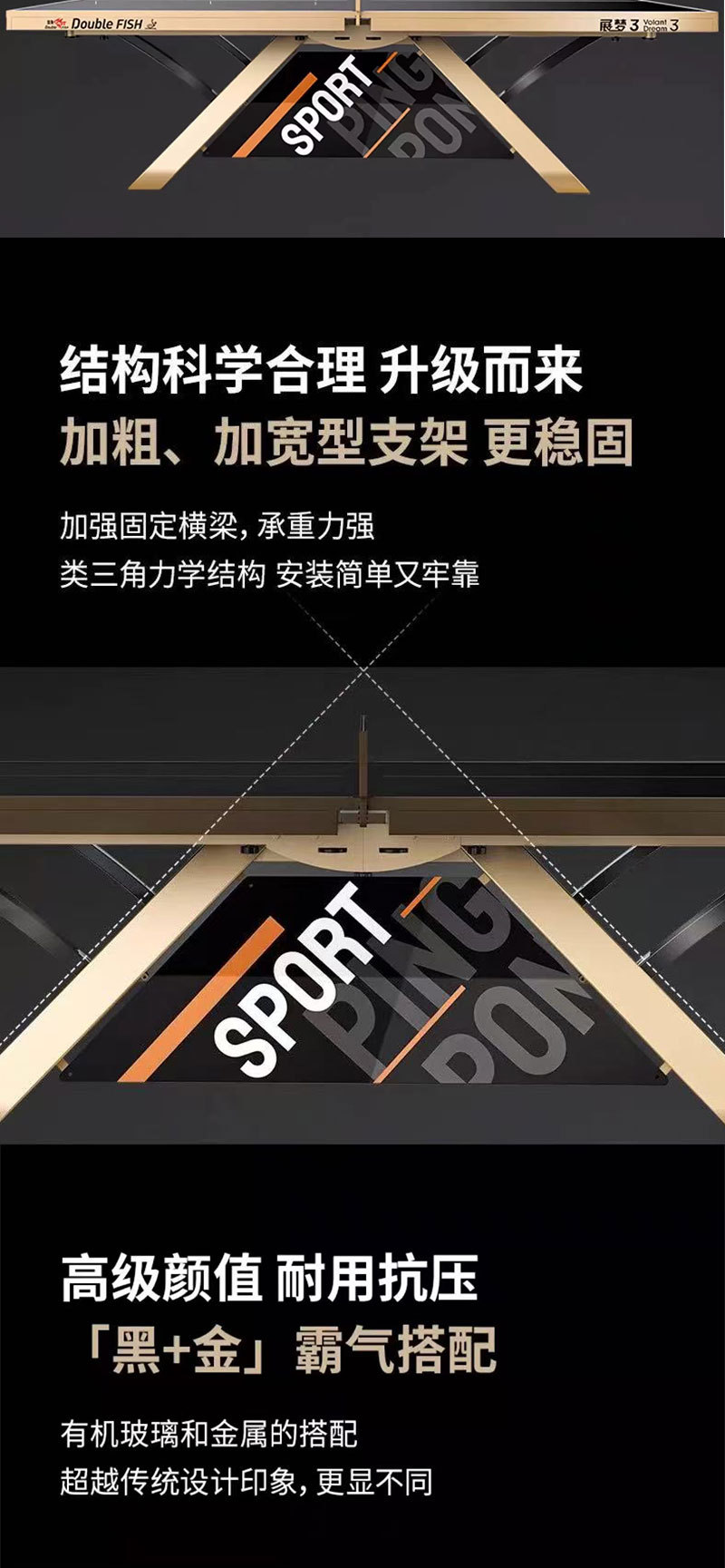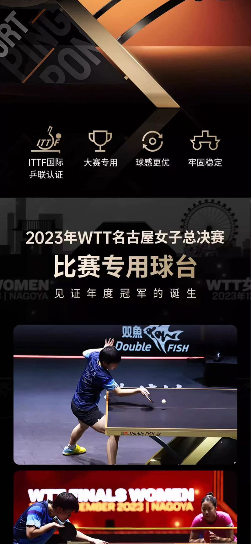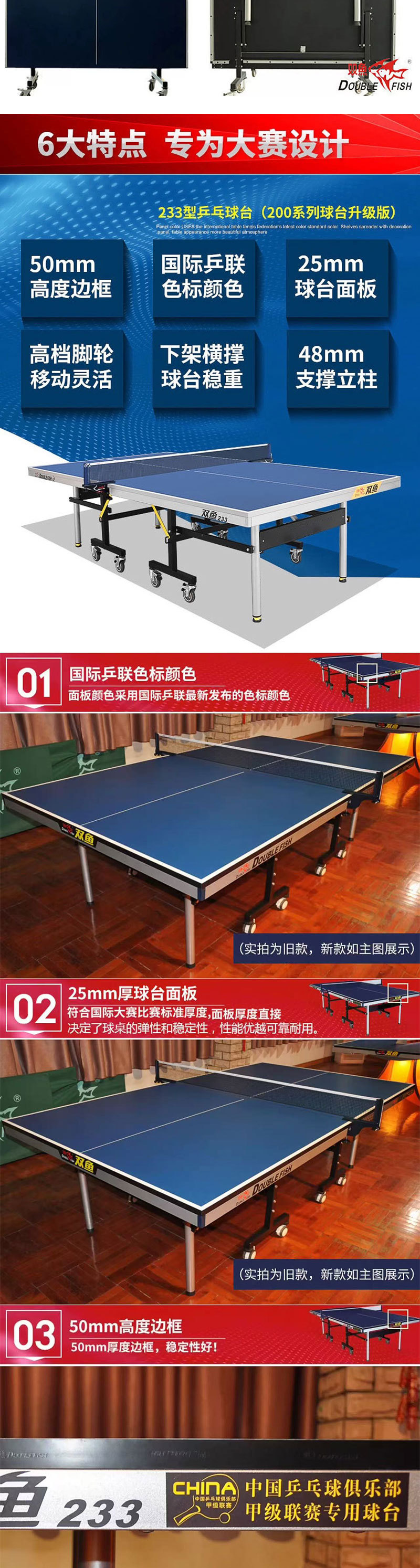 501А (стол 15 мм); 201А (шкив-стол 18мм); Развернутые крылья X1 (стол 25 мм); Сяньюнь X1 (18 мм столешница); 233 (сертифицировано ITTF, столешница 25 мм); Сяньюнь 328A (сертифицирован ITTF, столешница 25 мм); Дрим 3 (сертифицирован ITTF, 25 мм, настольный)