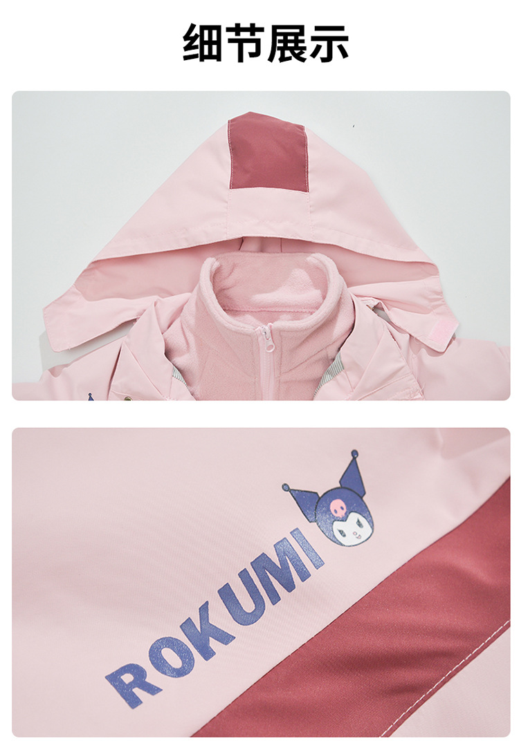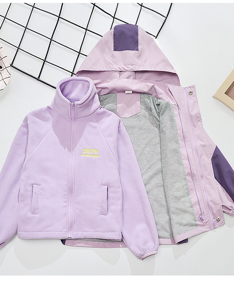 Девушки весна и осень зимняя новая иностранная детская съемная куртка плюс бархатный мультяшный цвет три в одном теплое пальто