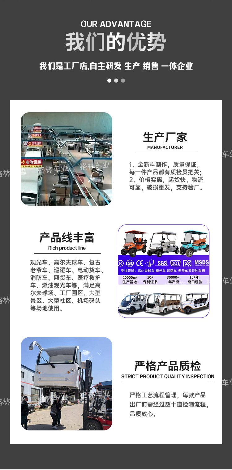 Экскурсионный автомобиль на четырех колесах, 11-местный, 14-местный, для живописных мест, туристических отелей, топливный патрульный автомобиль, электрический экскурсионный автомобиль для экскурсий по заводу.