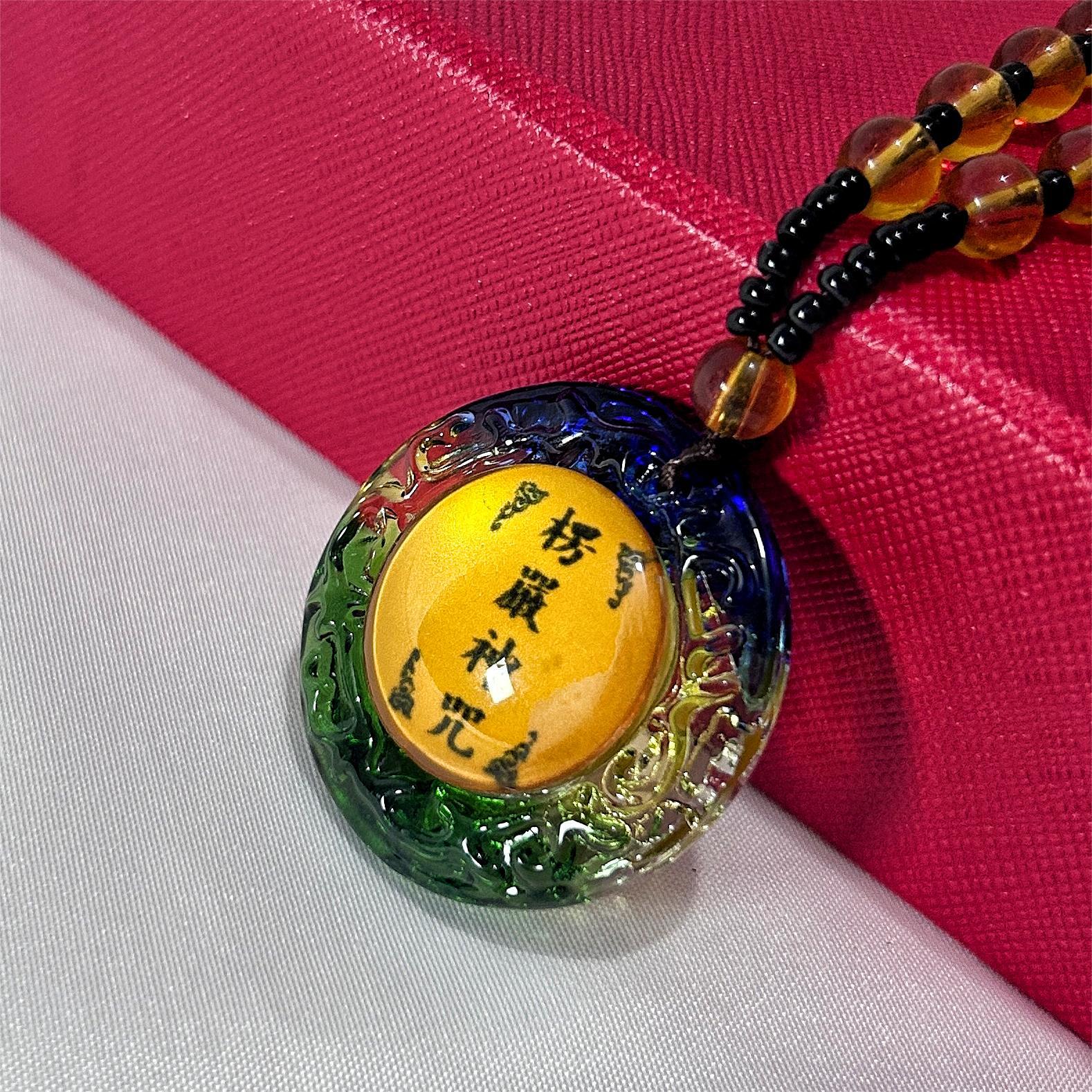 Подвеска-мантра Лингьянь, тибетское украшение, стеклянный амулет, маленькое ювелирное изделие, унисекс-ожерелье, сувенир с храма, подарок для благословения