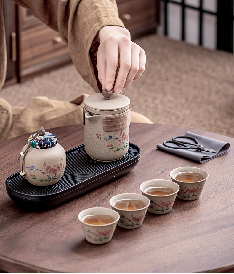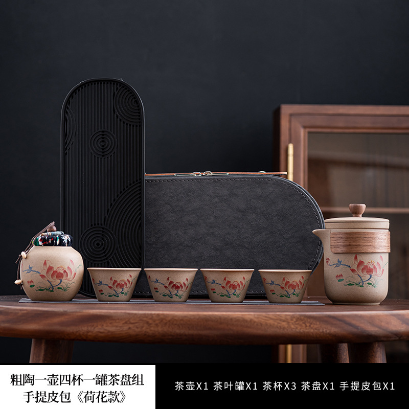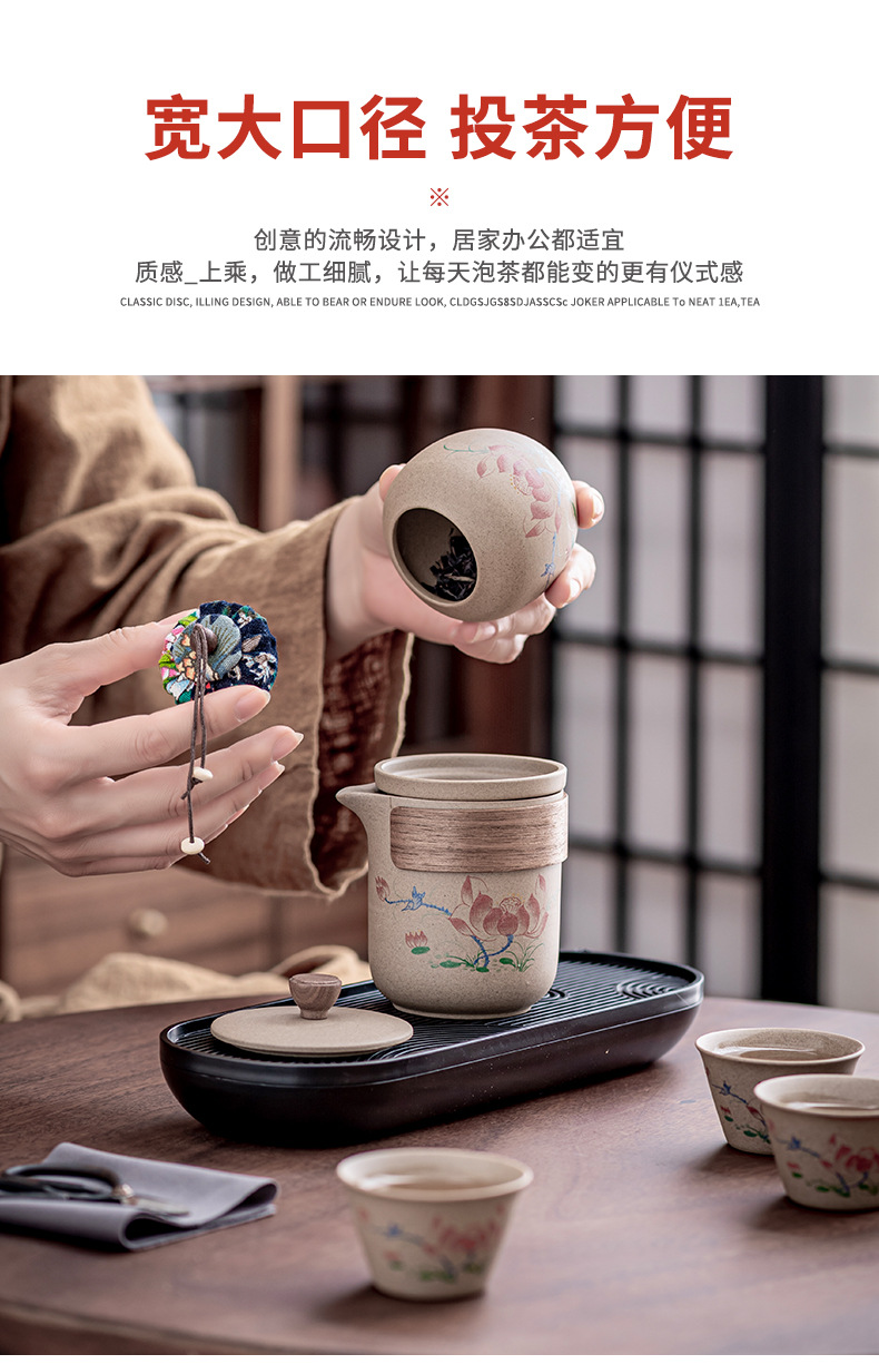 Грубый керамический экспресс-кубок с горшком из трех чашек туристического чайного набора Портативный открытый кемпинг для приготовления чая для деловых подарков