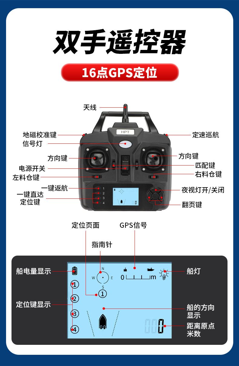 Пульт дистанционного управления Smart Dwarf Ship Ship GPS Location Double Ship Ship Ship Ship Auto Возвращение рыболовной лодки