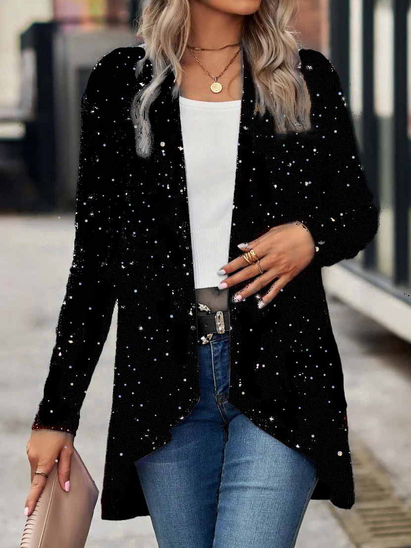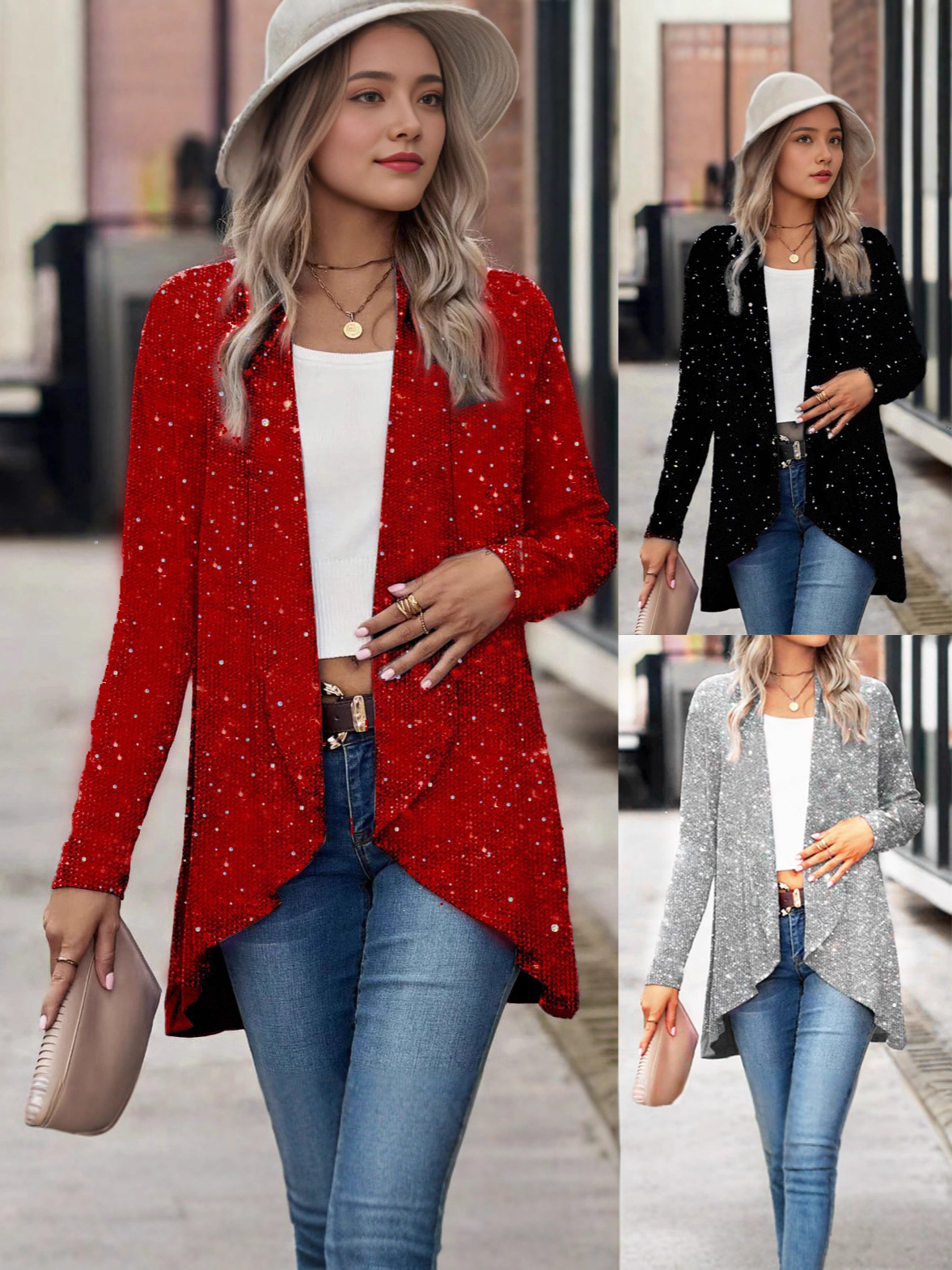 Трансграничная внешняя торговля Amazon Европейская и американская женская рождественская тяжелая промышленная блестка сплошной цвет модная повседневная нерегулярная куртка