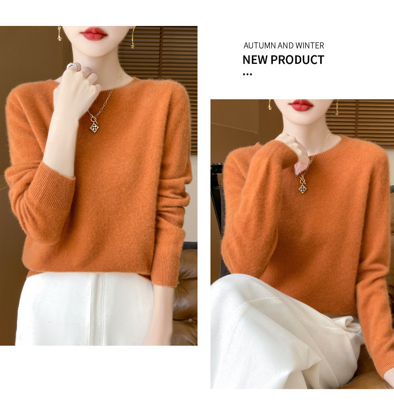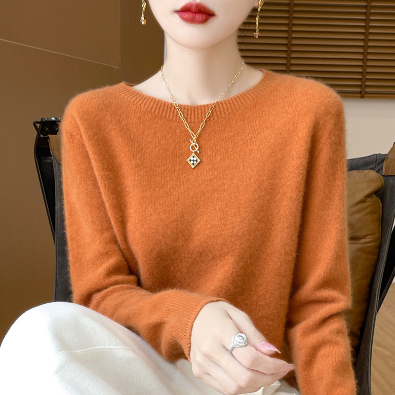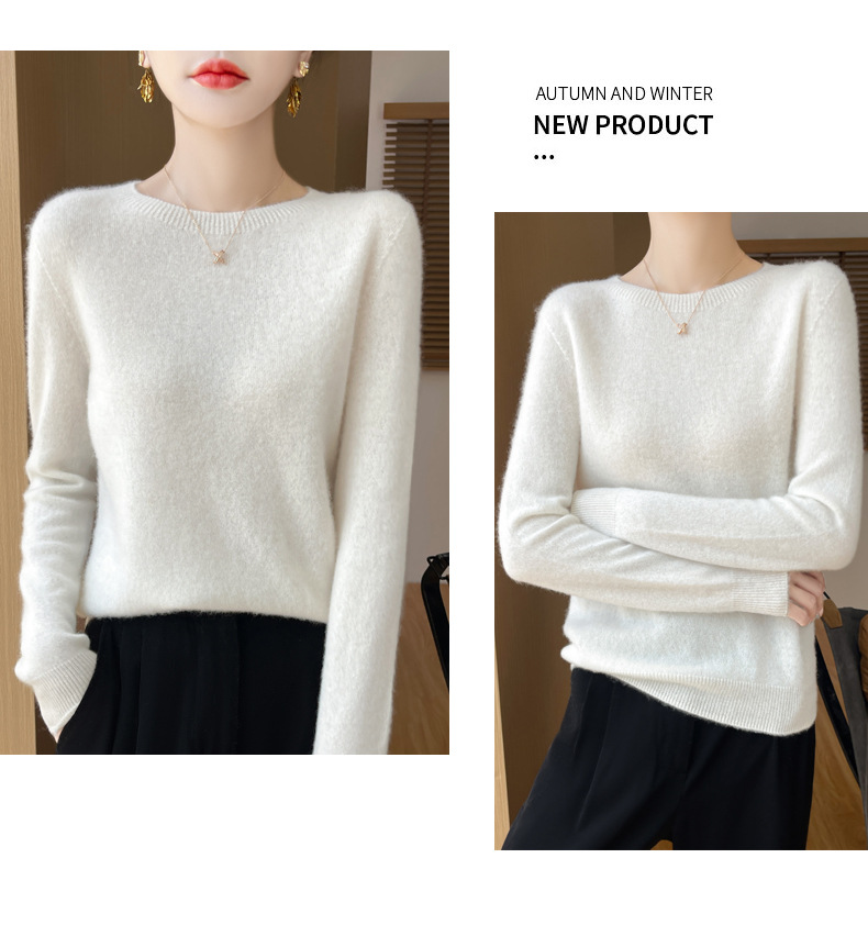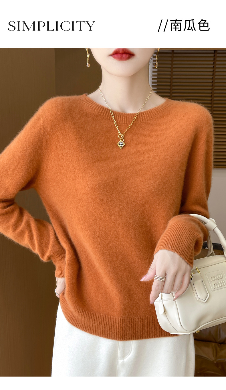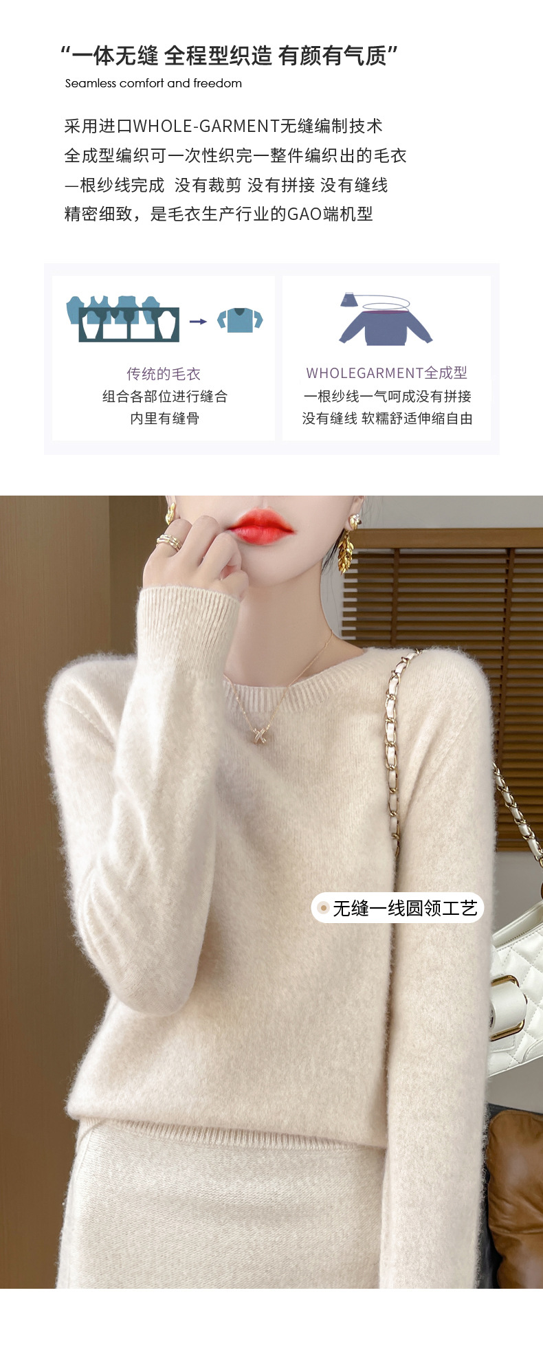 Бесшовный цельный трикотажный свитер из 100% австралийской мериносовой шерсти, женский, с круглым вырезом, высококачественный вязаный базовый топ