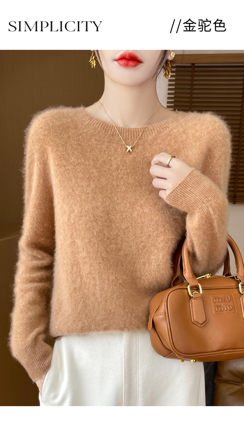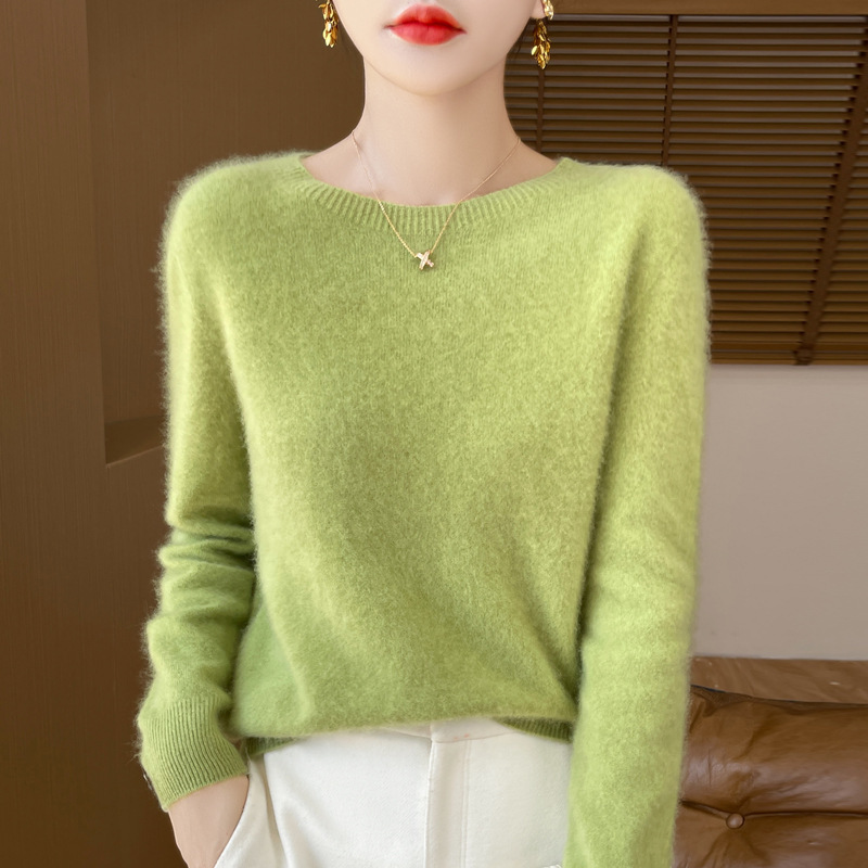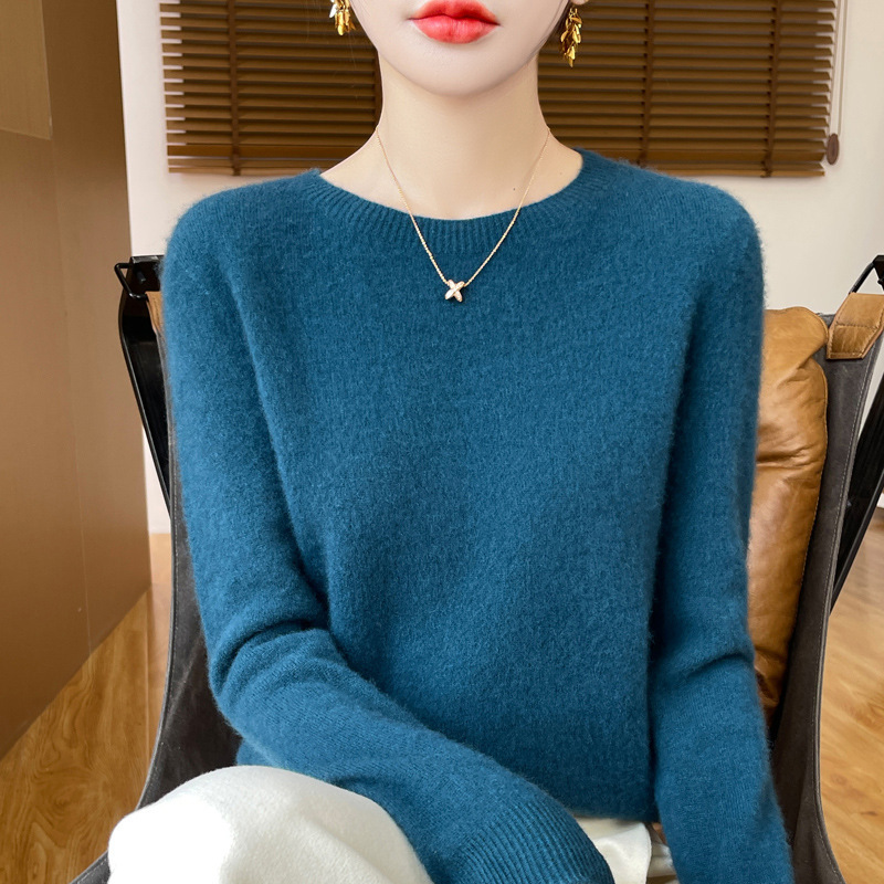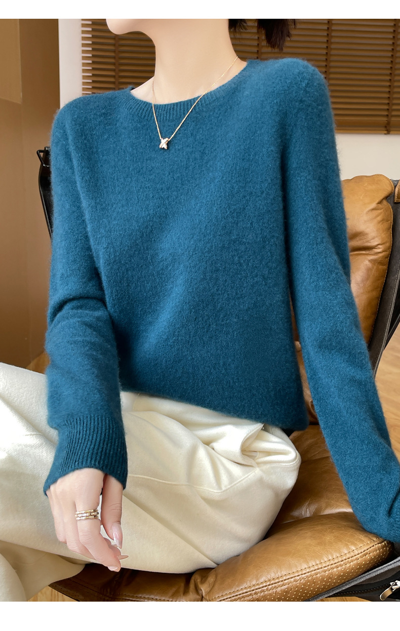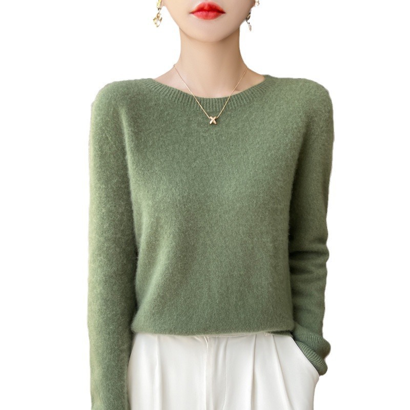 Бесшовный цельный трикотажный свитер из 100% австралийской мериносовой шерсти, женский, с круглым вырезом, высококачественный вязаный базовый топ