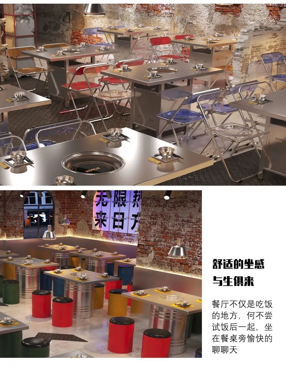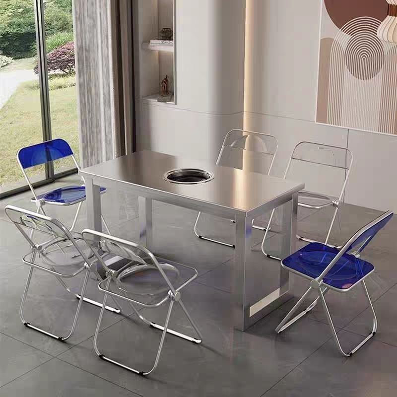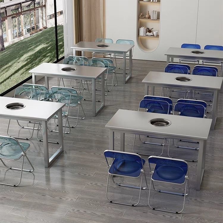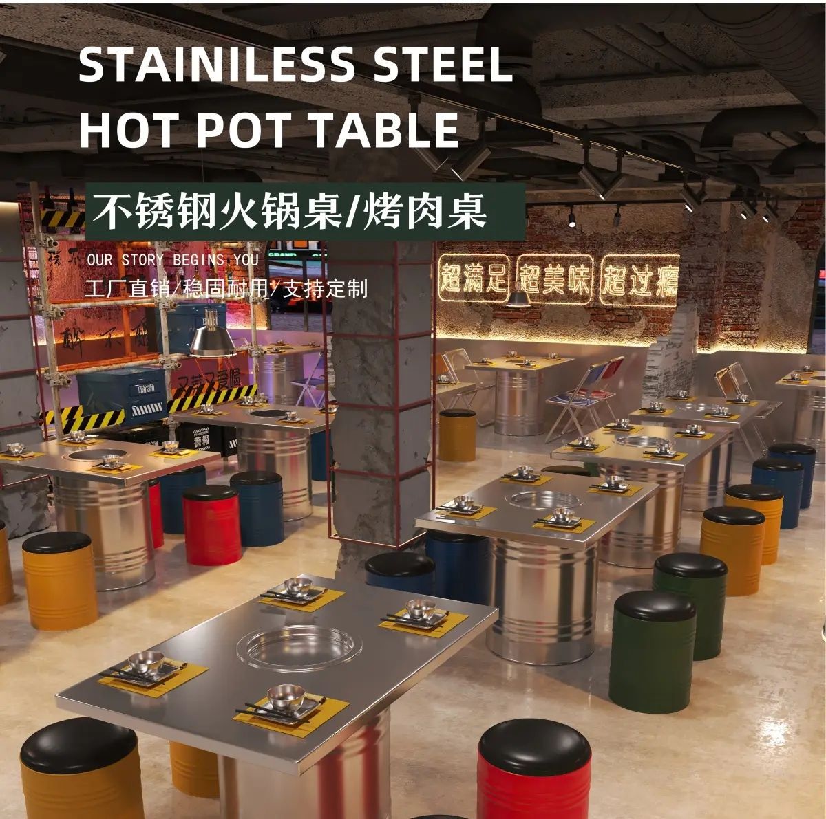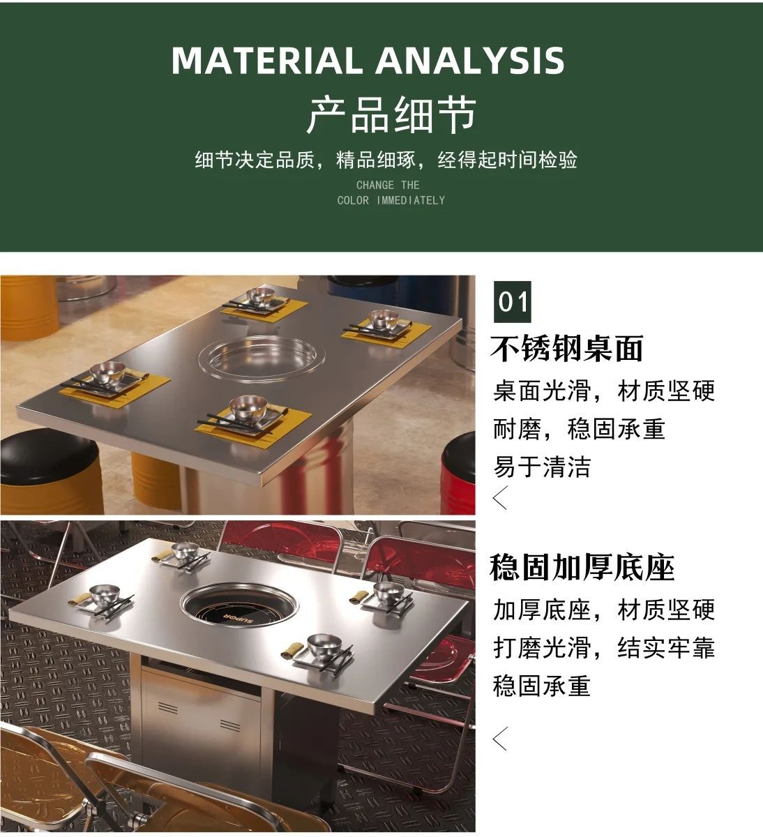 Простой корейский стол для барбекю из нержавеющей стали промышленный горячий горшок индукционная плита интегрирована в коммерческое барбекю для бездымных столов и стульев