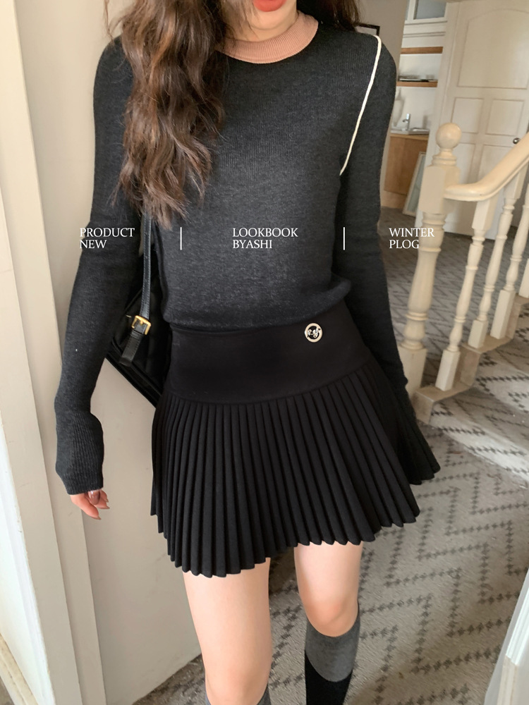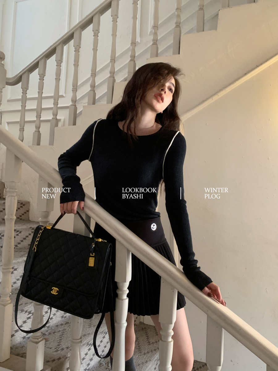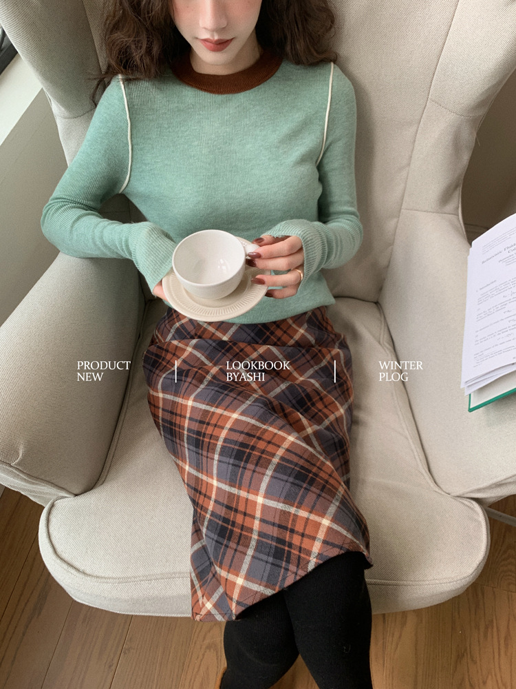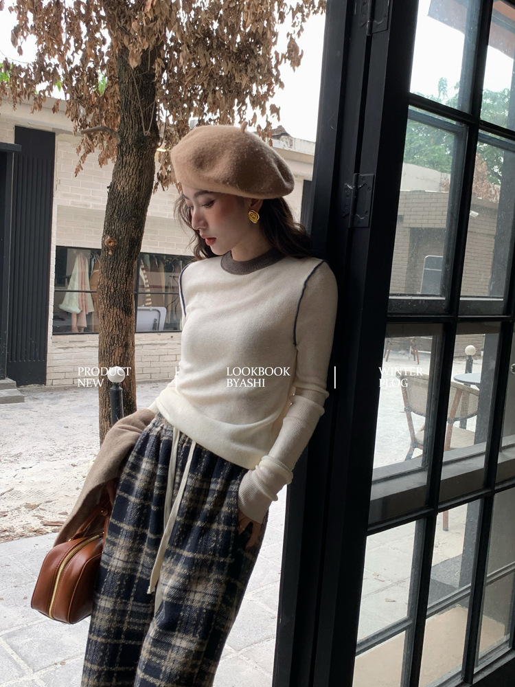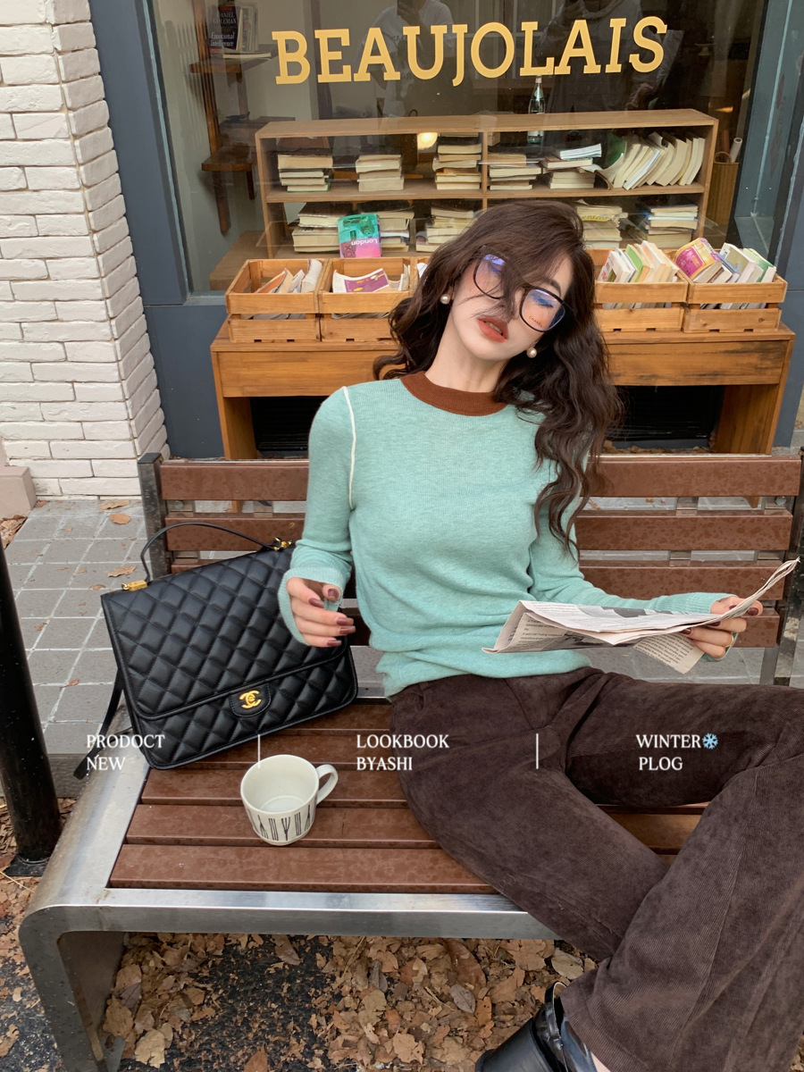 Женская базовая кофта из шерсти с цветовыми блоками, создающая эффект мягкости и стройности, универсальный базовый пуловер с круглым вырезом и трикотажным дизайном.