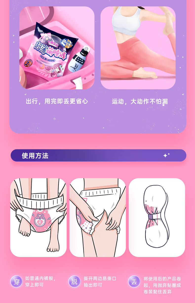 QKC8902M-L Удобные трусы для сна в семимерном пространстве, трусы-подгузники для ночного использования, ультратонкие трусы для сна, большая вместимость, защита от протеканий, модель с застежкой-застегиванием.