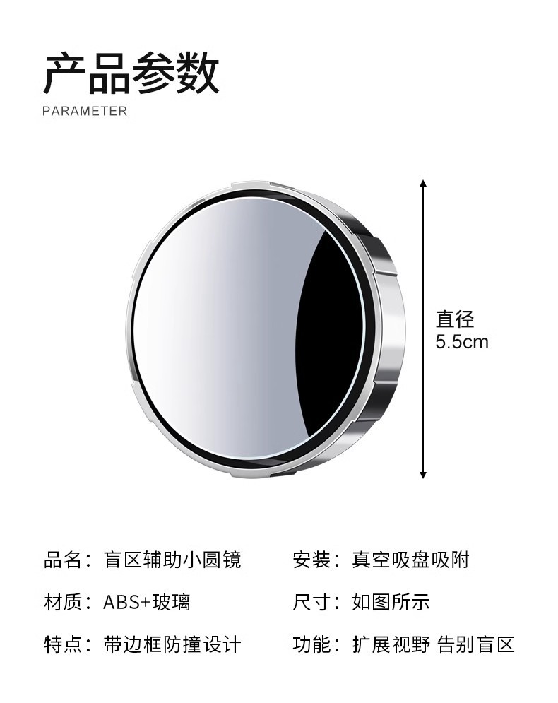 【产品名称】后视镜小圆镜吸盘款 白、黑、银