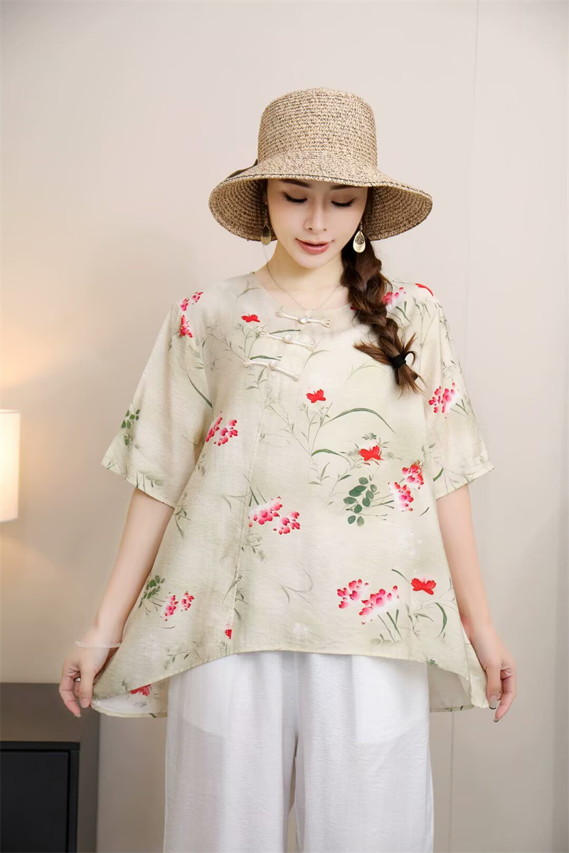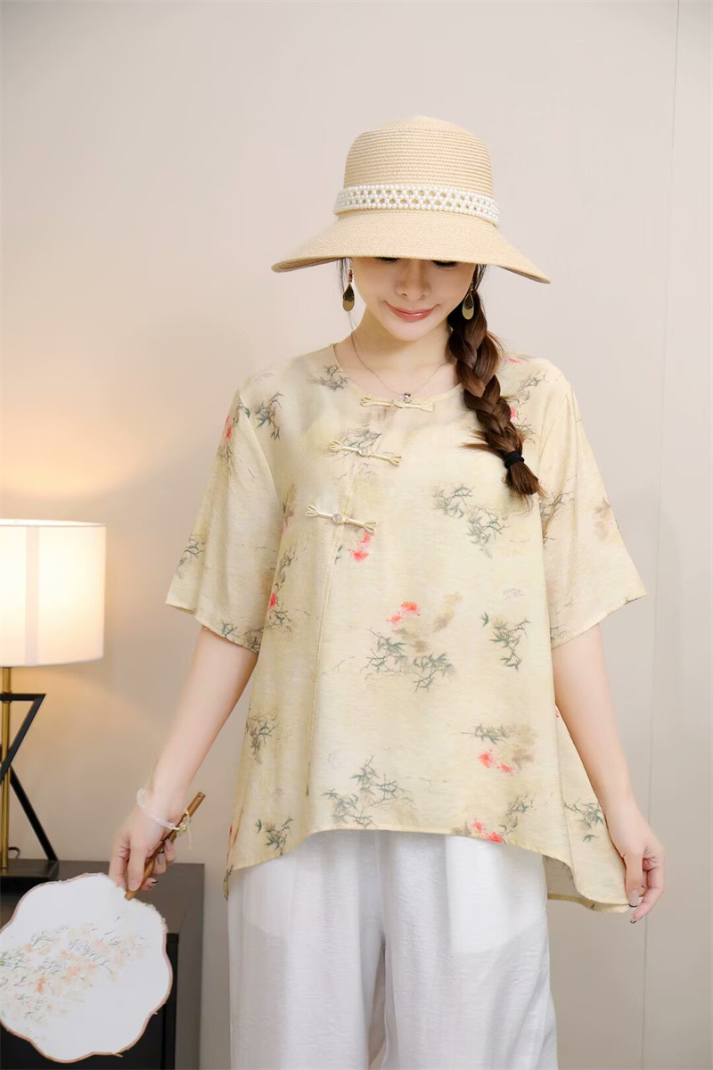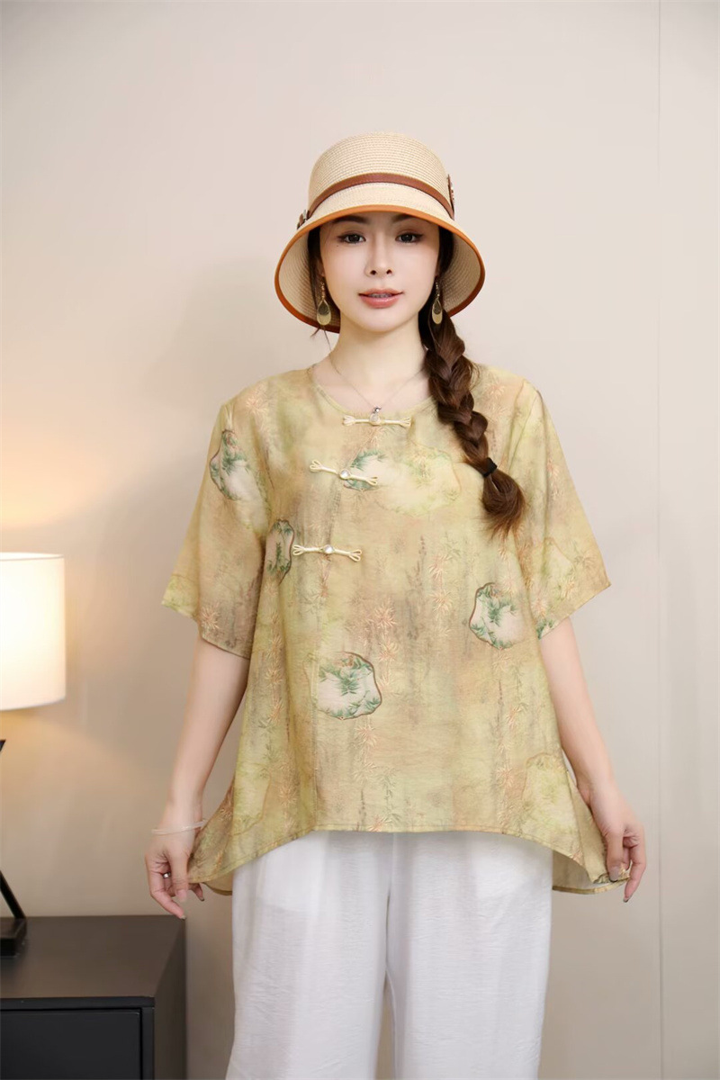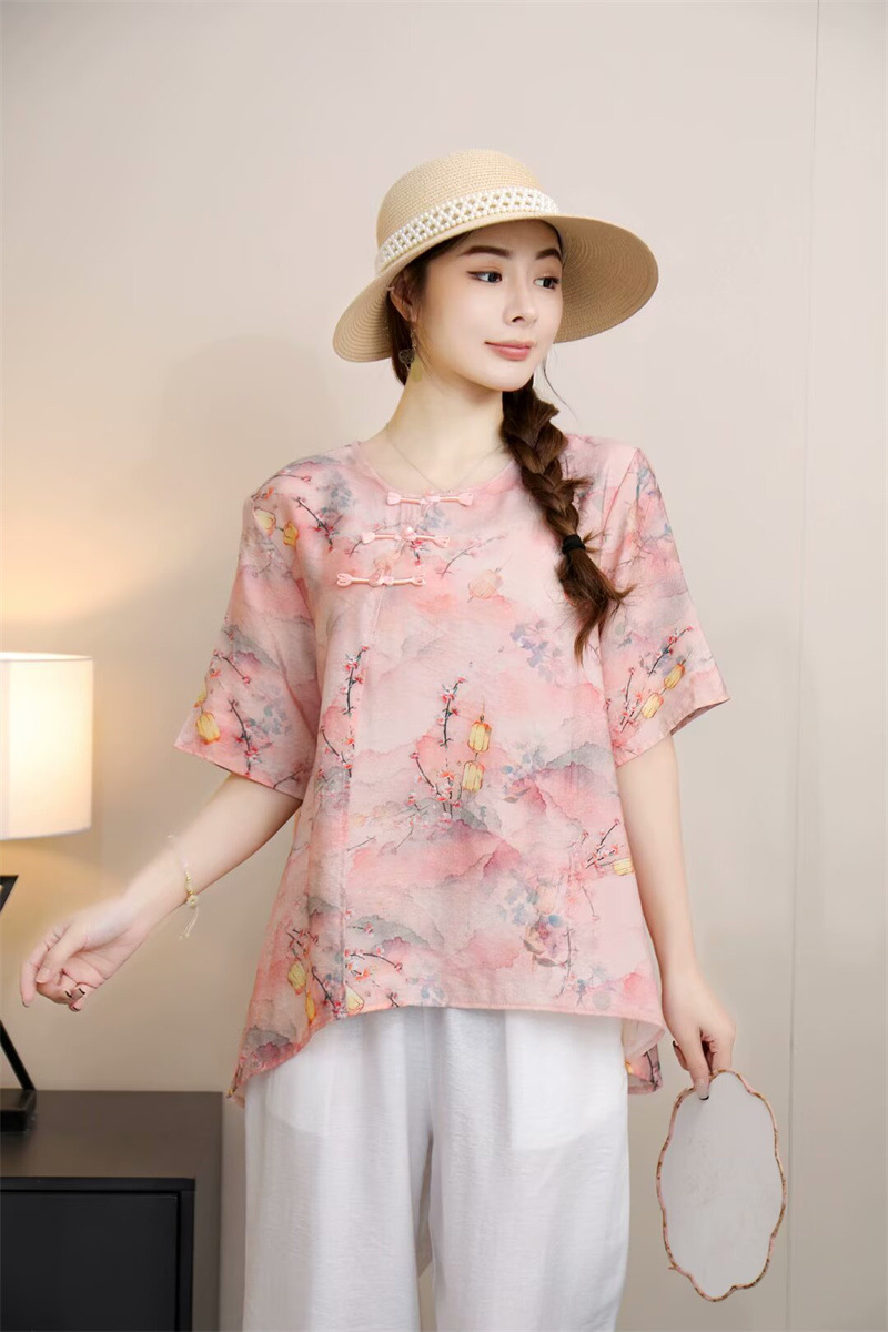 Китайский стиль ретро литературный стиль с круглым вырезом