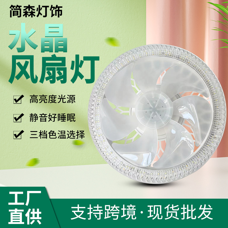 Трансграничная гостиная хрустальная лампа вентилятора Домашняя люстра Современная минималистичная тихая комната E27 Винт вентилятор лампа
