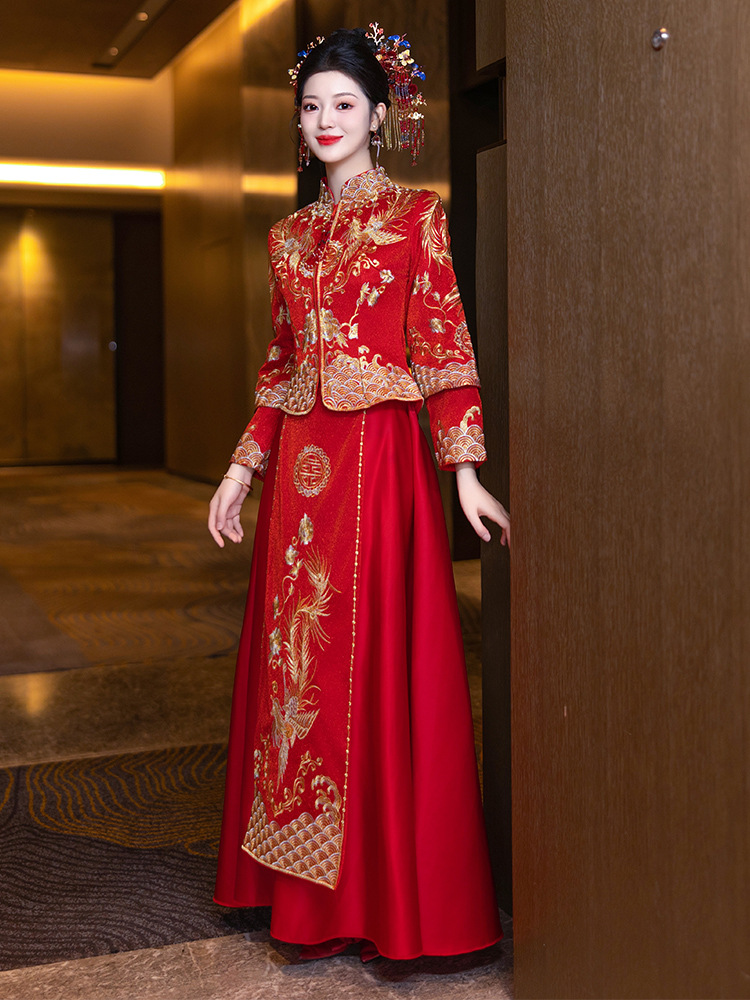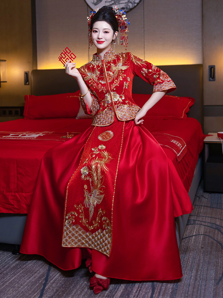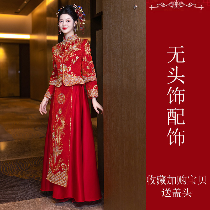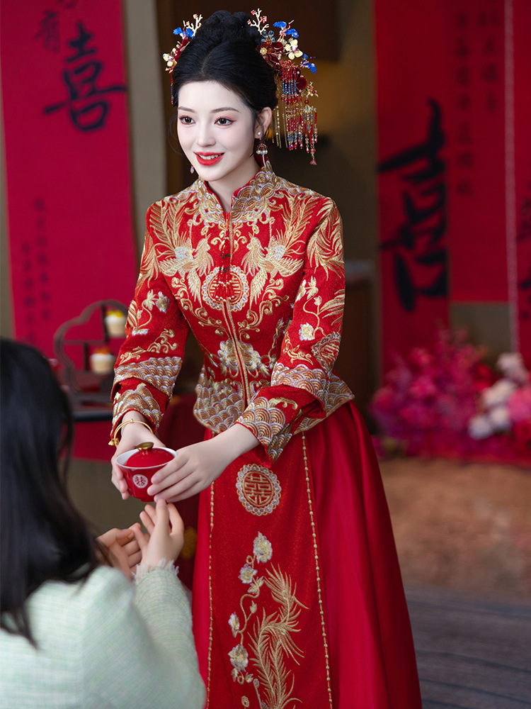 Свадебная одежда Xiuhe Summer 2024 новый маленький человек свадебное платье дракон и феникс из свадебного платья