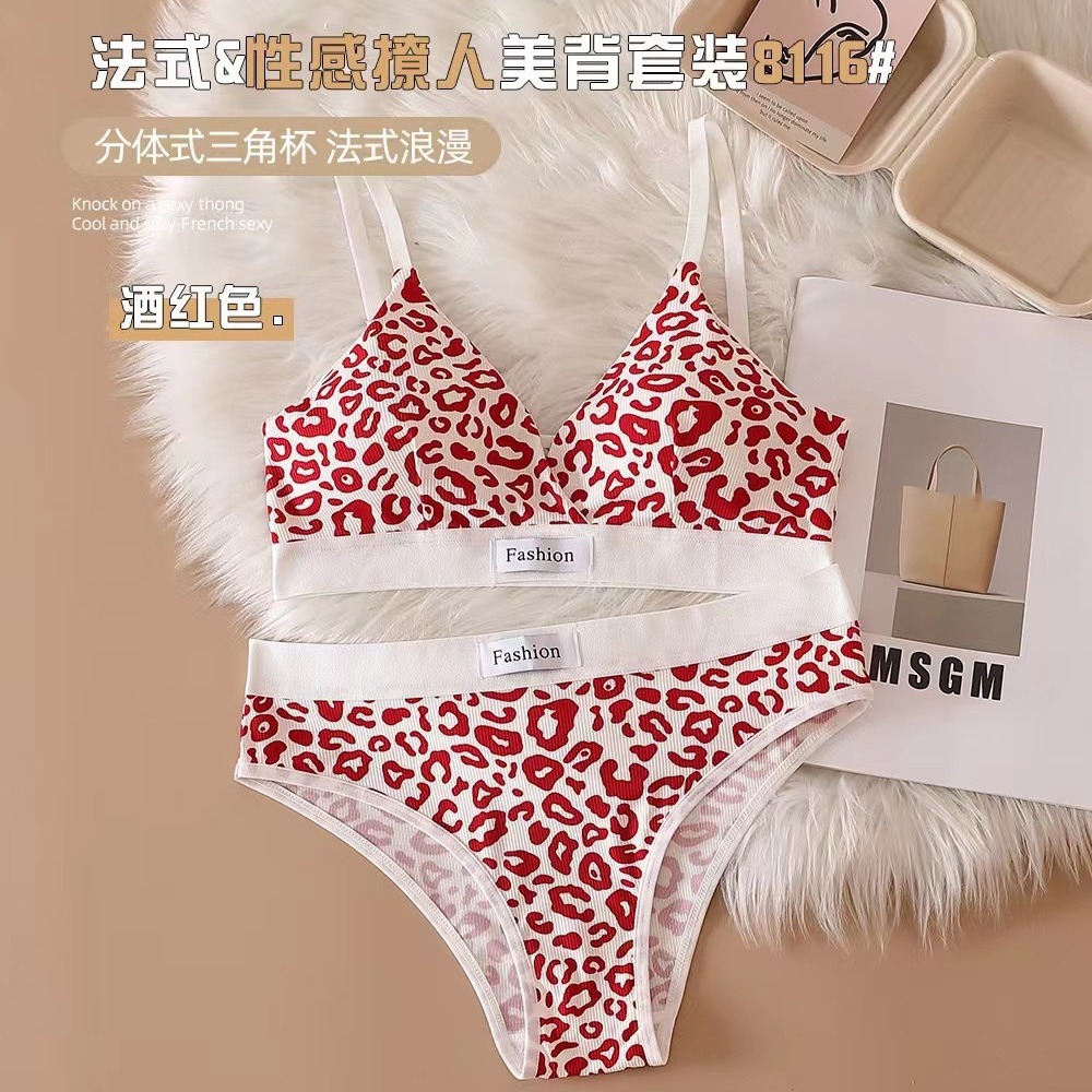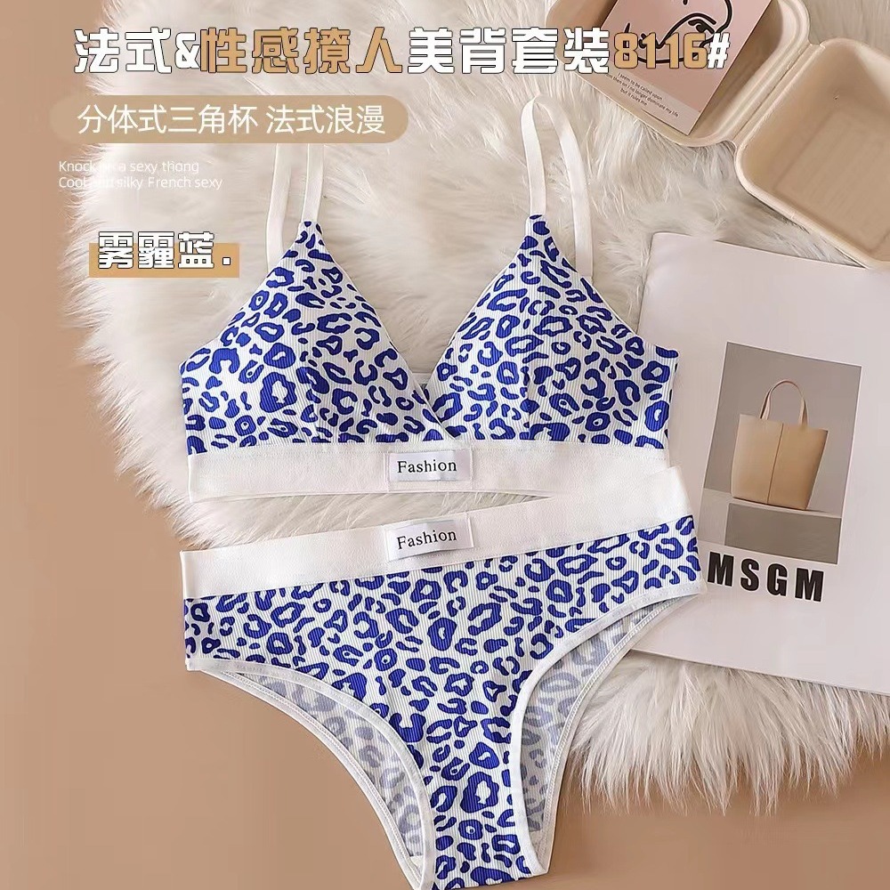 Оригинальный трансграничный новый регулируемый ремень на плече Женское нижнее белье набор европейский и американский леопардовый бюстгальтер без стального кольца набор