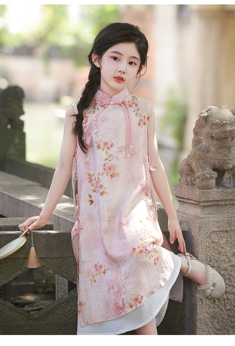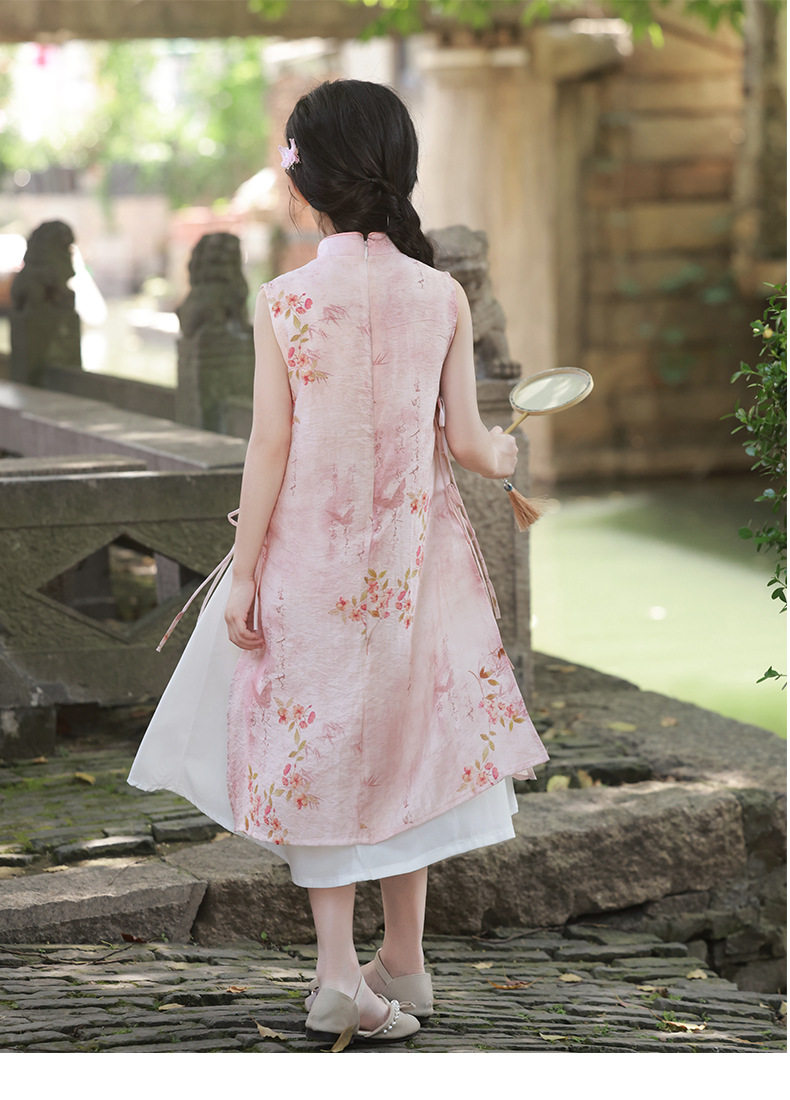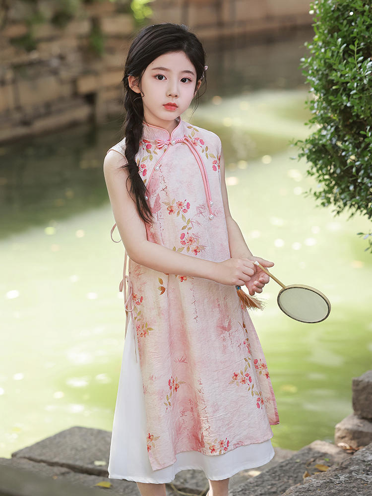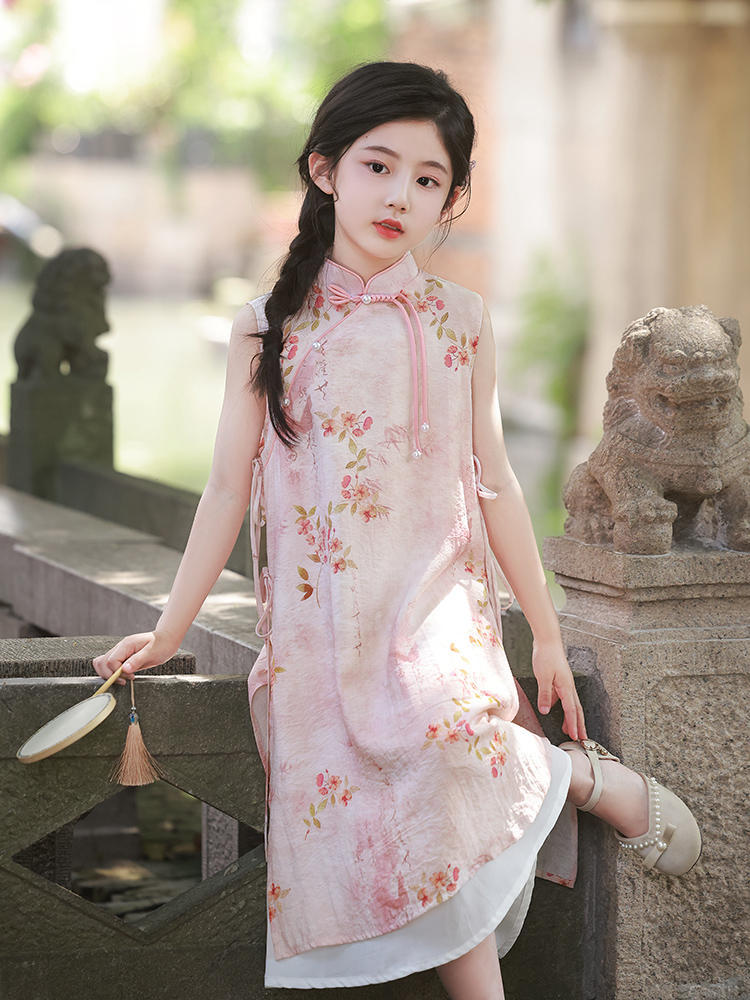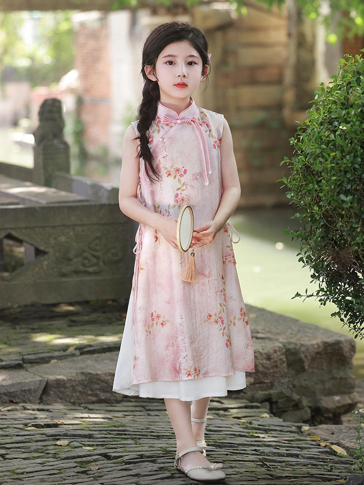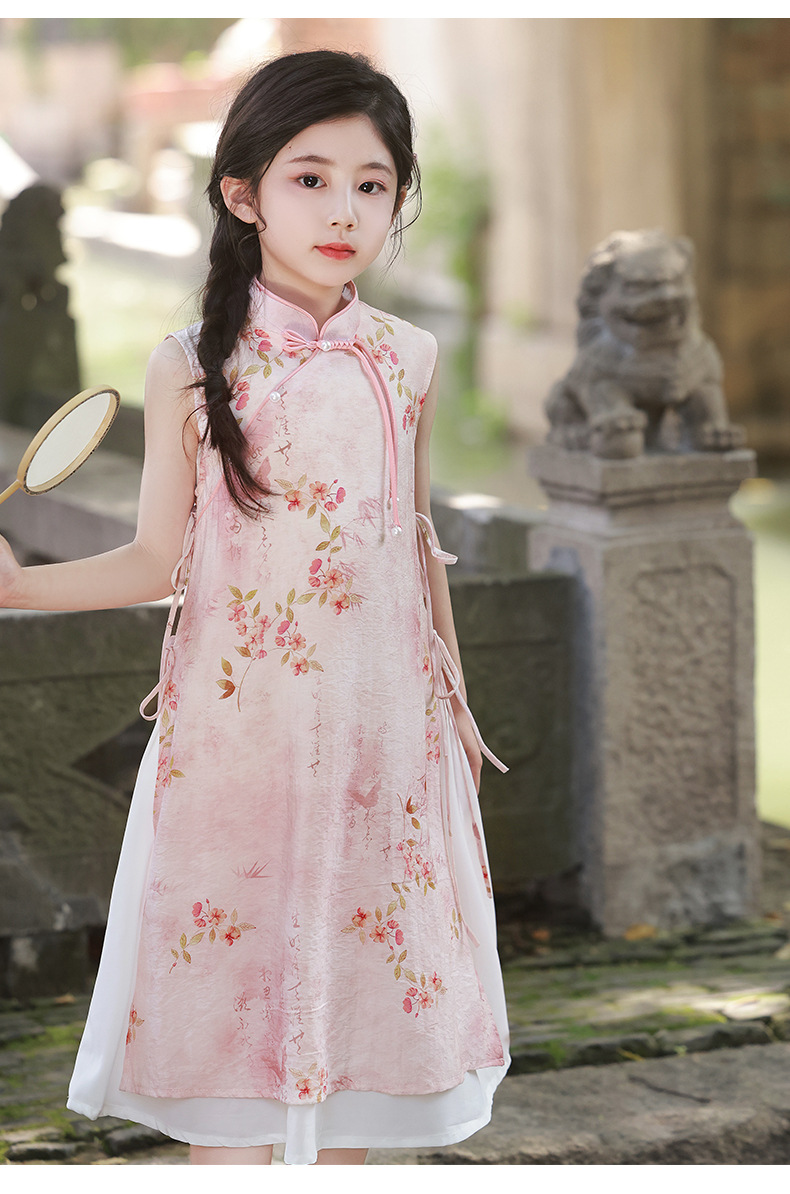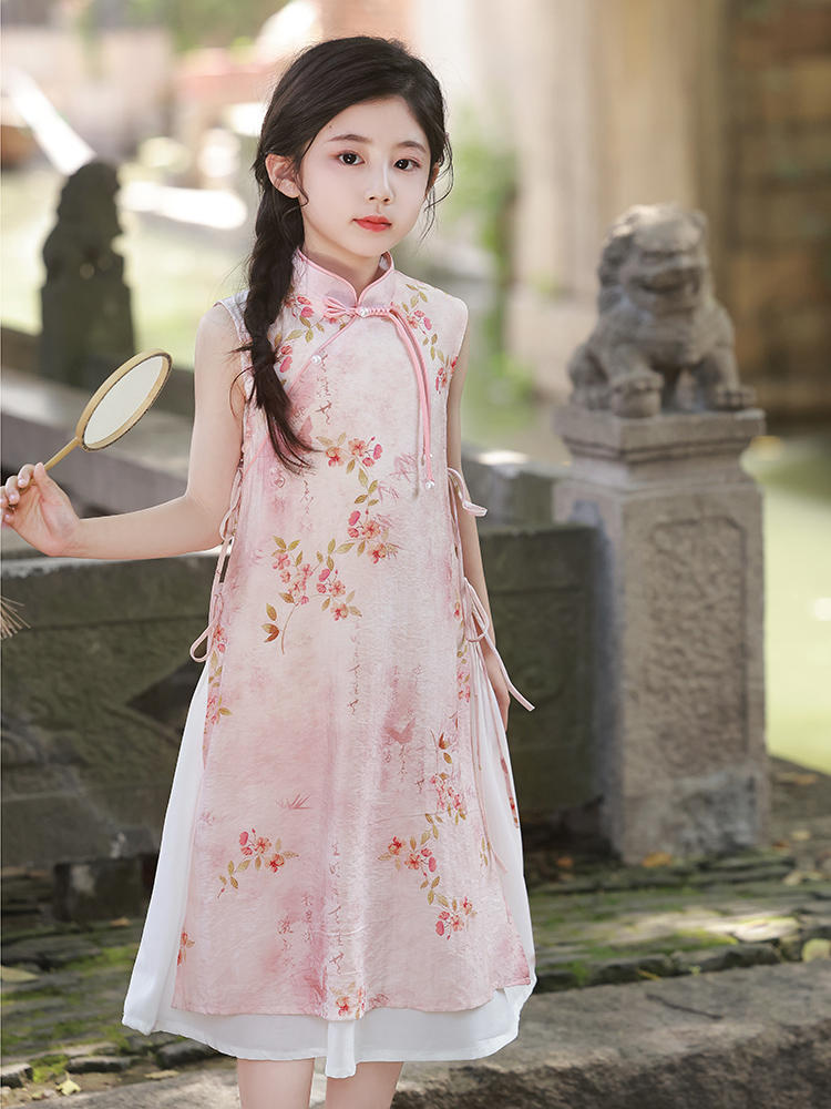 Платье для девочек Китайская Республика, юбка Cheongsam, новый китайский стиль Audai Summer, платье с цветочным принтом, платье для маленьких девочек