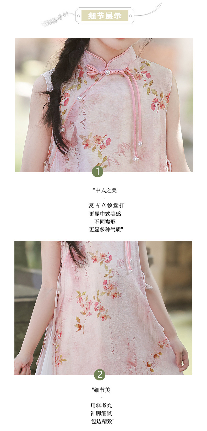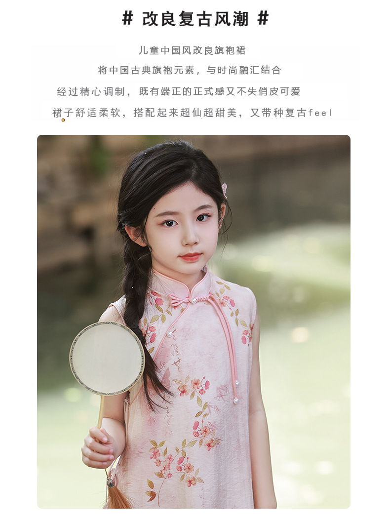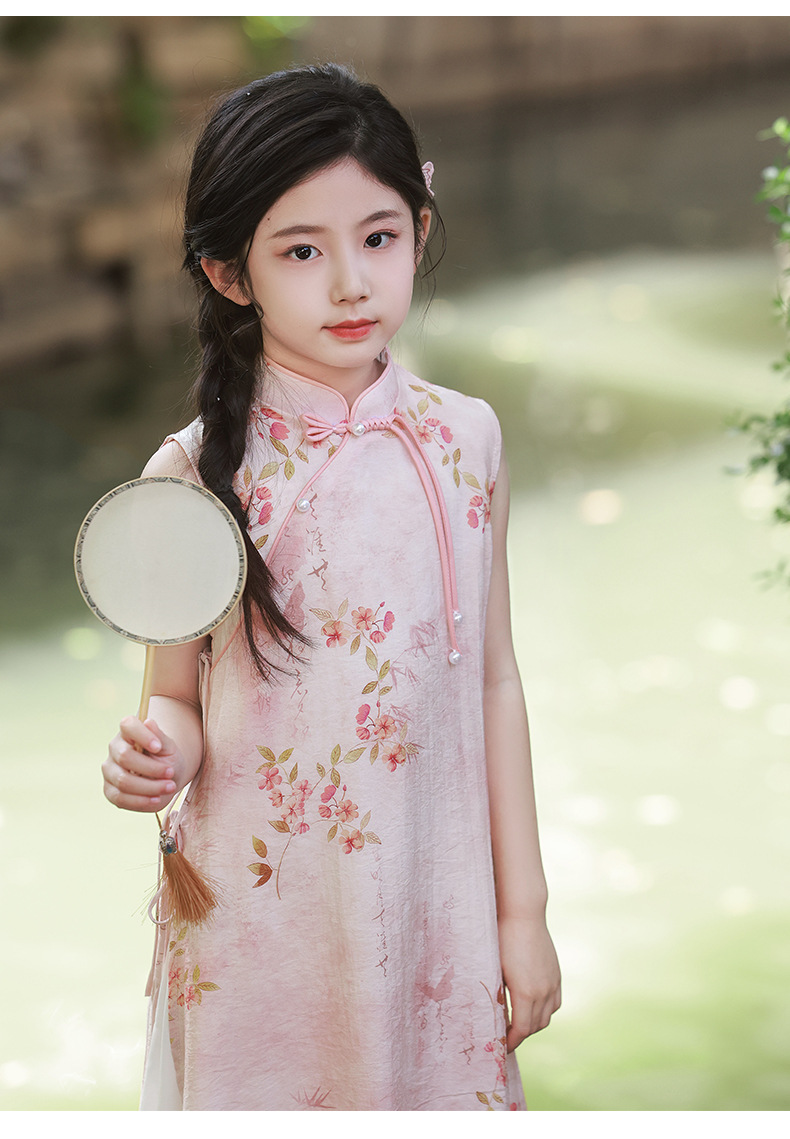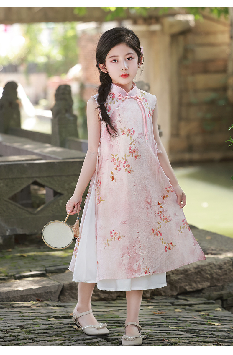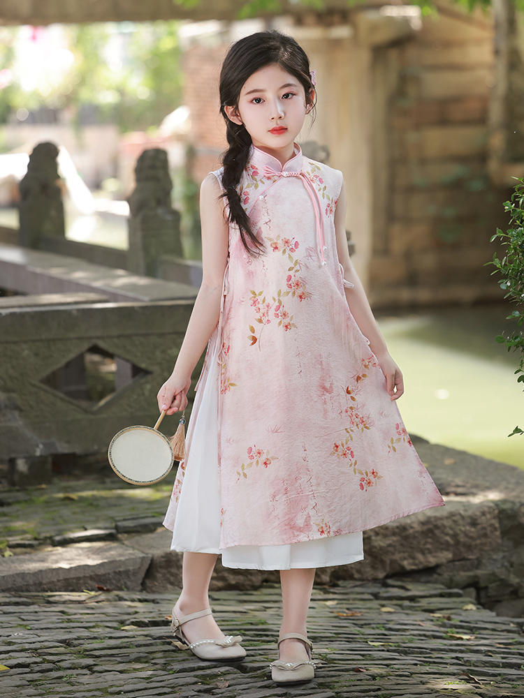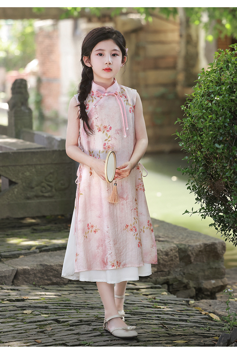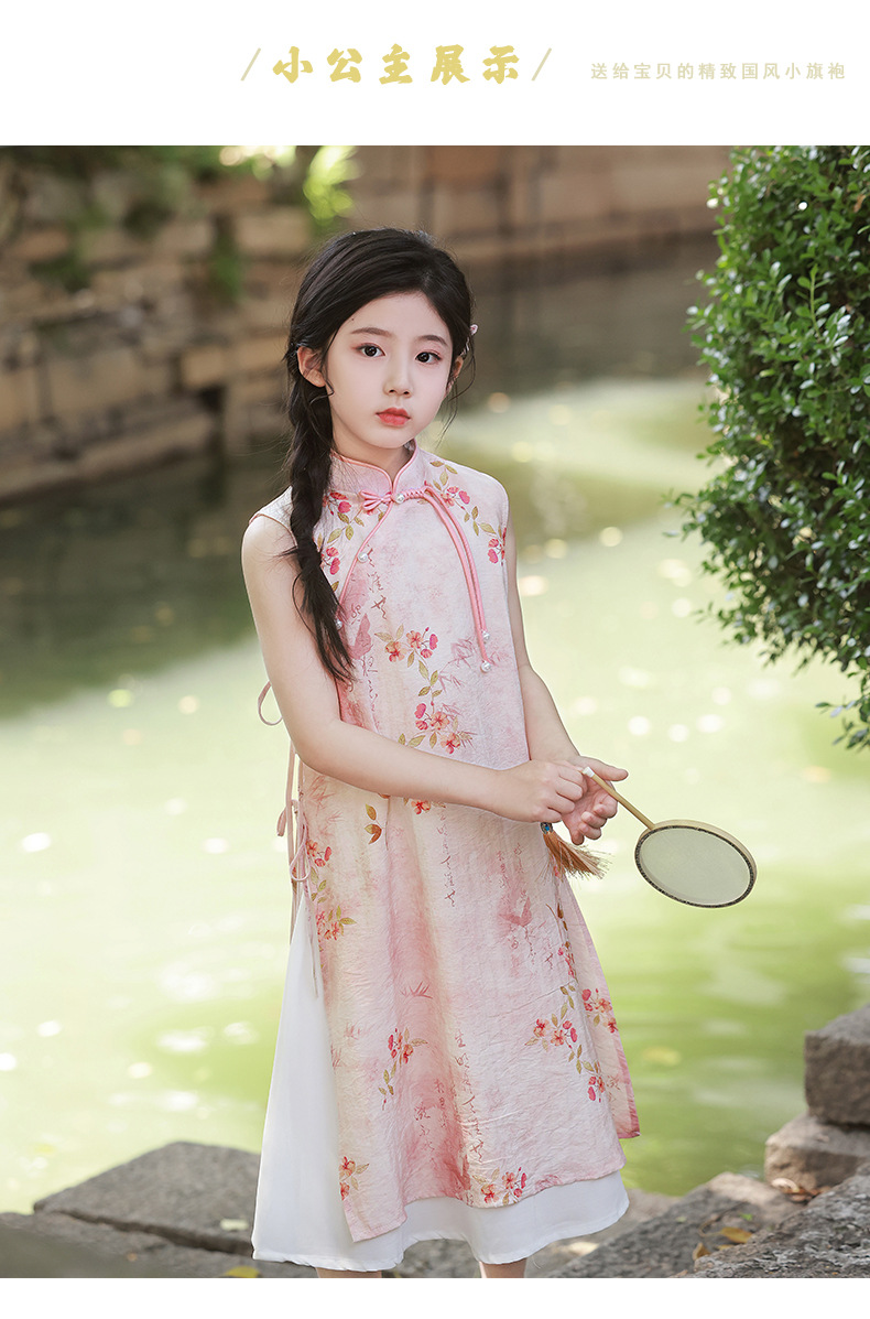 Платье для девочек Китайская Республика, юбка Cheongsam, новый китайский стиль Audai Summer, платье с цветочным принтом, платье для маленьких девочек