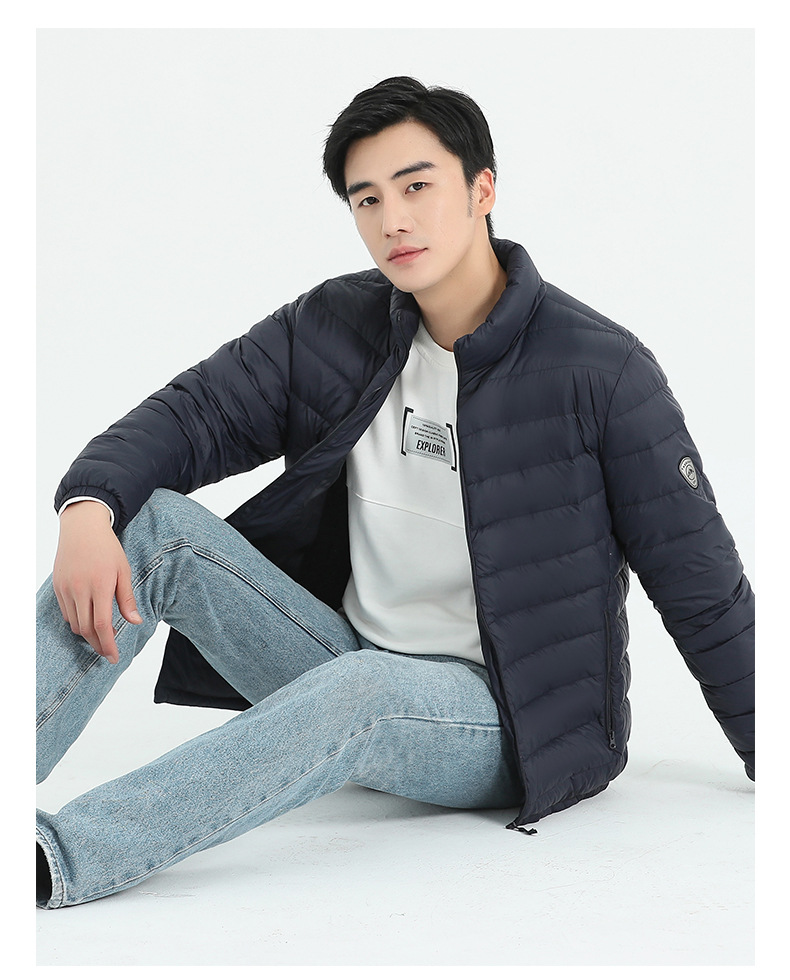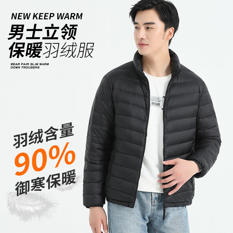 Мужская легкая теплая пуховая куртка с воротником-стойкой из белого утиного пуха, хит продаж для трансграничной торговли, новая модель зимы 2025 года, доступна для групповых заказов