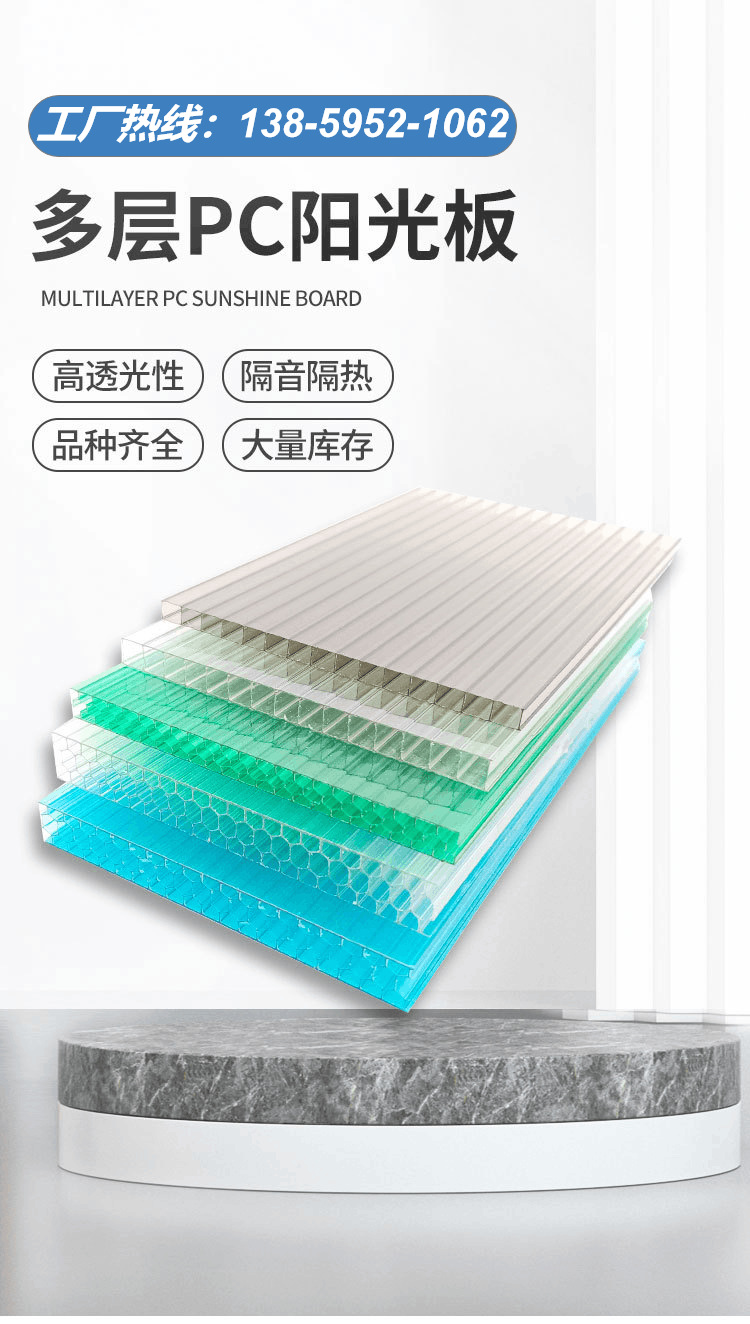 Поликарбонатная сотовая плита PC Sunshine, двухслойная, четырехслойная, 10 мм, для навесов, защиты от солнца и дождя, прозрачная, повышенной прочности