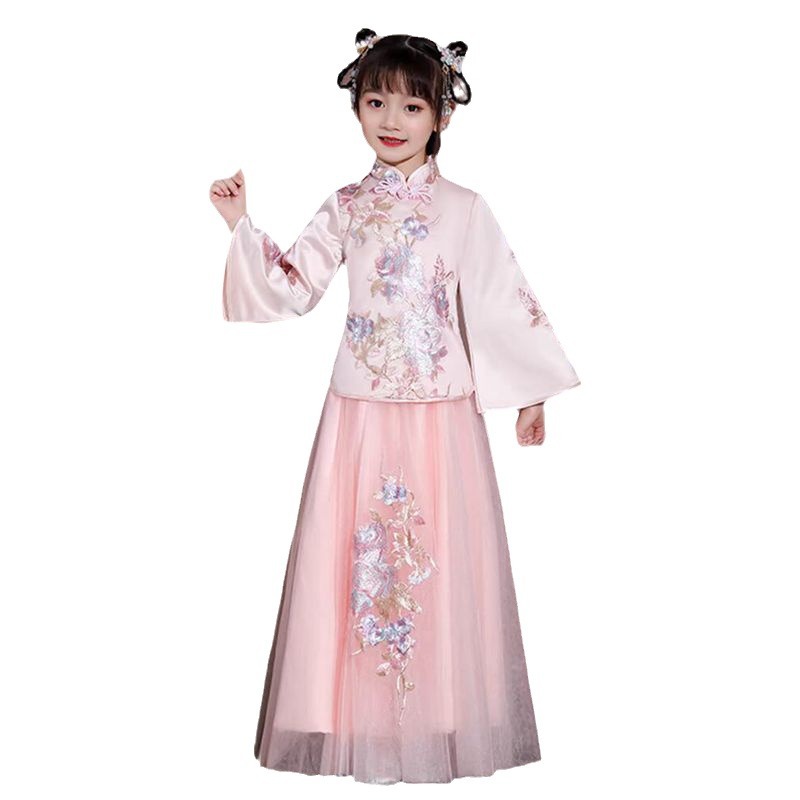 Детское платье Ханьфу для девочек, новинка осени 2025, традиционное юбочное платье в китайском стиле, повседневное, для маленьких принцесс, этнический стиль