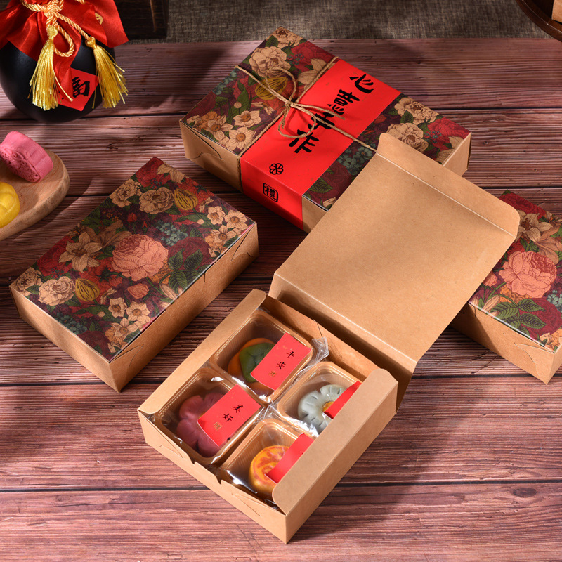 Ретро Праздник середины осени подарочная упаковка старомодный Су-стиль лунный пирог торт из бобов мунг торт цветочный торт выпечка крафт-бумага упаковочная коробка