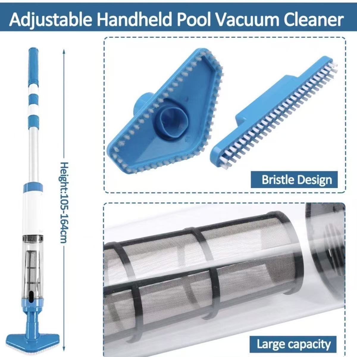 - 【三合一手持式泳池吸尘器】: 我们的泳池吸尘器配有两个可更换刷头。 角刷用于清洁泳池角落和狭窄的缝隙。 扁平刷用于清洁大面积游泳池底部。 此外,您还可以简单地使用无刷头收集杂物。