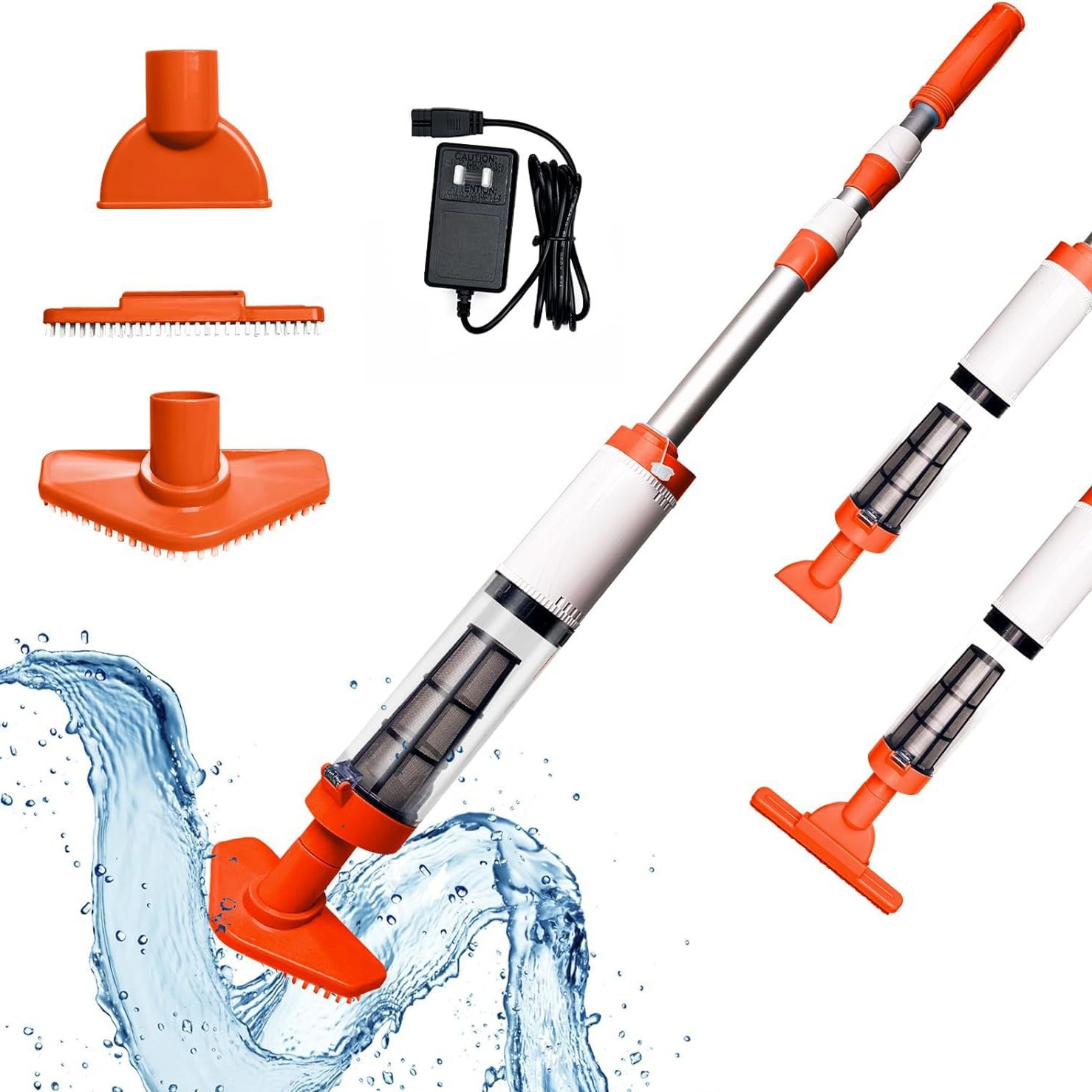 - 【强力吸力】:内置于无绳泳池真空吸尘器中的升级高速电机可提供强大的吸力,但噪音低。 它可以轻松拾取大部分杂物(树叶、污垢、沙子、昆虫等)。 适用于地上游泳池、地下游泳池、热水浴缸和水疗中心。