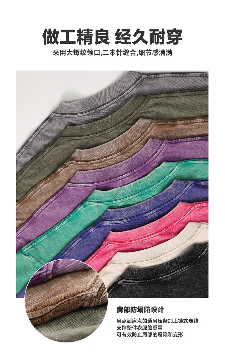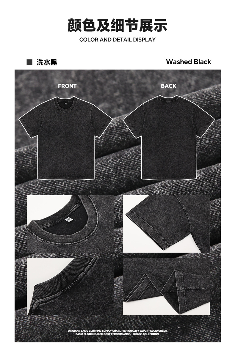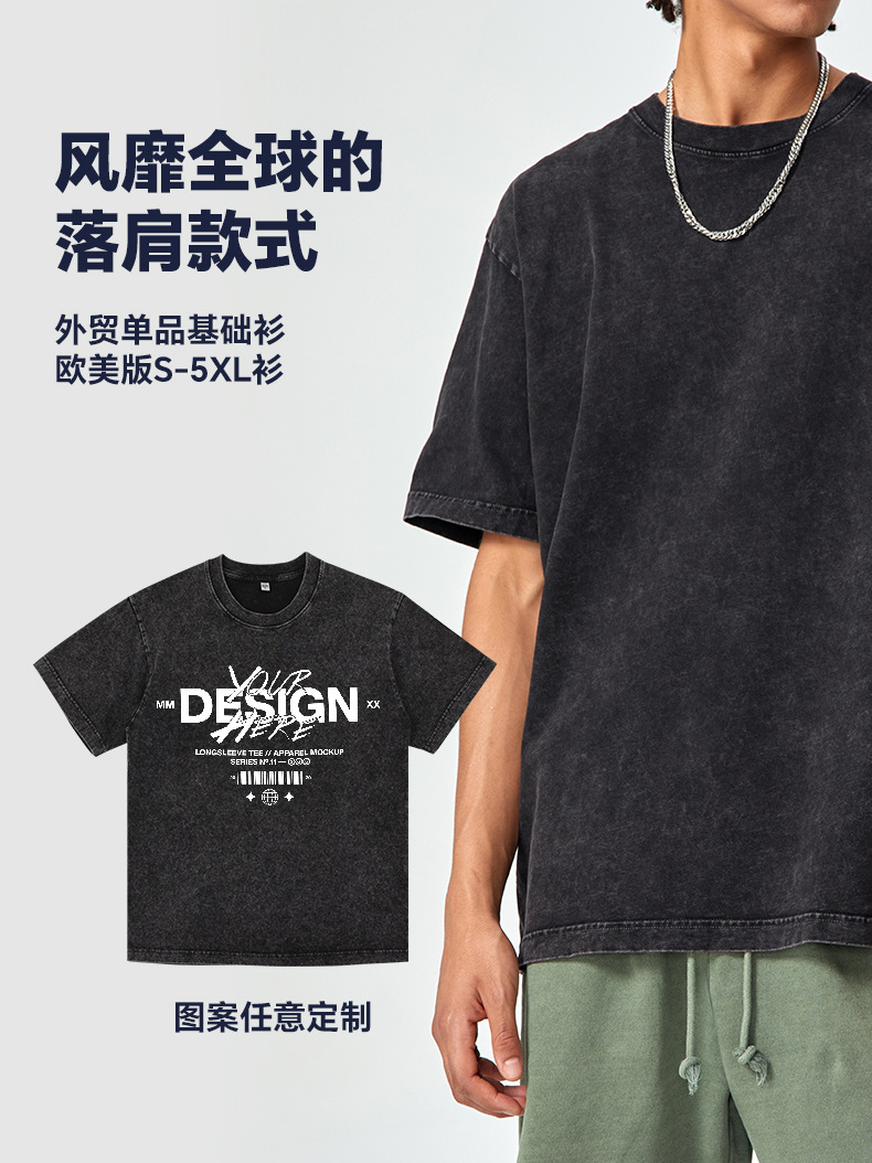 这款是230G纯棉蜡染水洗工艺做旧T恤,外贸热销款。常规备货50W+件现货,欧美尺码S-5XL。可按客户要求定制LOGO,洗水唛、吊牌、包装袋等。默认10件一袋包装,量大联系客服报价。