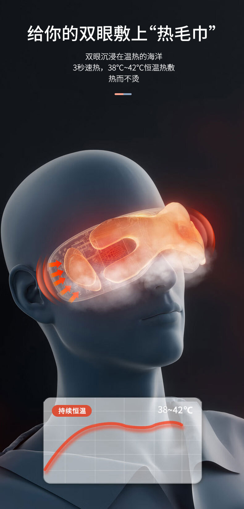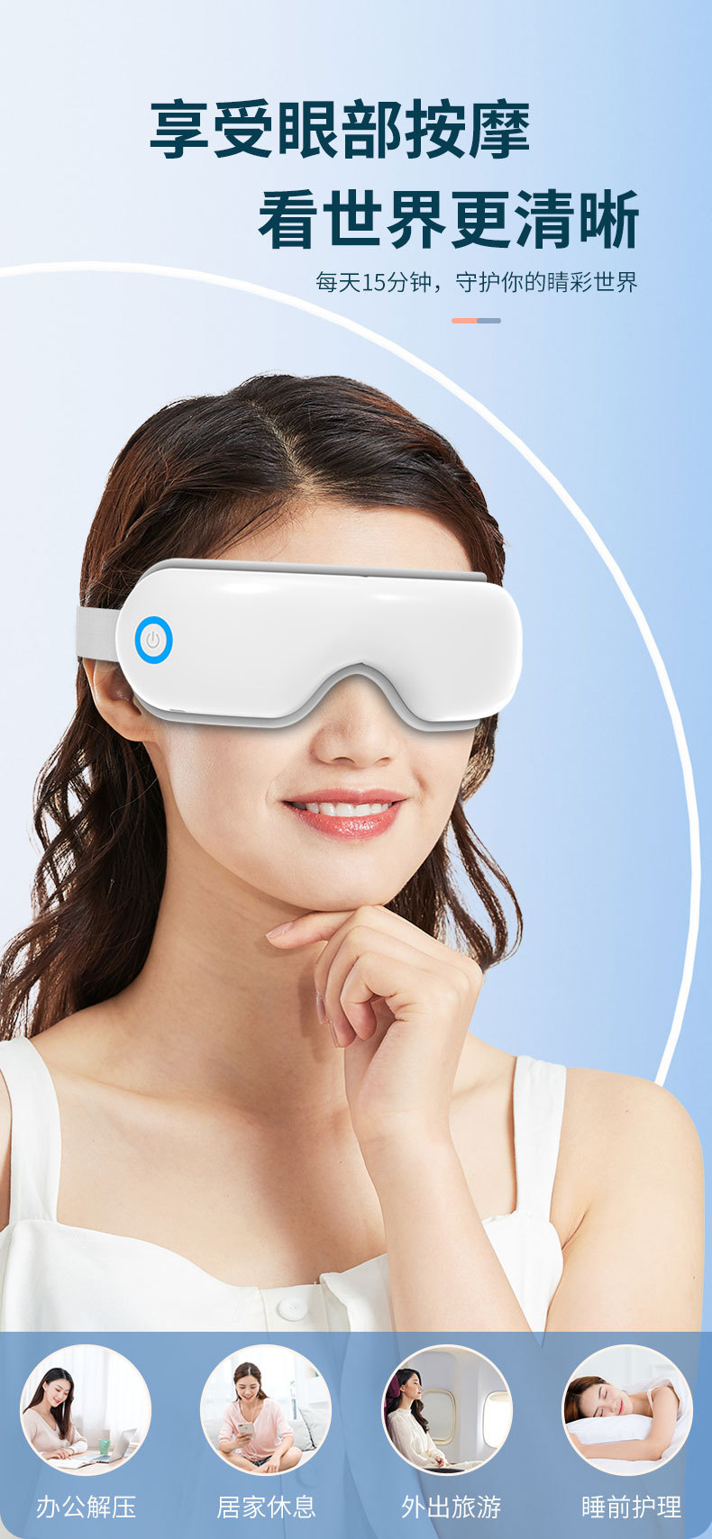 Массажер для глаз с воздушным давлением, настраиваемый для снятия усталости глаз, с вибрацией, подогревом, умное устройство для защиты глаз, перезаряжаемая модель