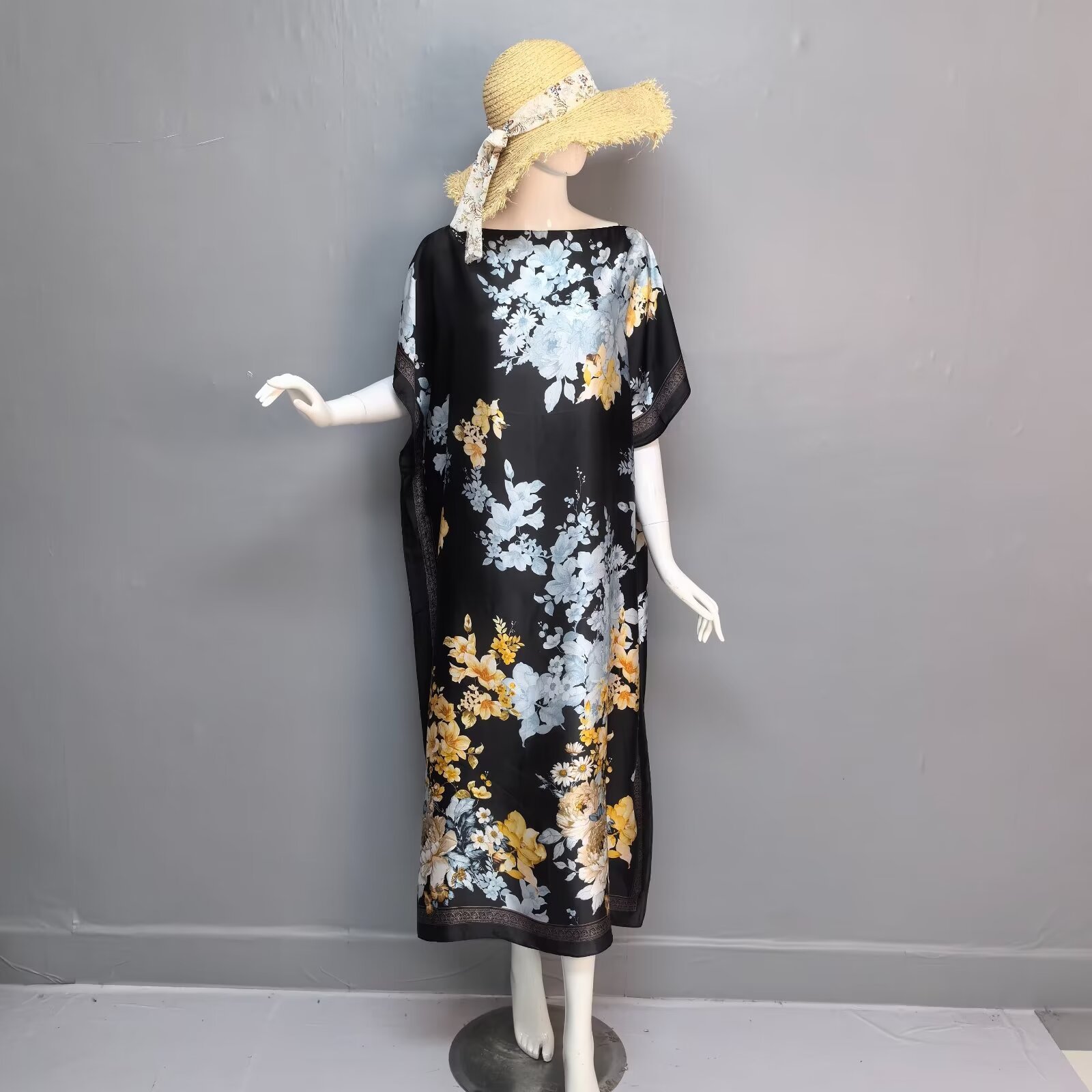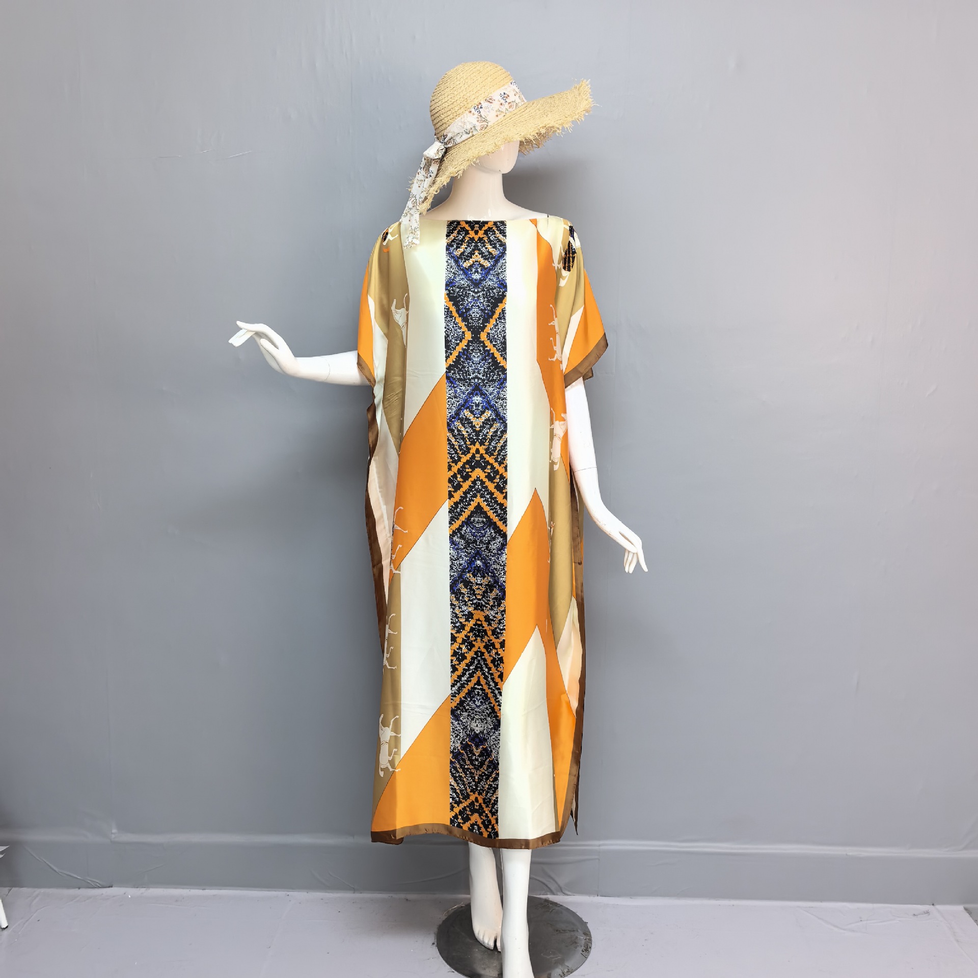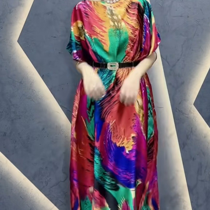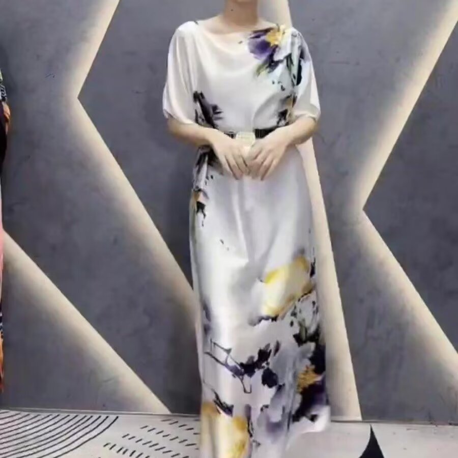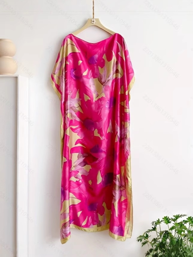 Источник производителя спот оптом в Европе и Америке больших размеров имитация шелковой печати длинная юбка пляжное платье silk k