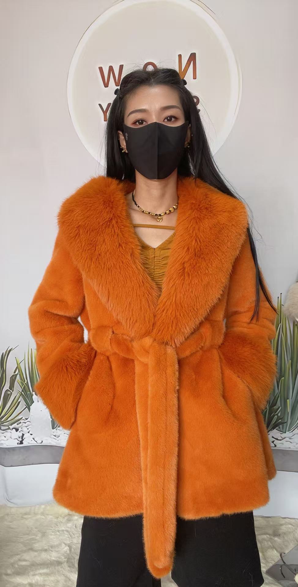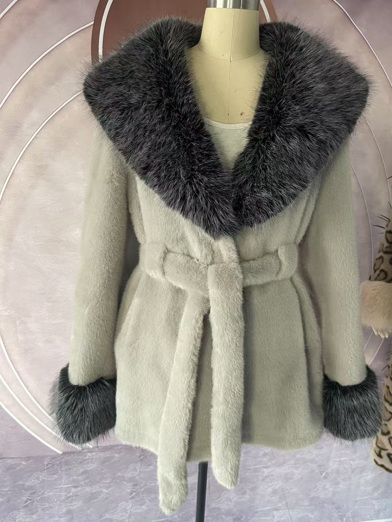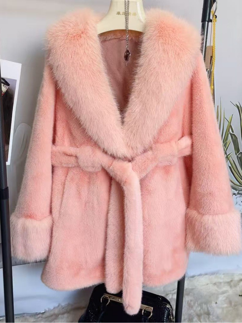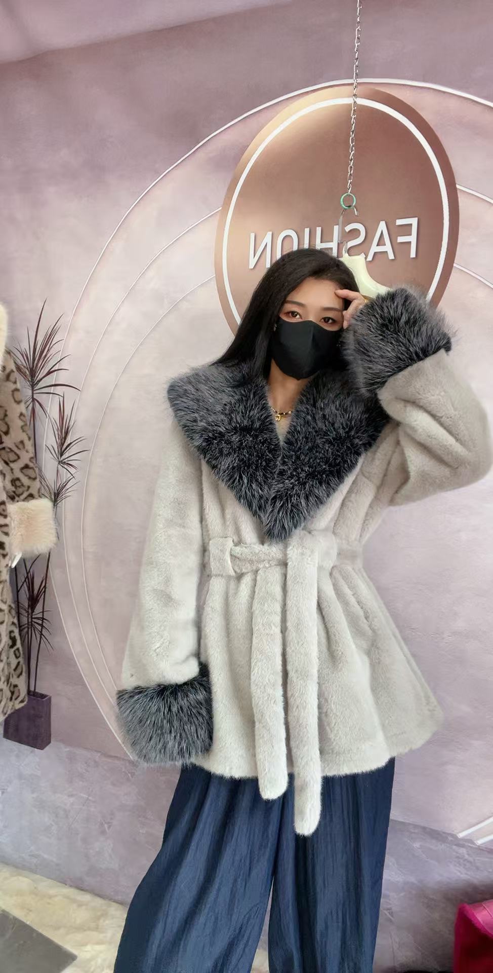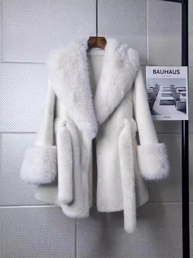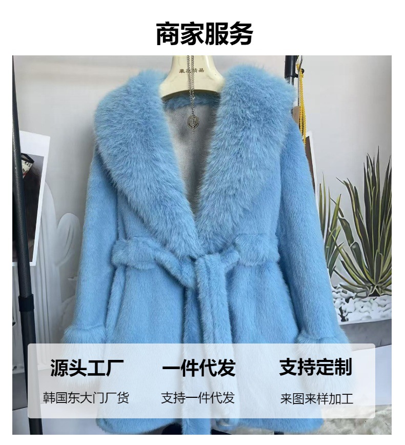 2024 новый большой меховый воротник длинная стройная куртка экологически чистая европейская куница