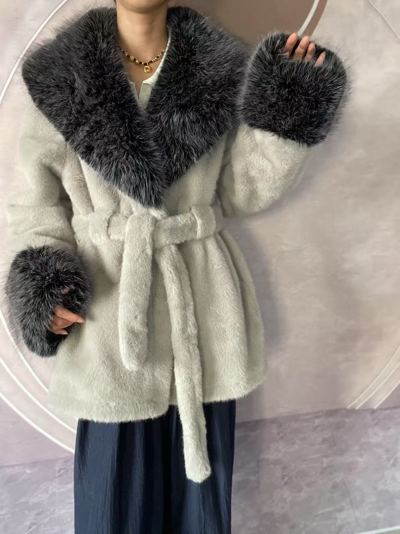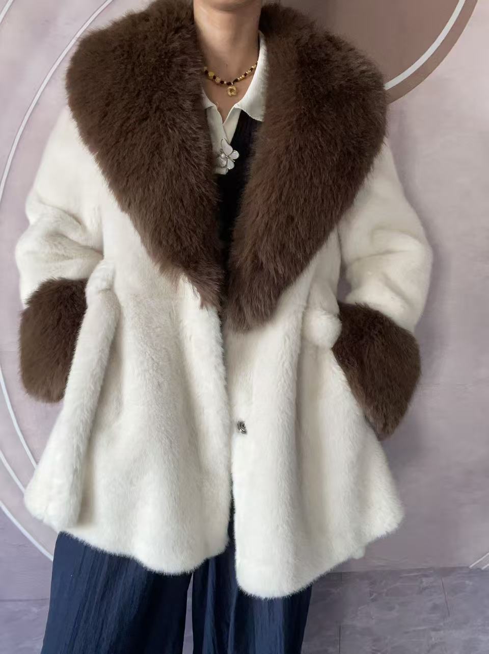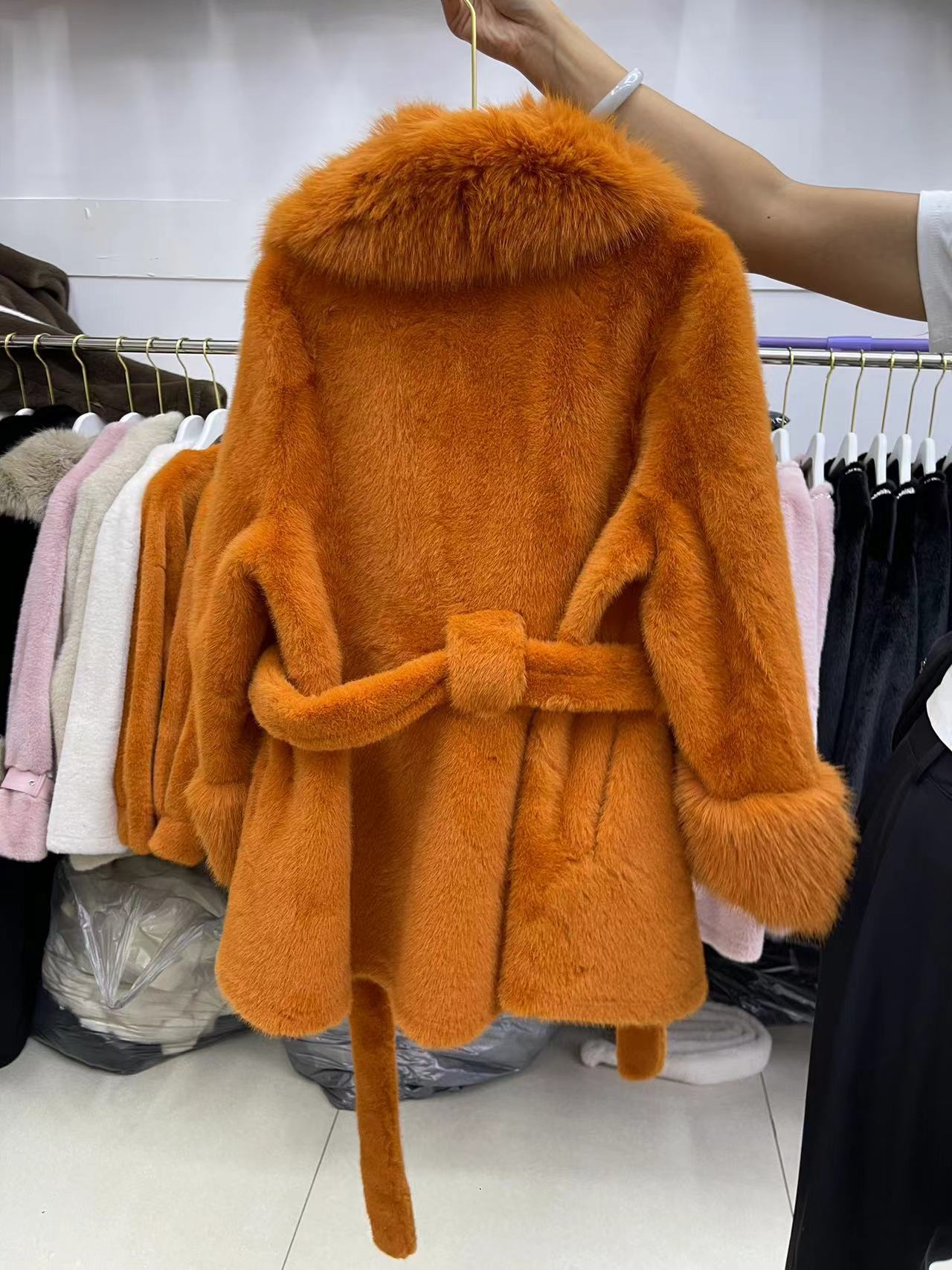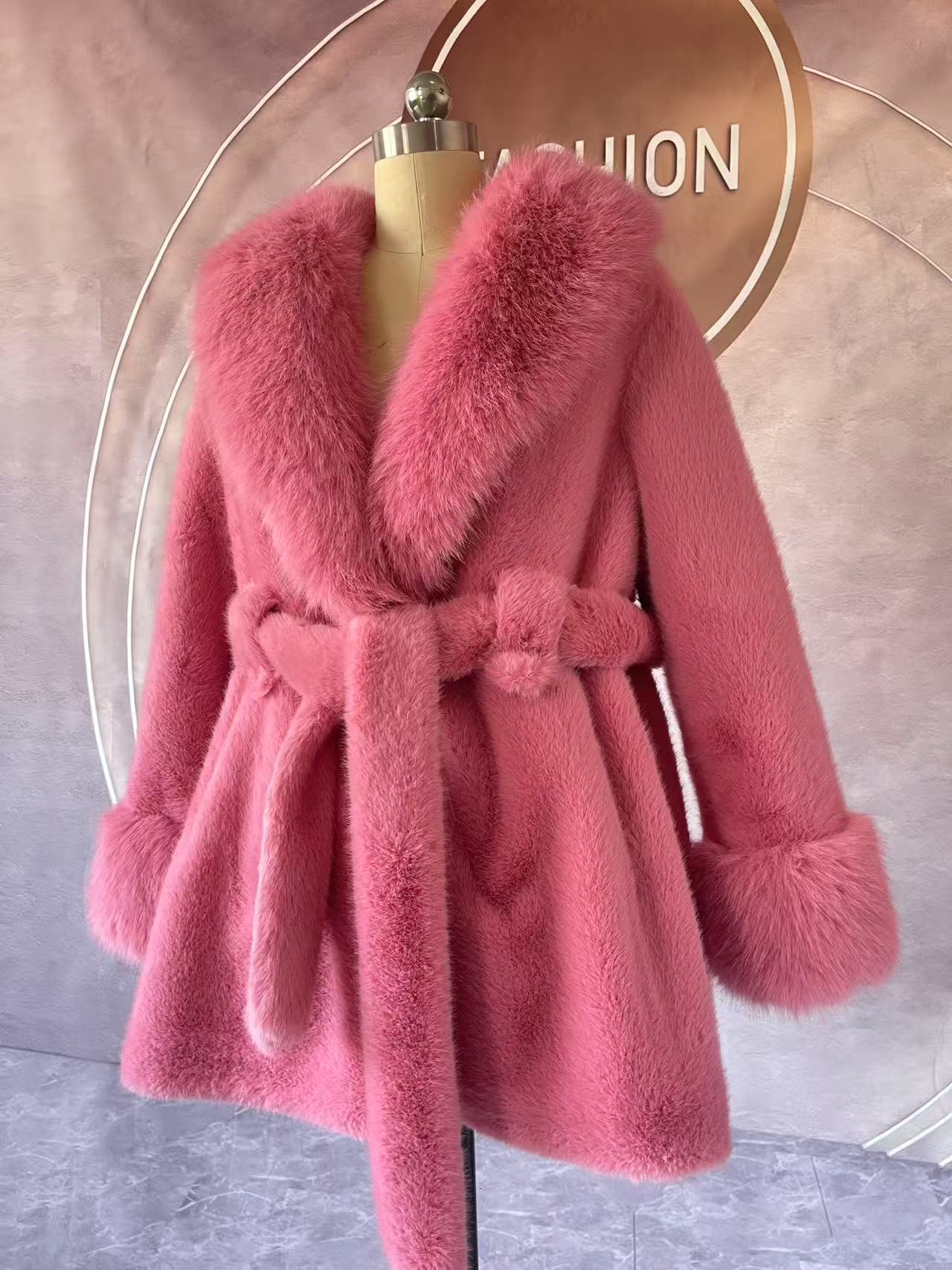 2024 новый большой меховый воротник длинная стройная куртка экологически чистая европейская куница