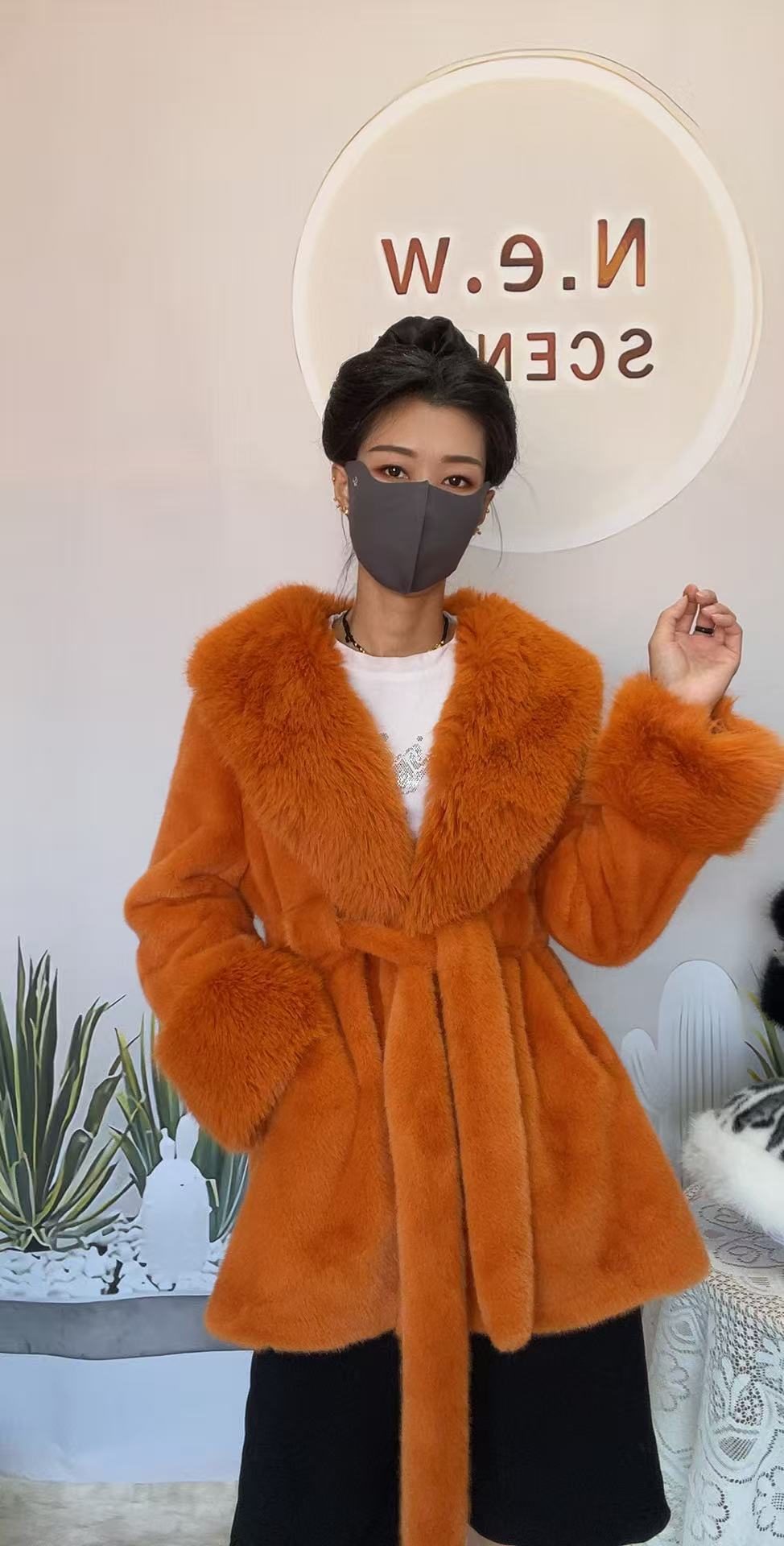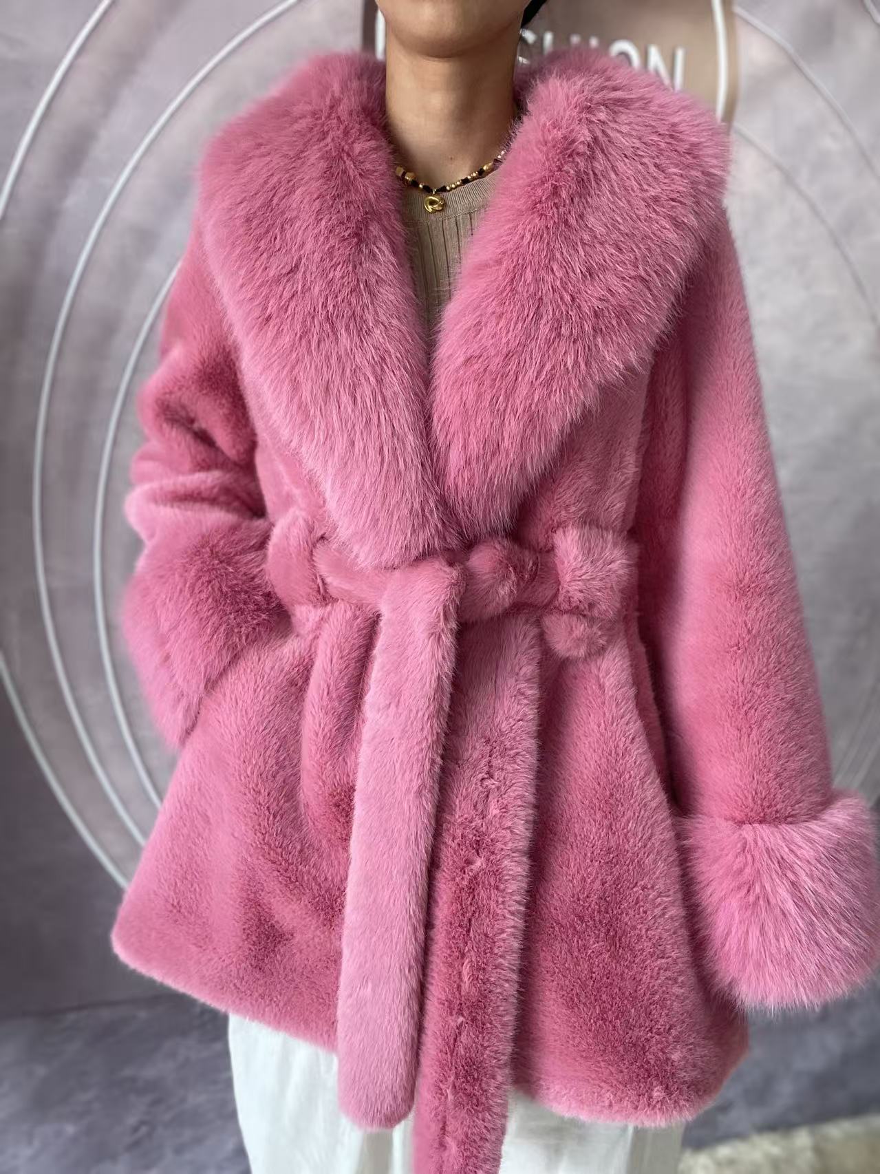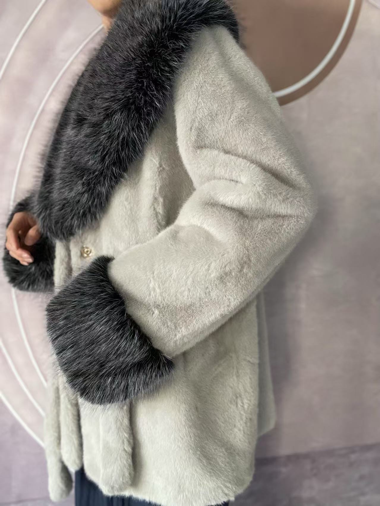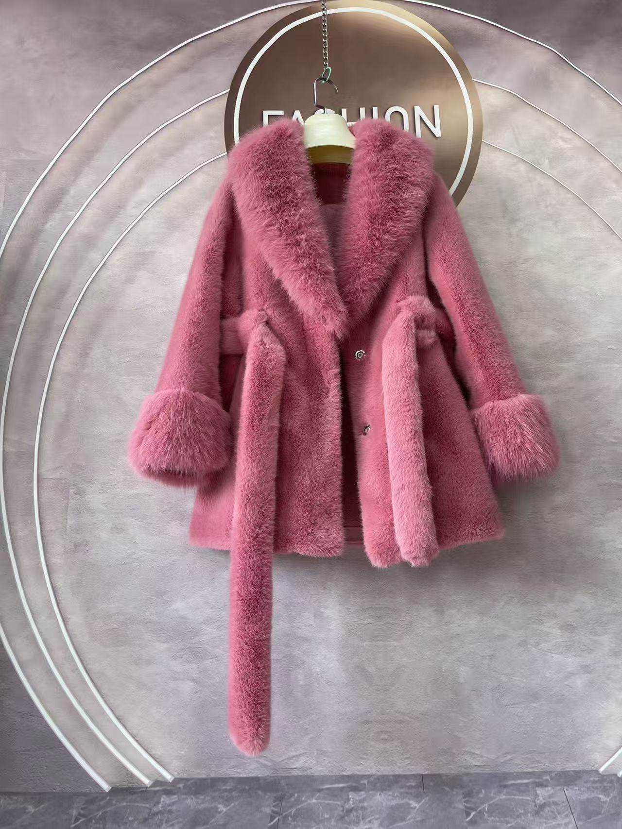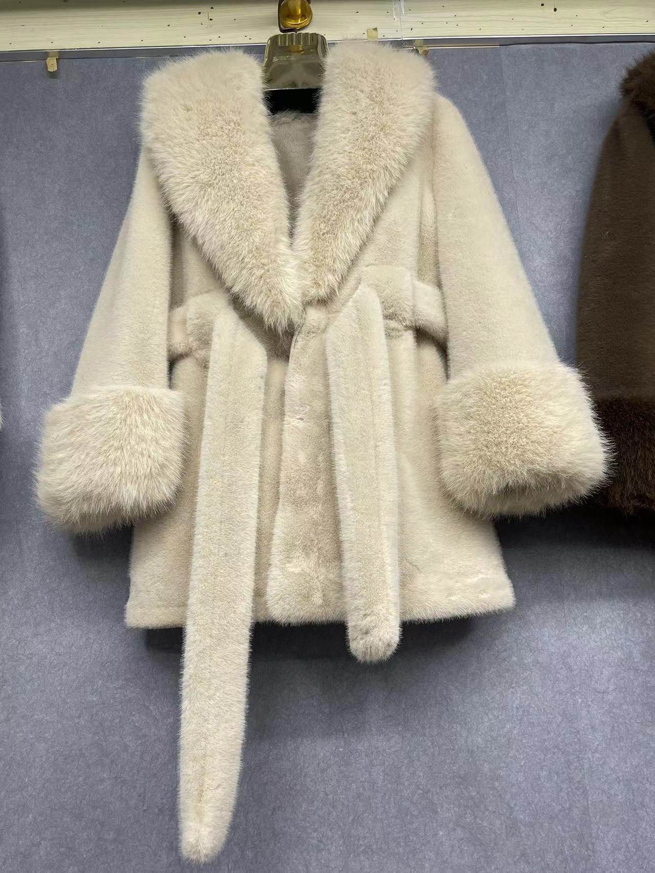2024 новый большой меховый воротник длинная стройная куртка экологически чистая европейская куница