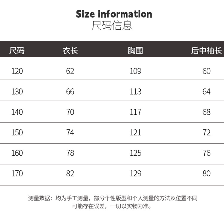 120cm; 130cm; 140cm; 150cm; 160cm; 170