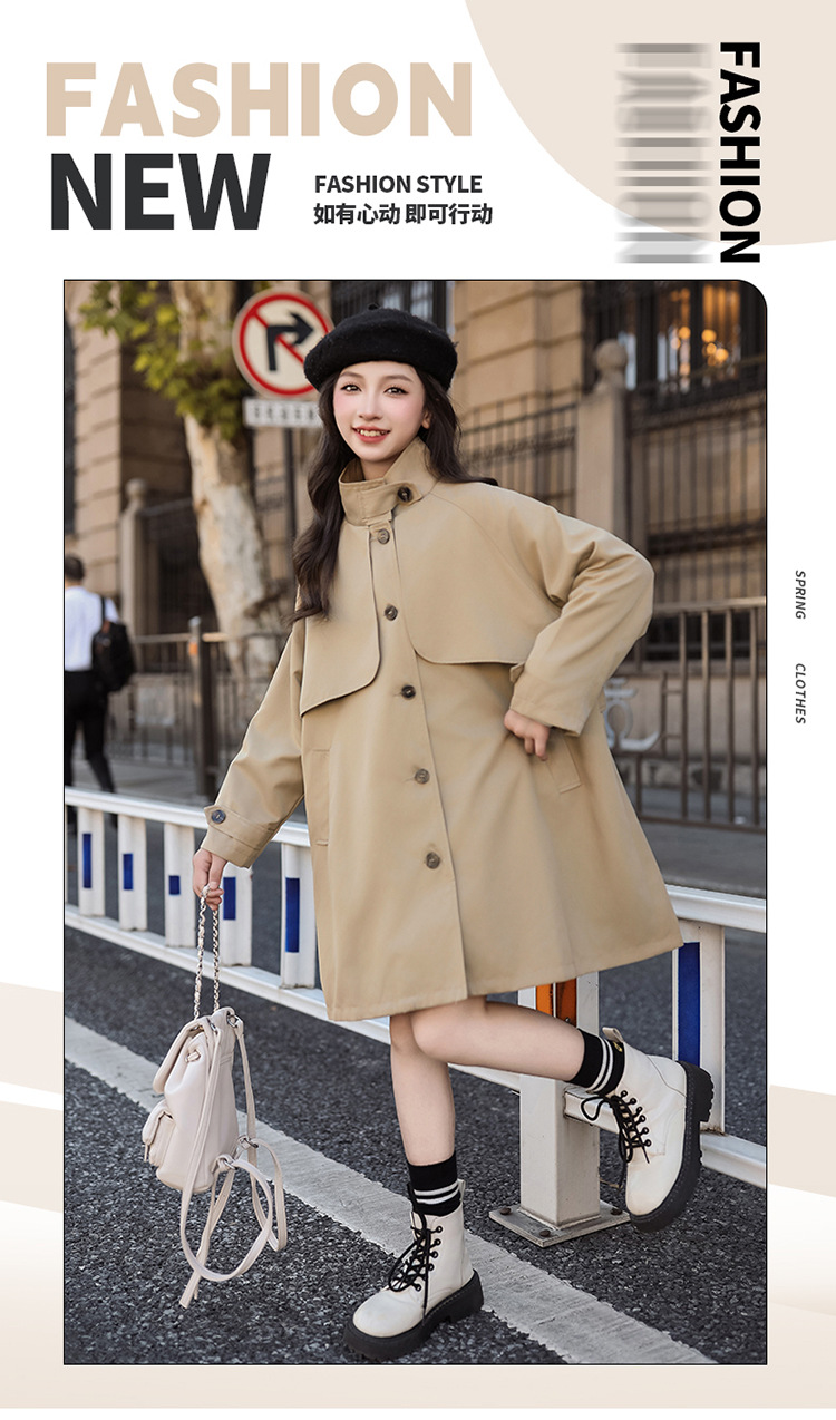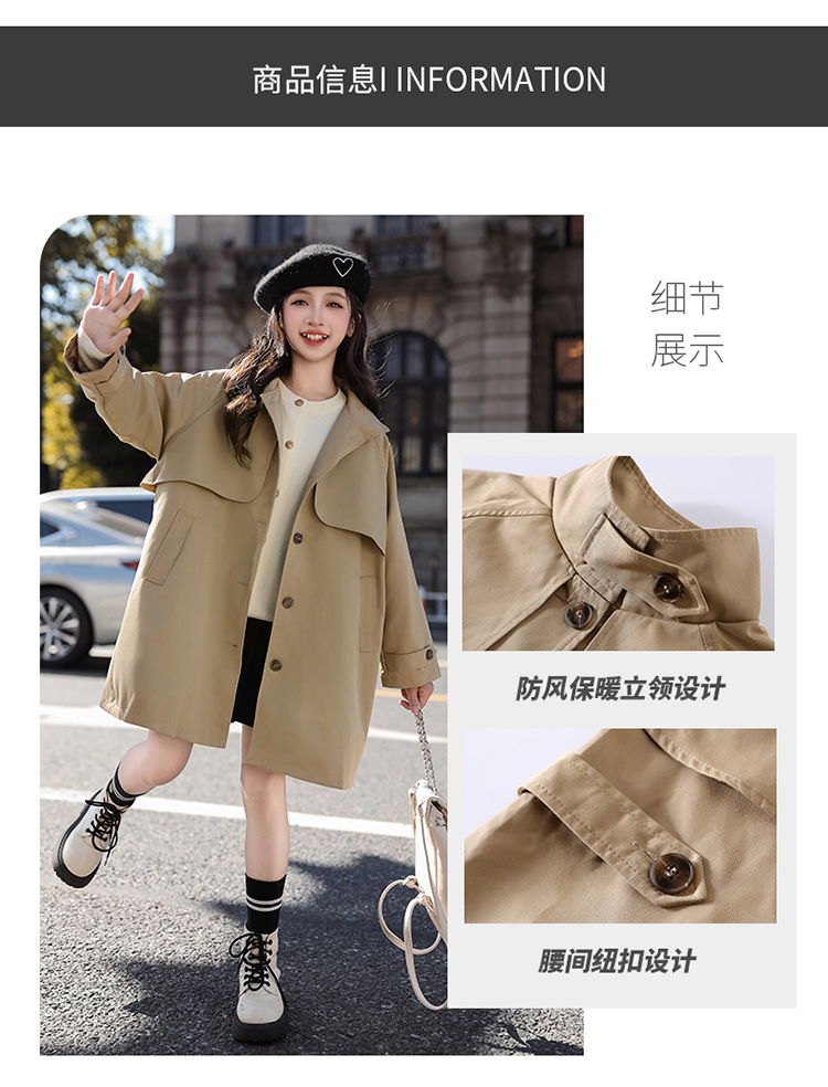2024 Тренч средней длины для девочек. Новая детская куртка Eight Seasons. Осенний наряд. Модное весенне-осеннее пальто в британском стиле.