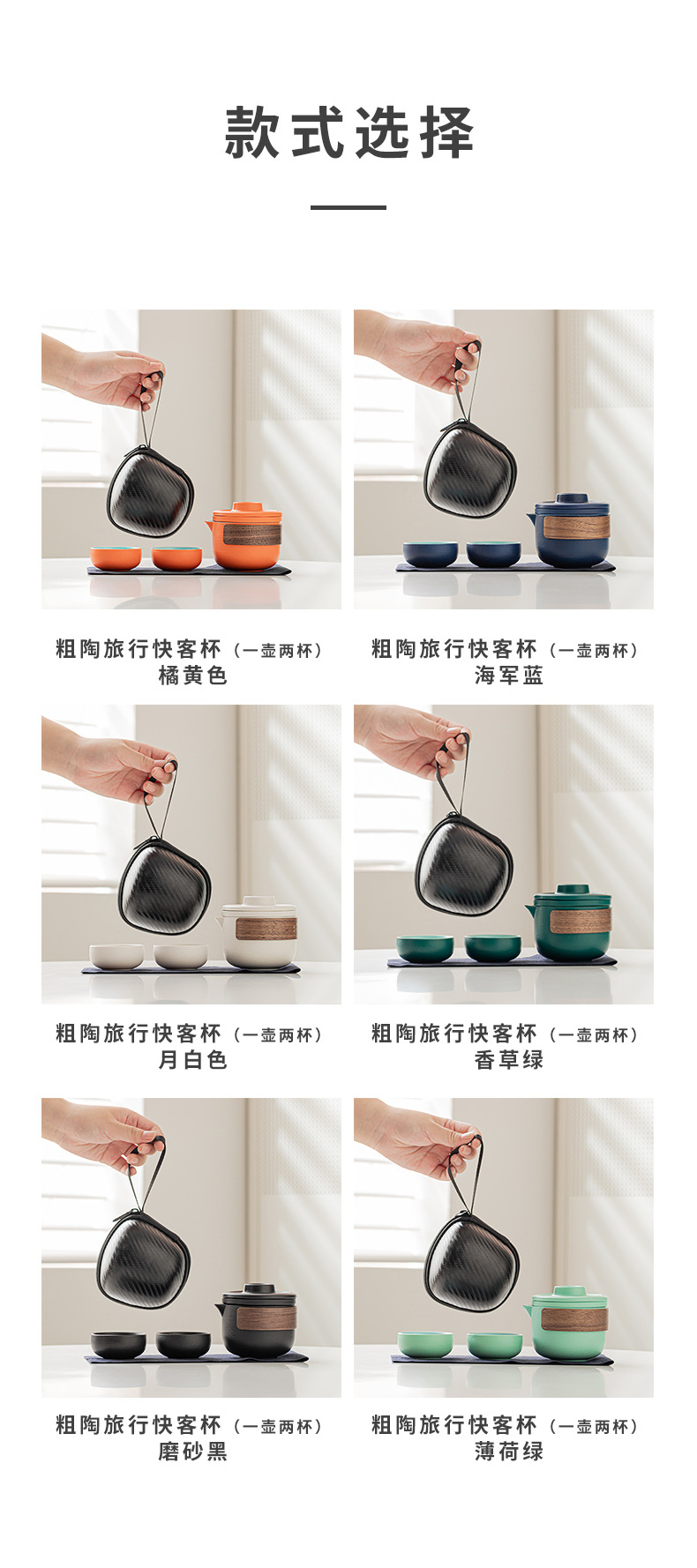 Грубый чайный набор для путешествий с двумя чашками-зеленый; Грубый чайный набор для путешествий с двумя чашками-синий; Грубый гончарный чайный сервиз с двумя чашками-оранжевый; Грубый чайный набор для путешествий с двумя чашками-черный; Грубый чайный сервиз для путешествий; Грубый гончарный чайный сервиз с двумя чашками-белый