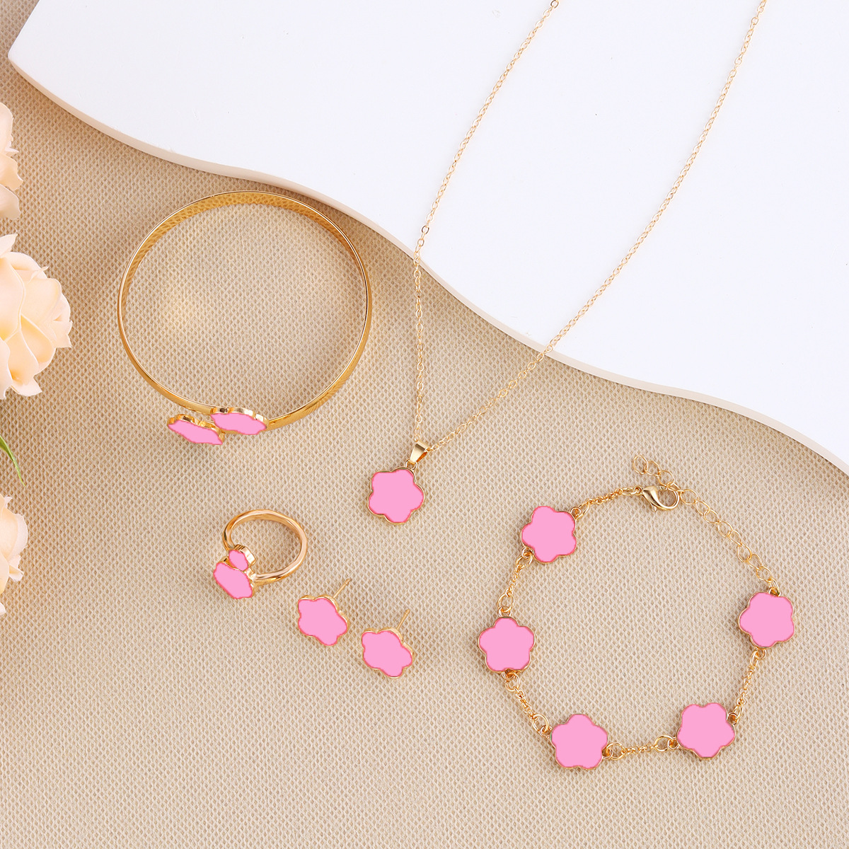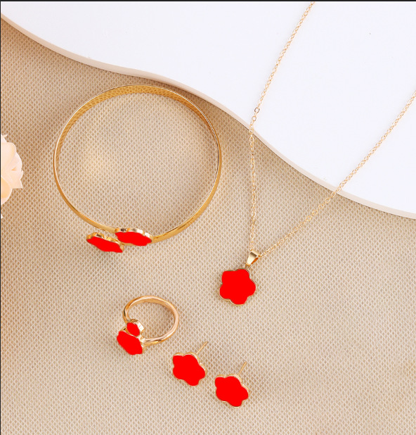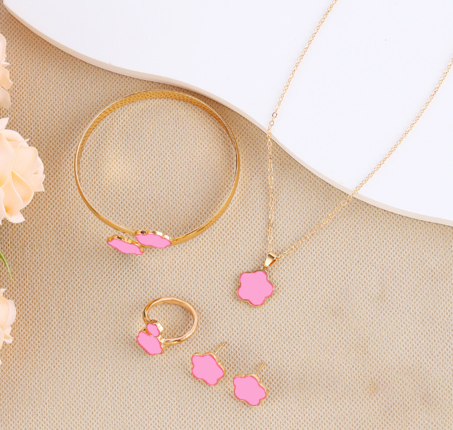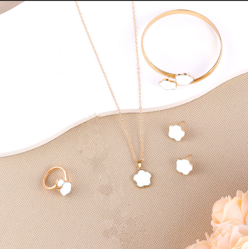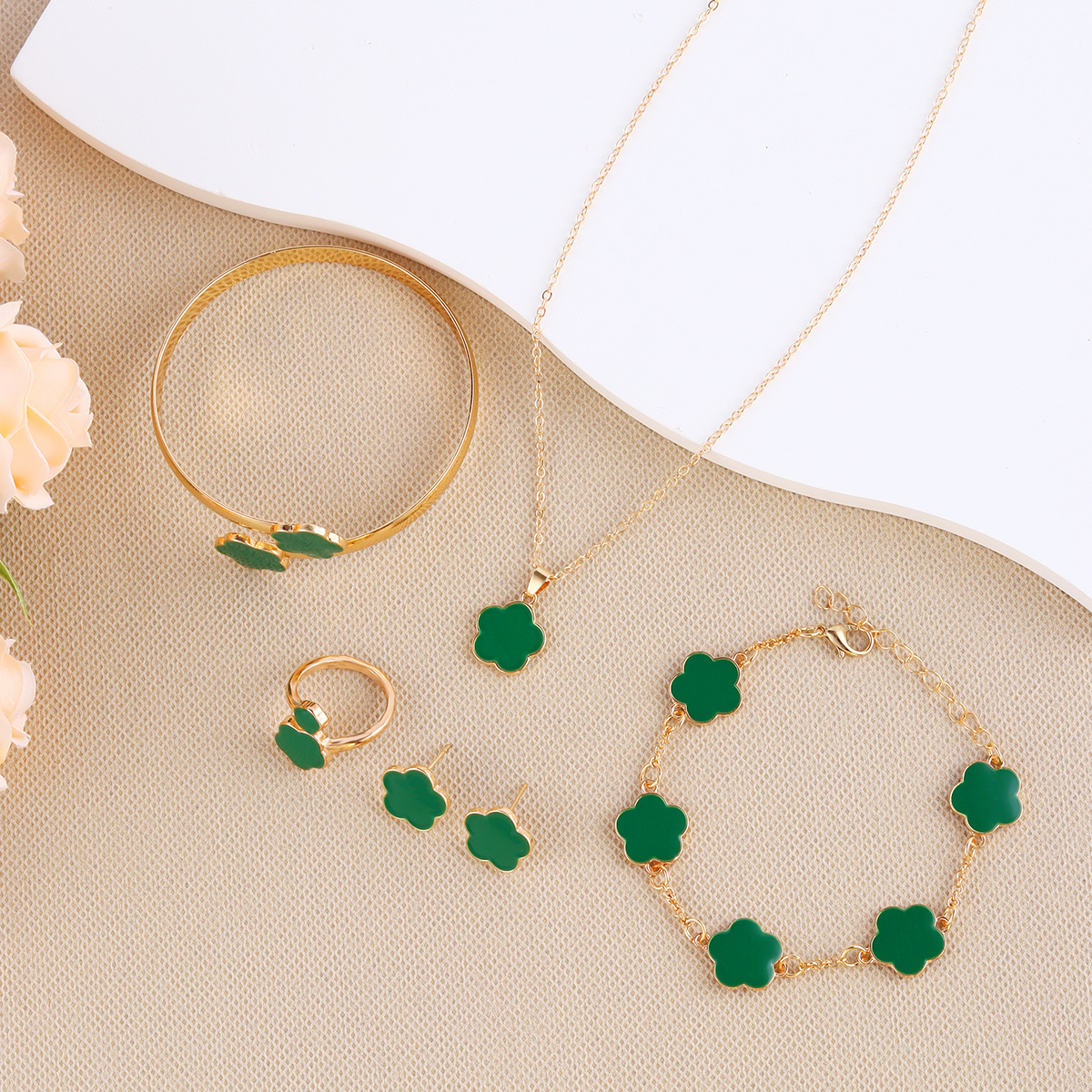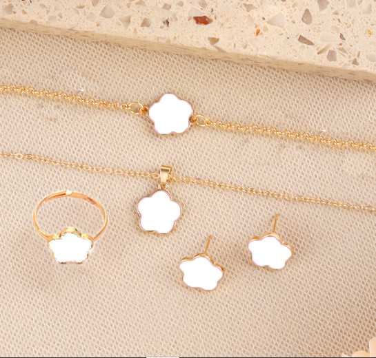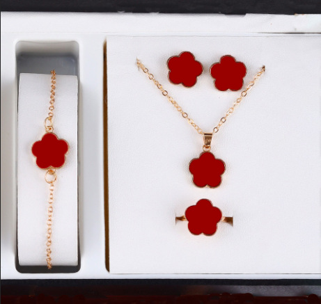Трансграничная корейская версия нового цветка с пятью листьями моды счастливый серьги-гвоздики ожерелье браслет кольцо набор с пятью лепестками цветок производитель