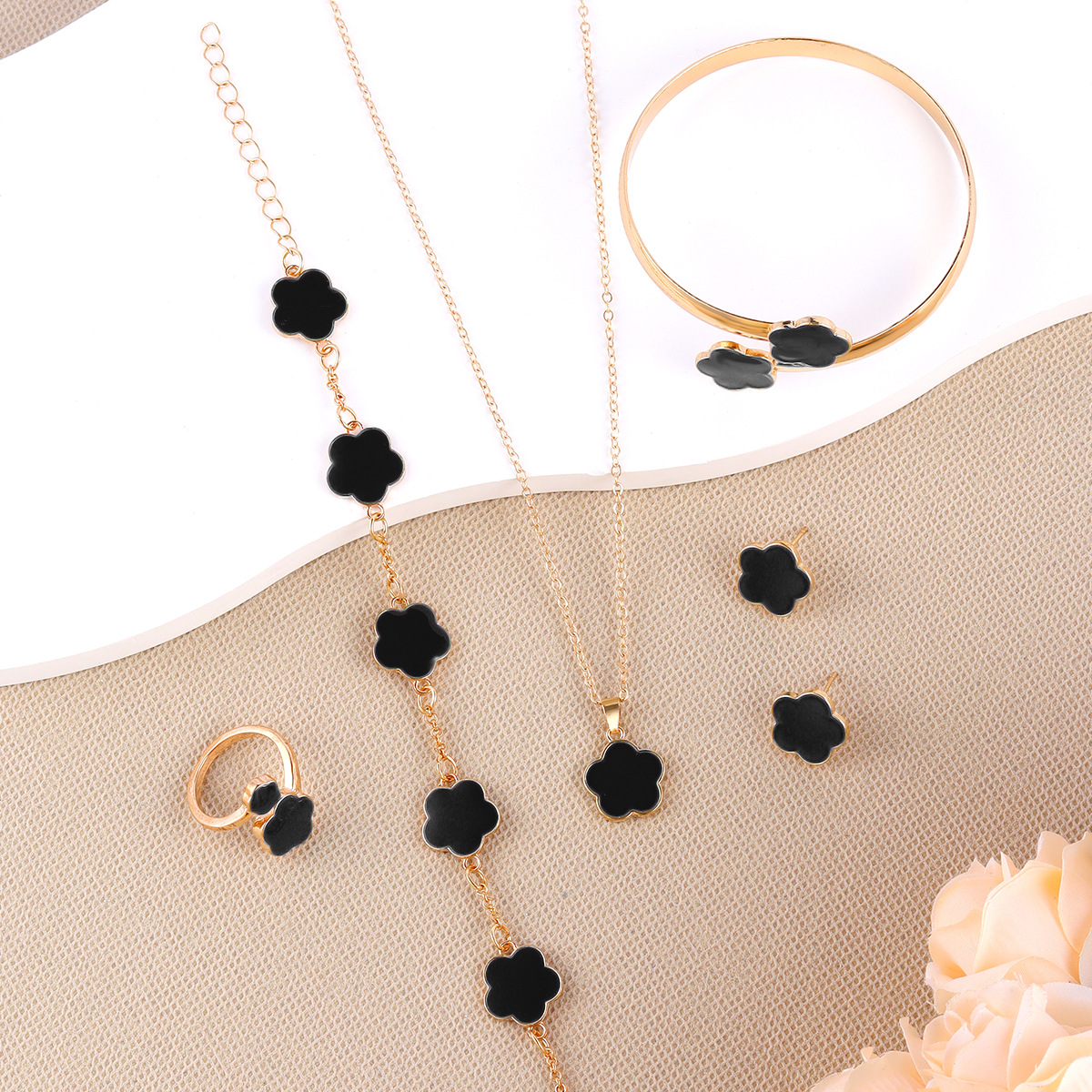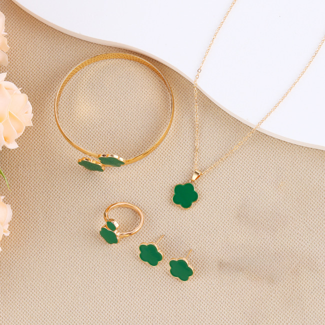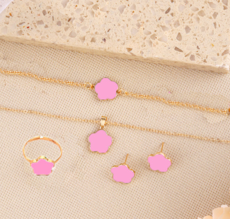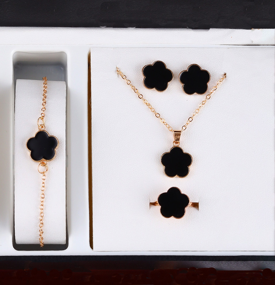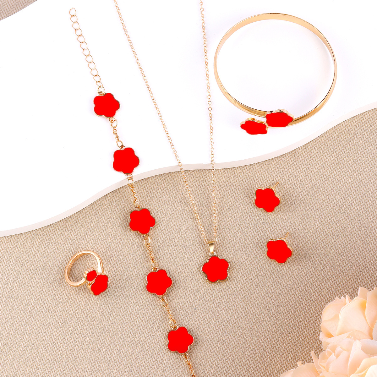Трансграничная корейская версия нового цветка с пятью листьями моды счастливый серьги-гвоздики ожерелье браслет кольцо набор с пятью лепестками цветок производитель