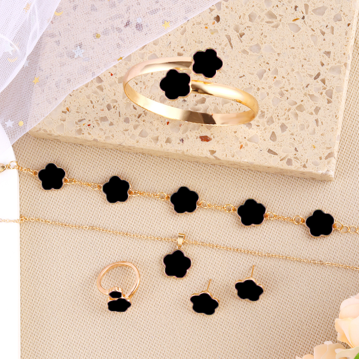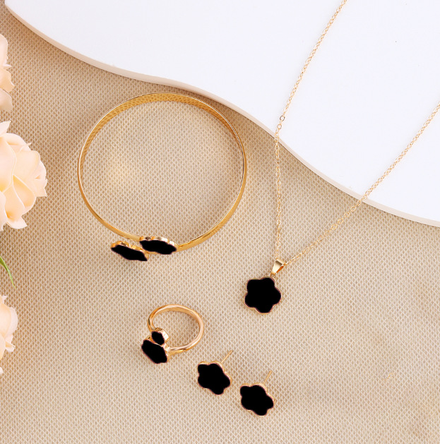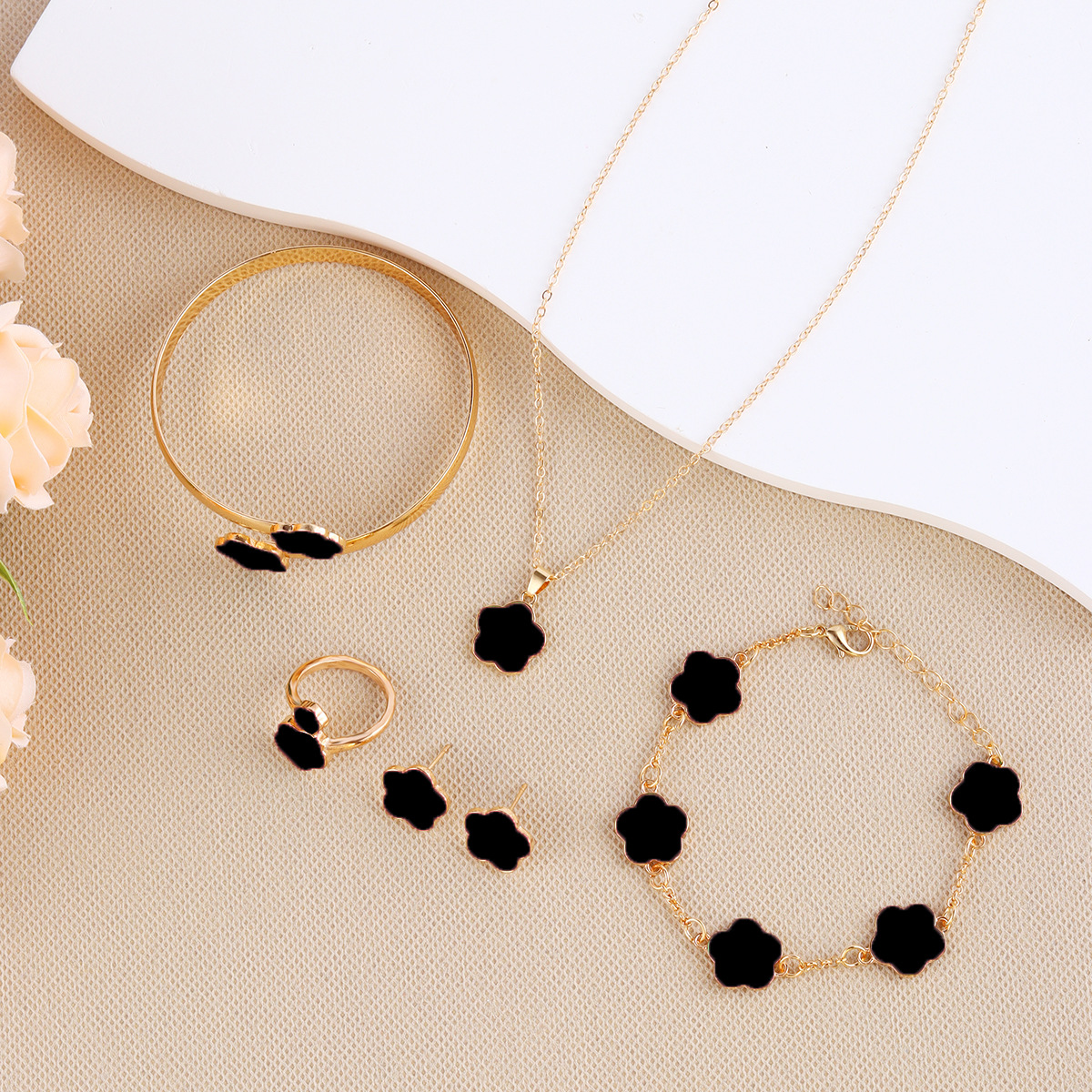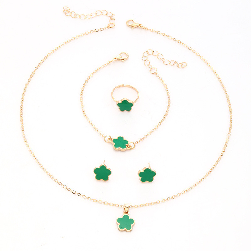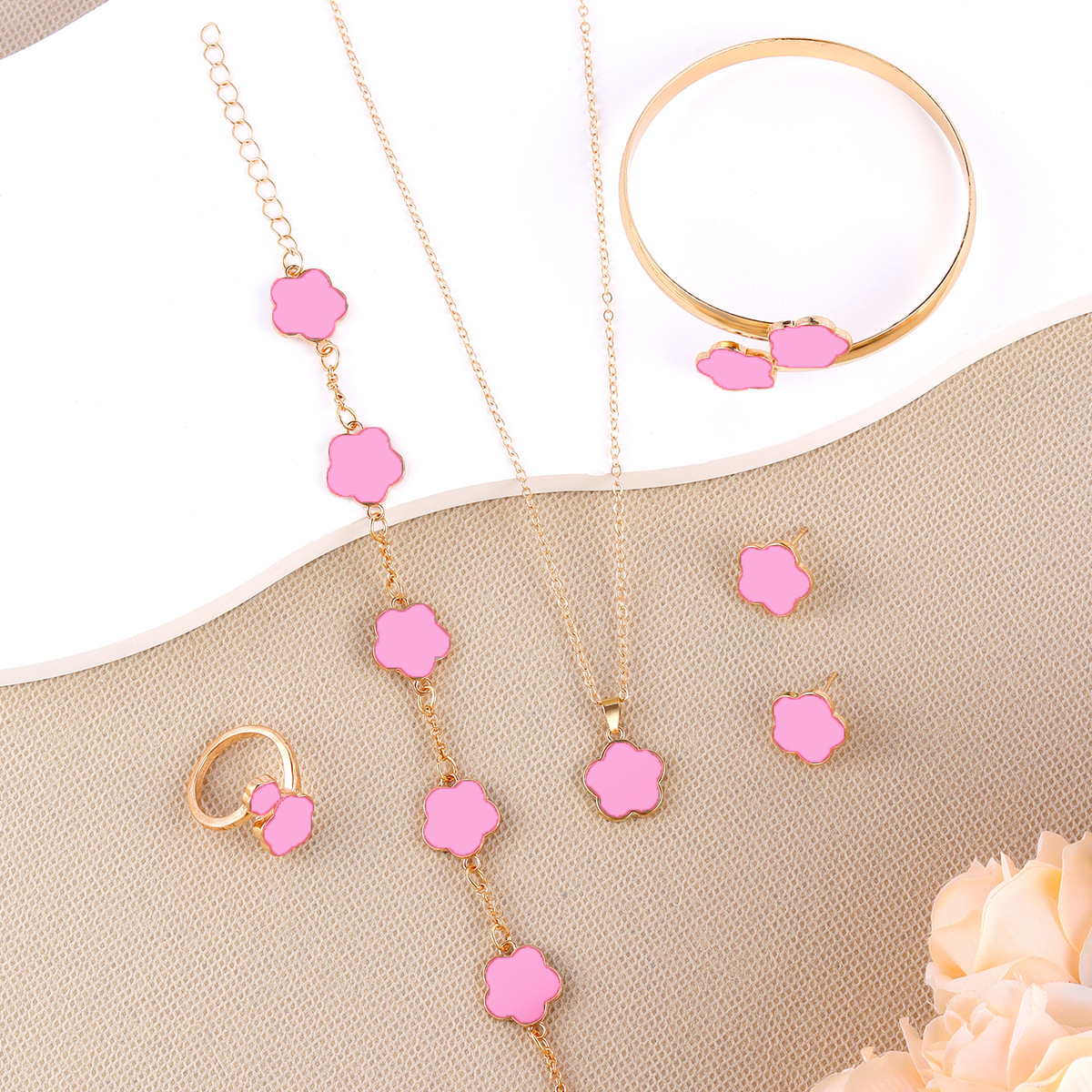 Трансграничная корейская версия нового цветка с пятью листьями моды счастливый серьги-гвоздики ожерелье браслет кольцо набор с пятью лепестками цветок производитель