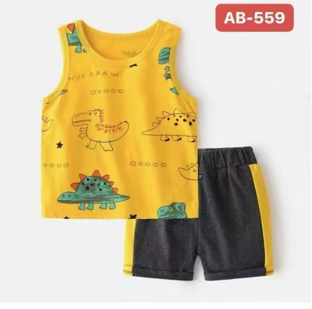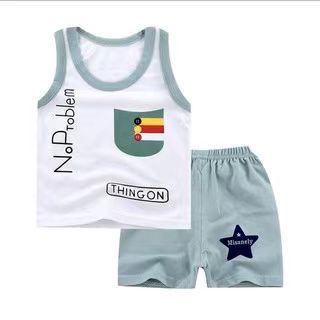 Летний хлопковый комплект без рукавов в корейском стиле для мальчиков и девочек, малышей и младенцев, коллекция 2025 года