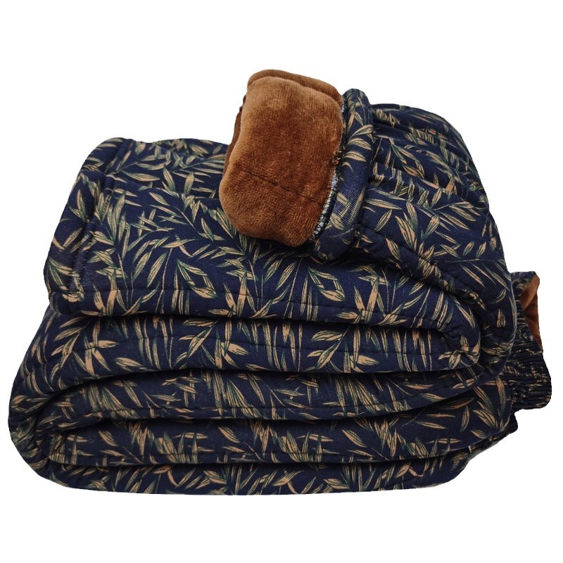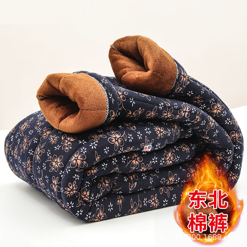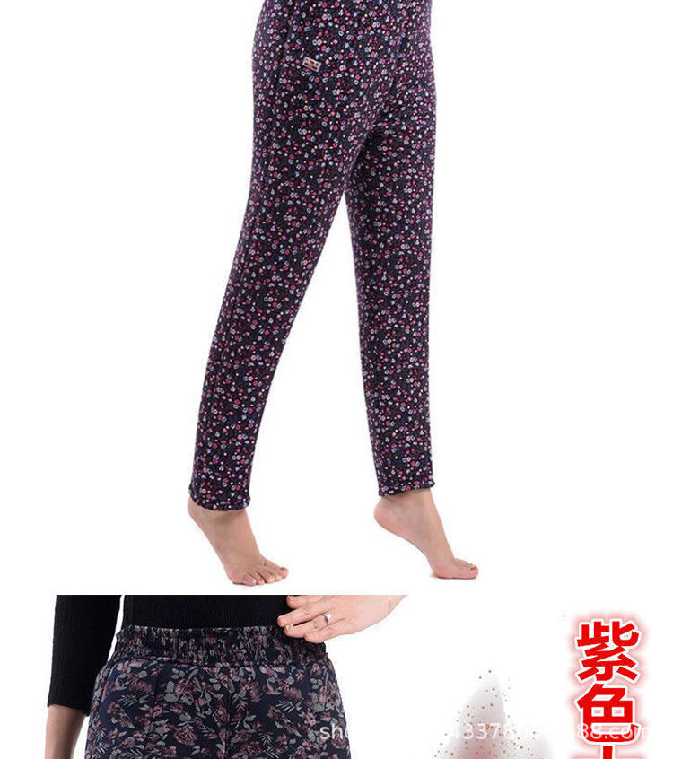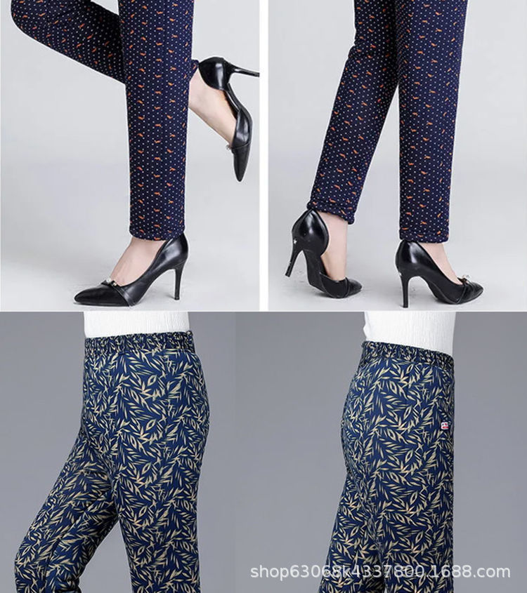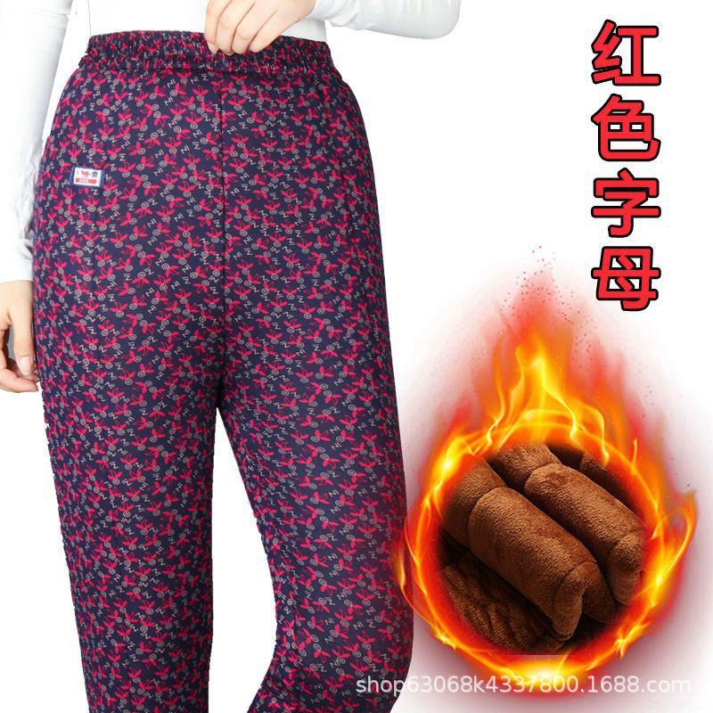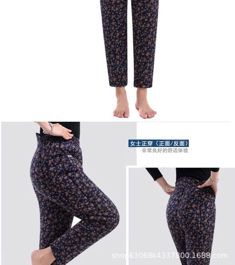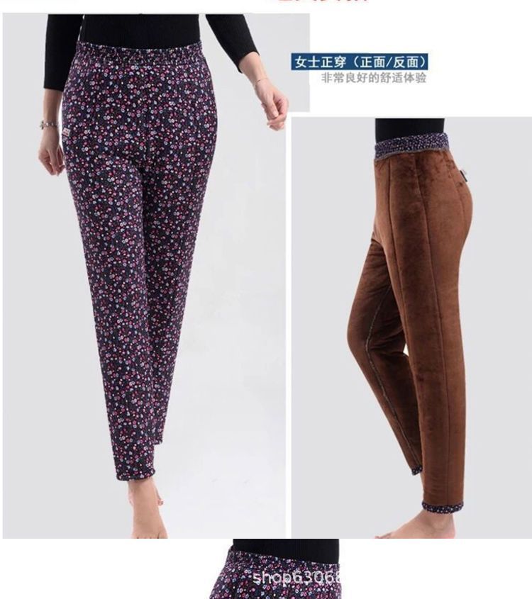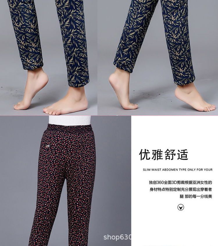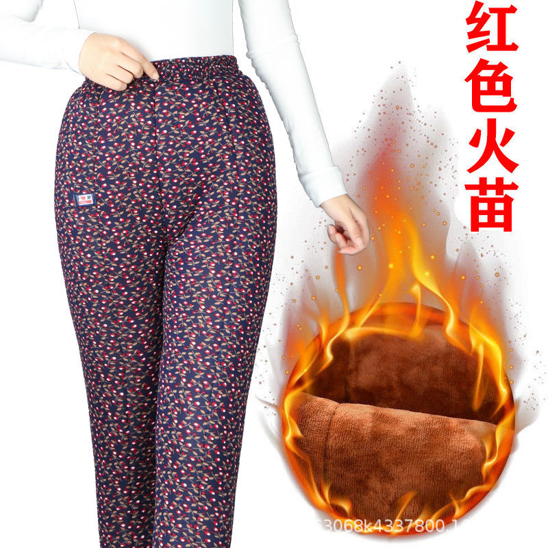 Брюки женские из верблюжьей шерсти и хлопка с цветочным принтом, трехслойные, с высокой талией, свободного кроя, больших размеров, подходят для женщин среднего и старшего возраста, устойчивые к холоду, ветрозащитные, с цветочным узором, в художественном стиле.