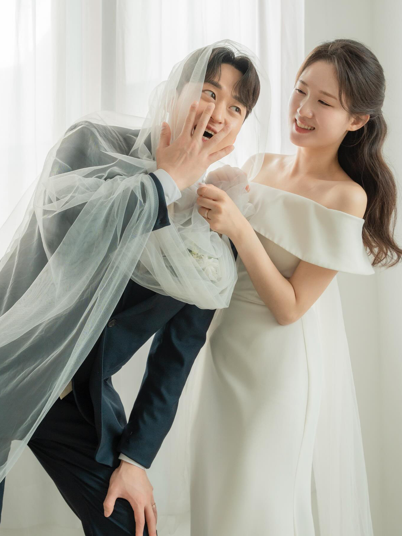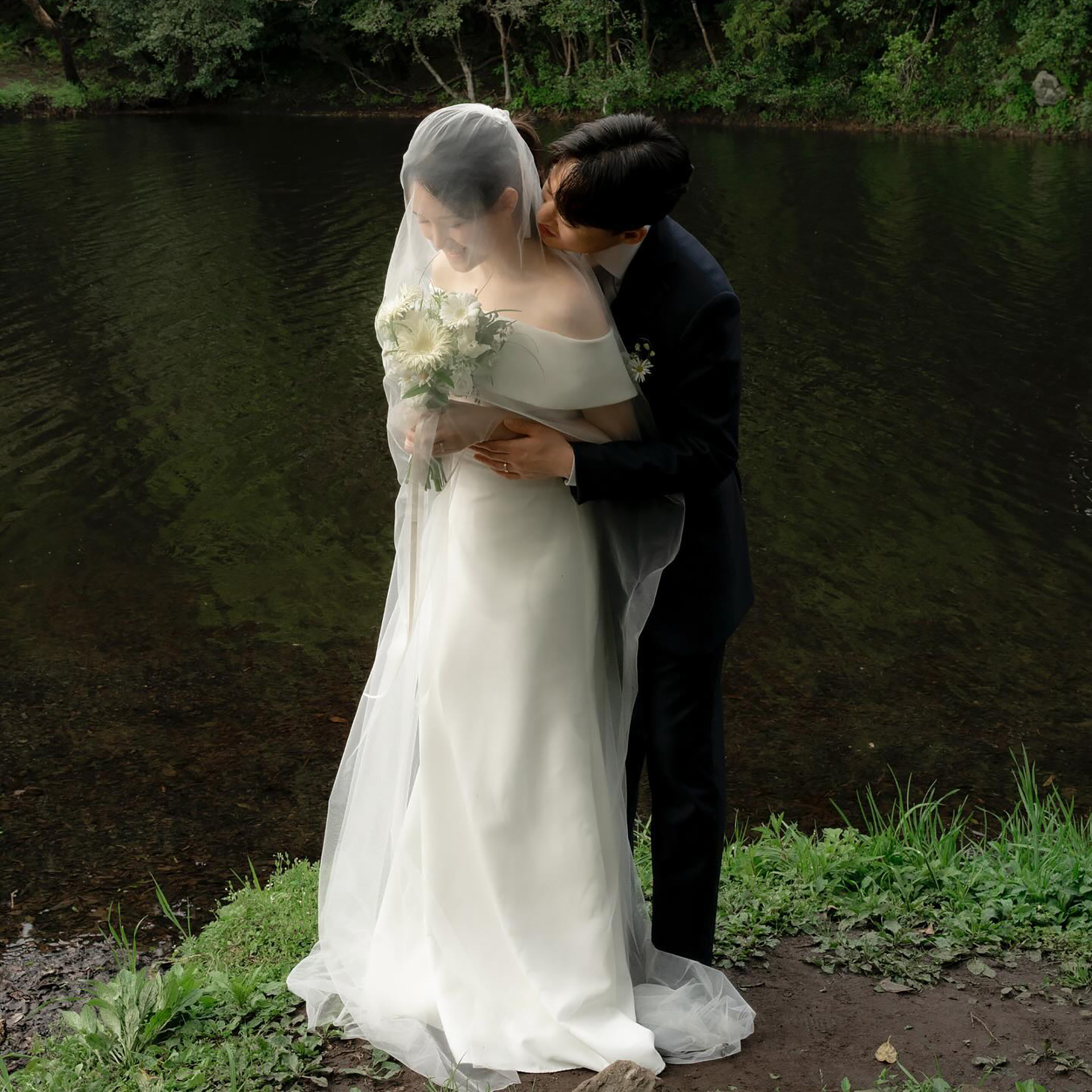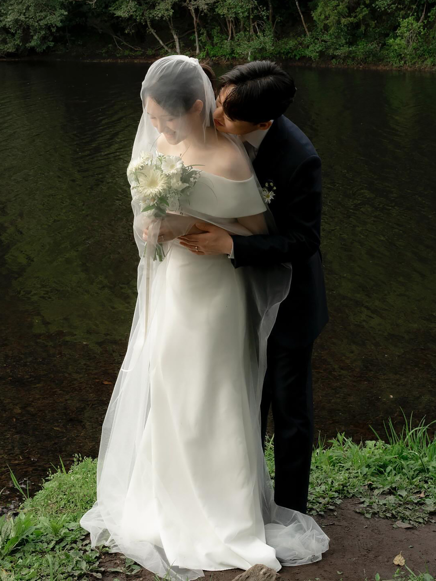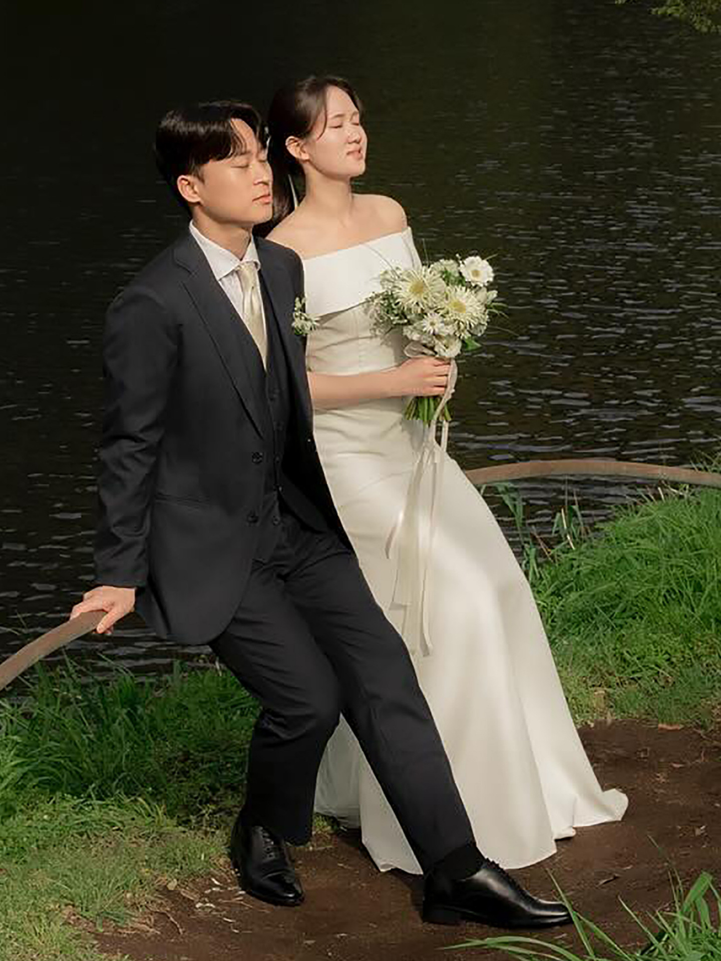 Корейское легкое свадебное платье простой рыбий хвост с рукавами на плечах и лотосах