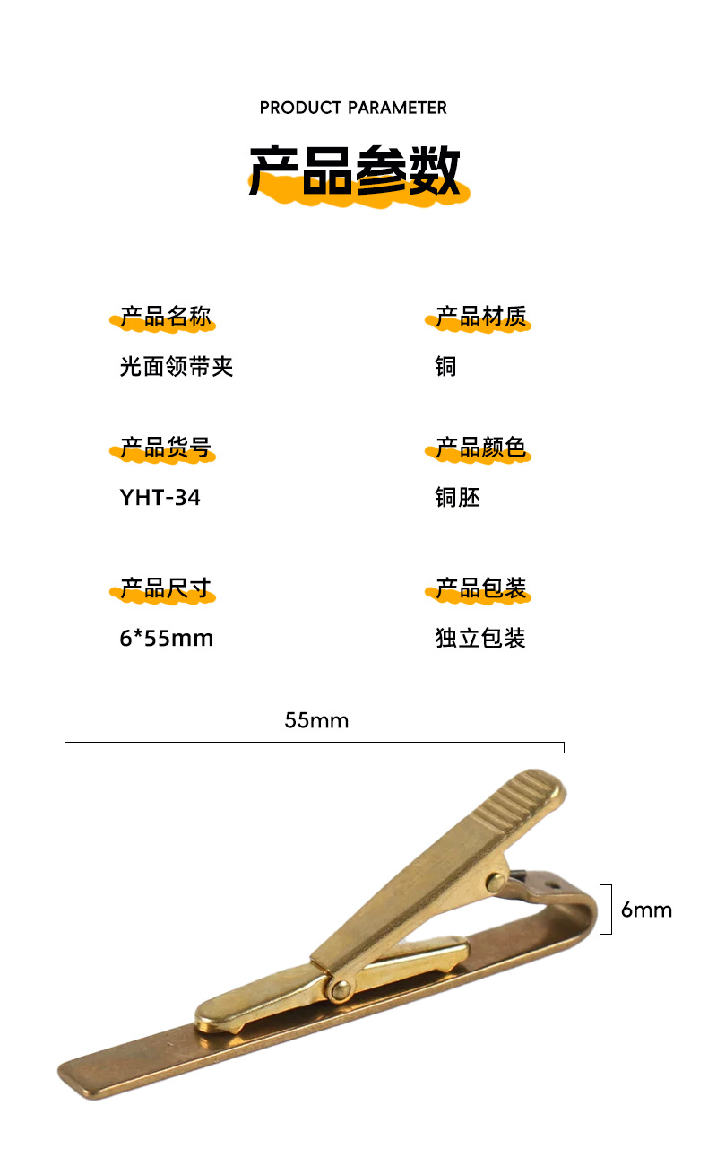 Продажа мужской металлический медный зажим для галстука YHT-34 зажим для галстука простой модный бизнес