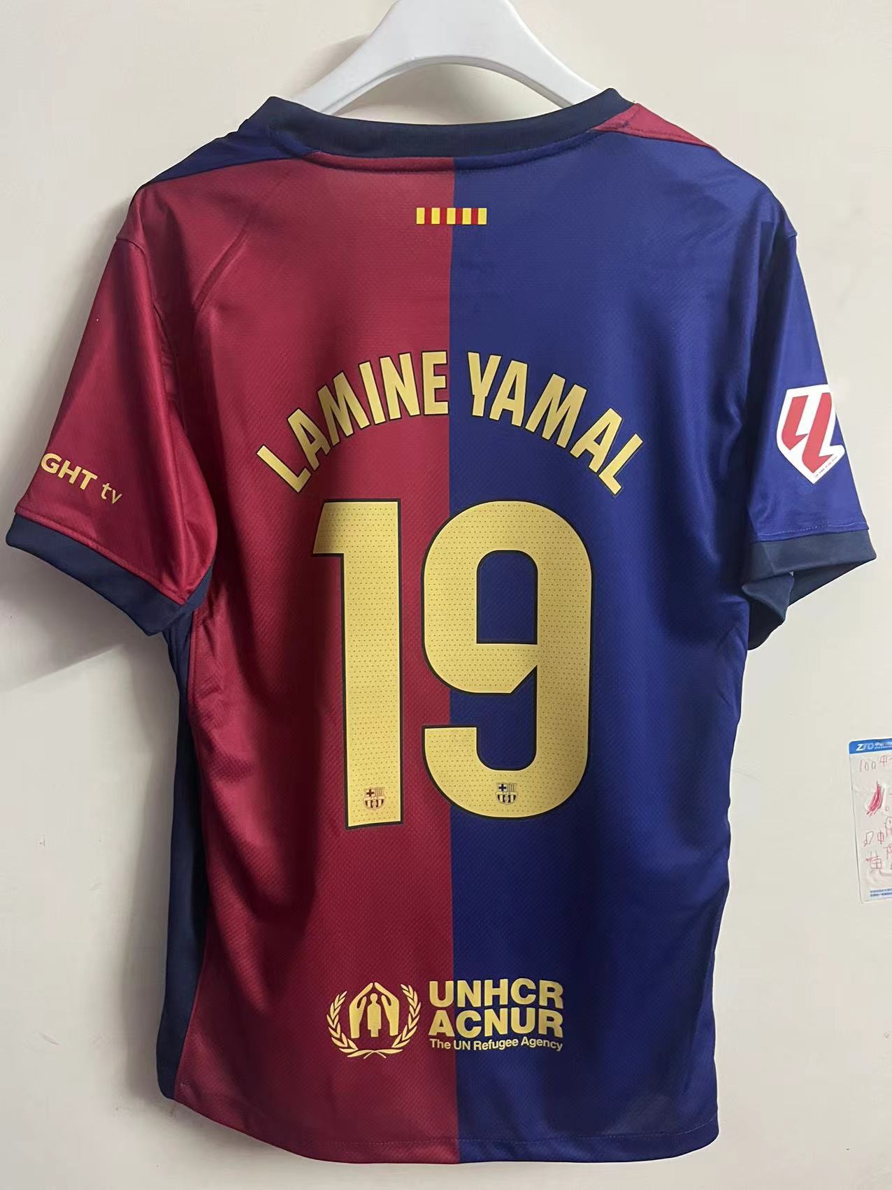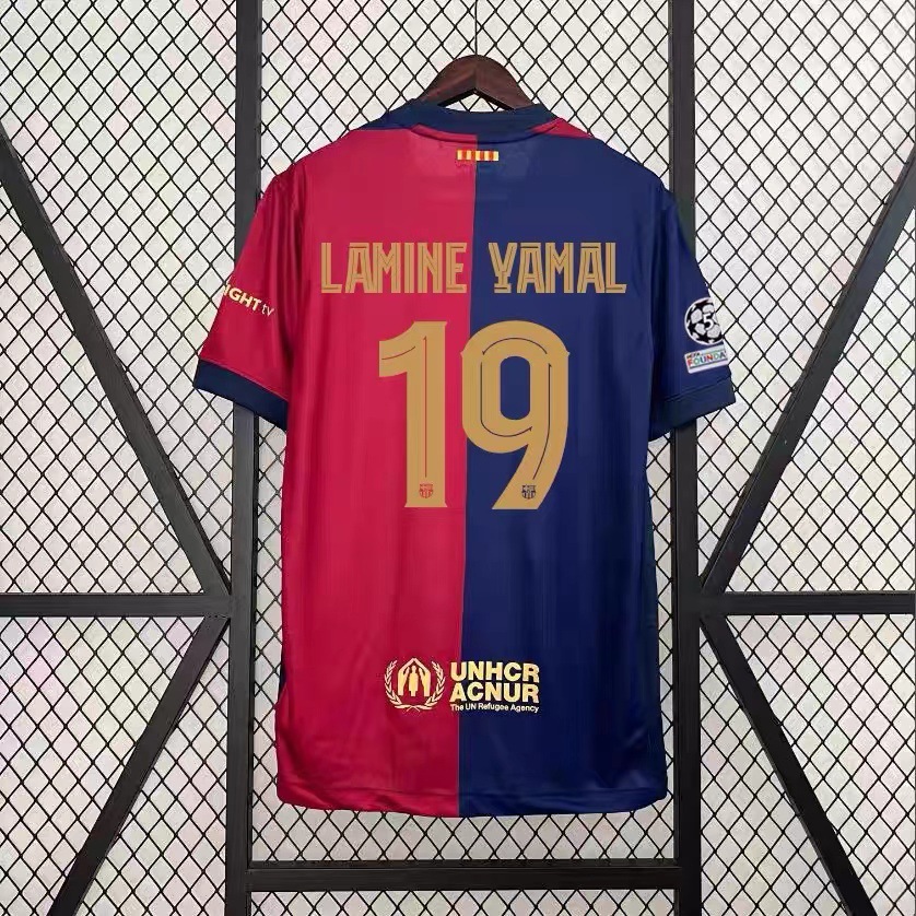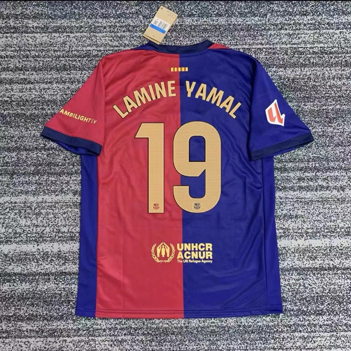 Сезон 24-25 Барселона футболка дома и в гостях № 19 Ямал Гавилеван футбольный костюм с короткими рукавами для взрослых