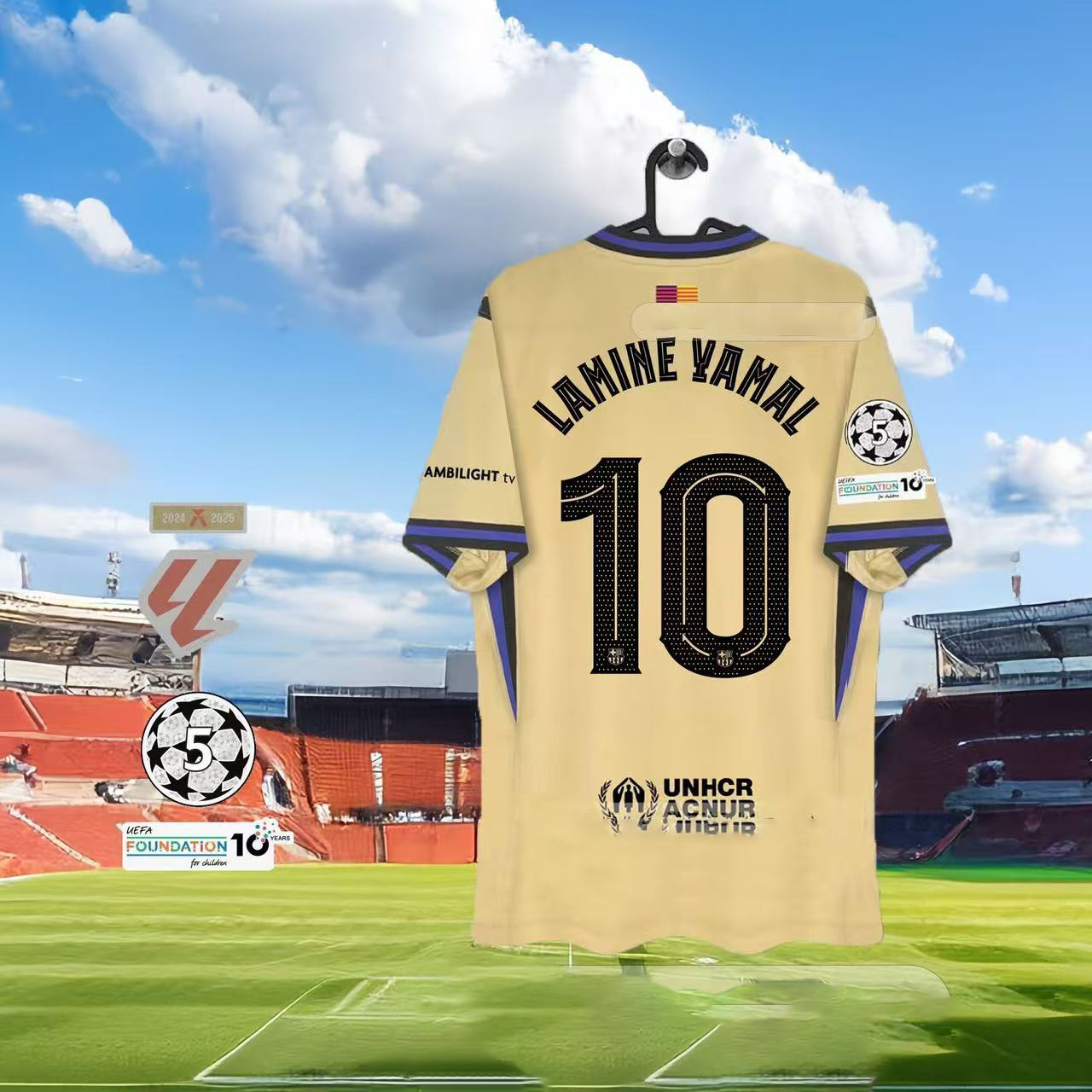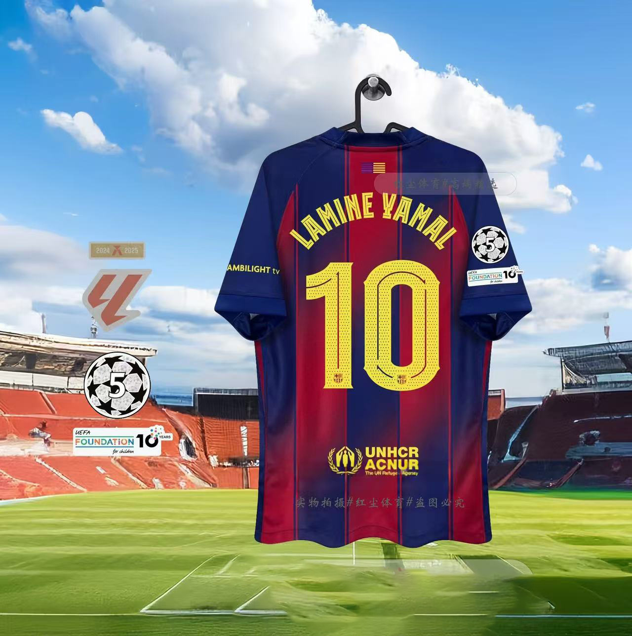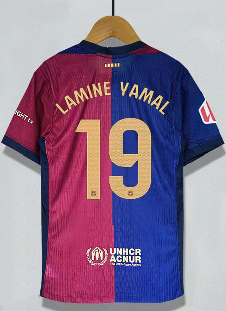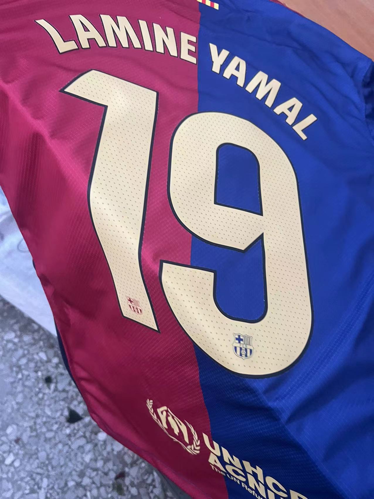 Сезон 24-25 Барселона футболка дома и в гостях № 19 Ямал Гавилеван футбольный костюм с короткими рукавами для взрослых