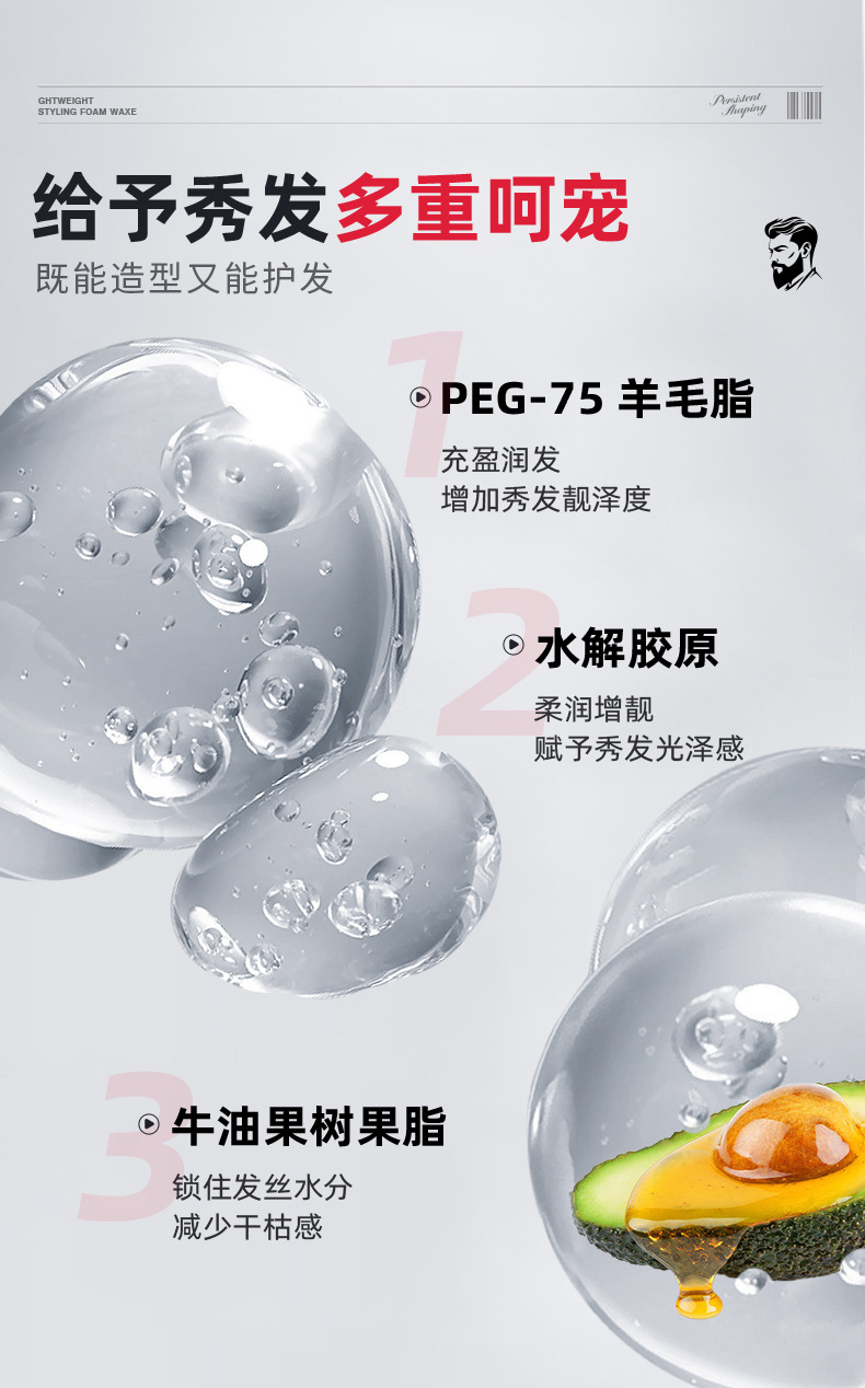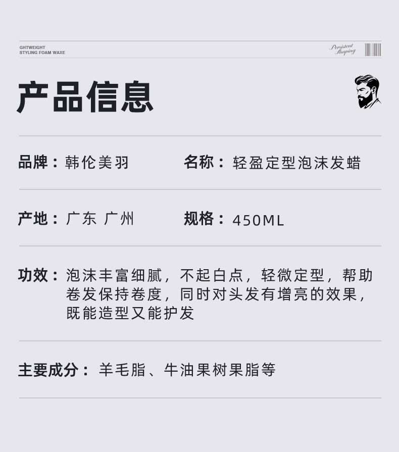 SY10020 Han Lun Meiyu-легкий воск для волос в пене для укладки (серебристый и черный стиль)